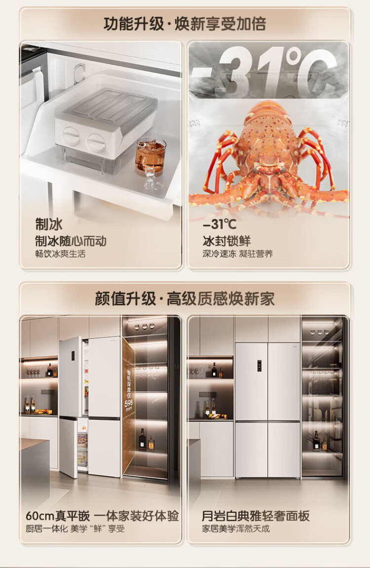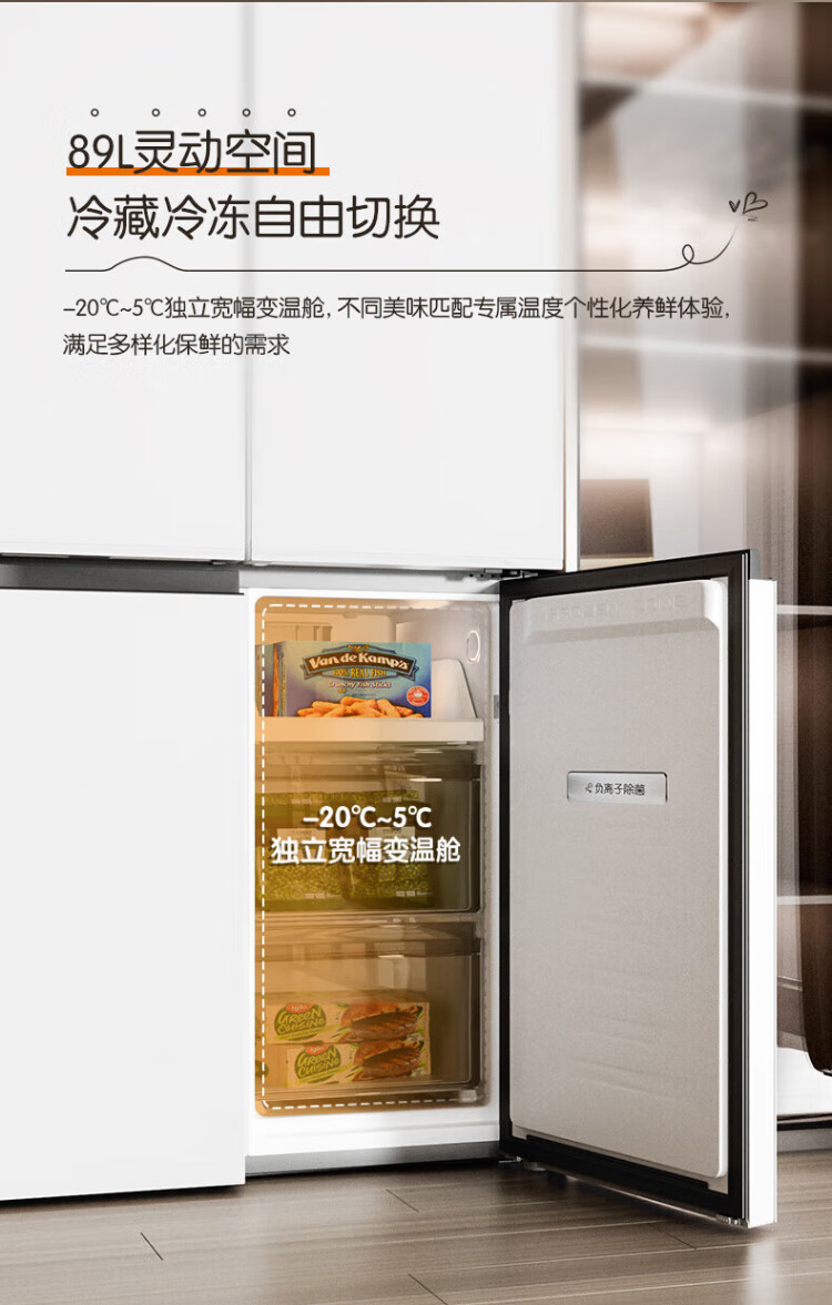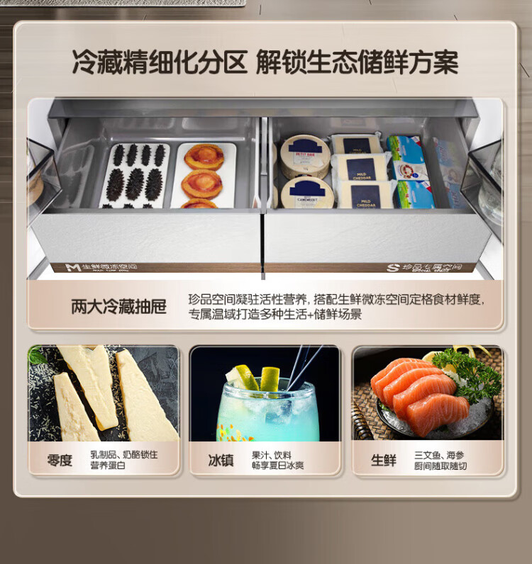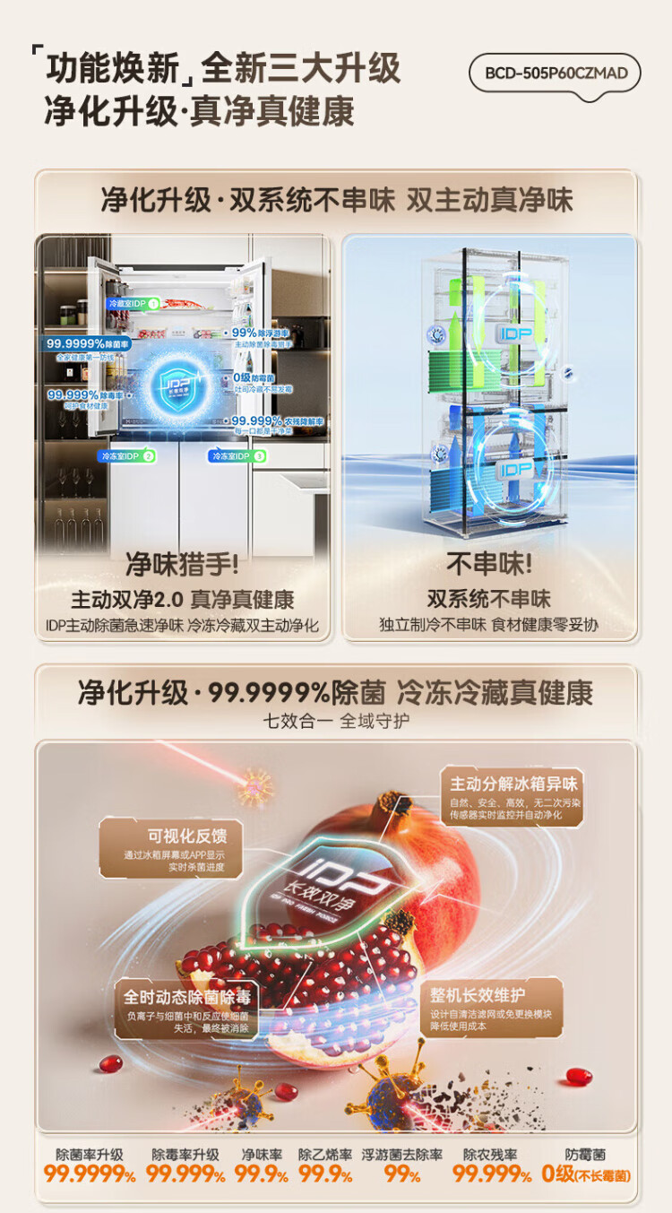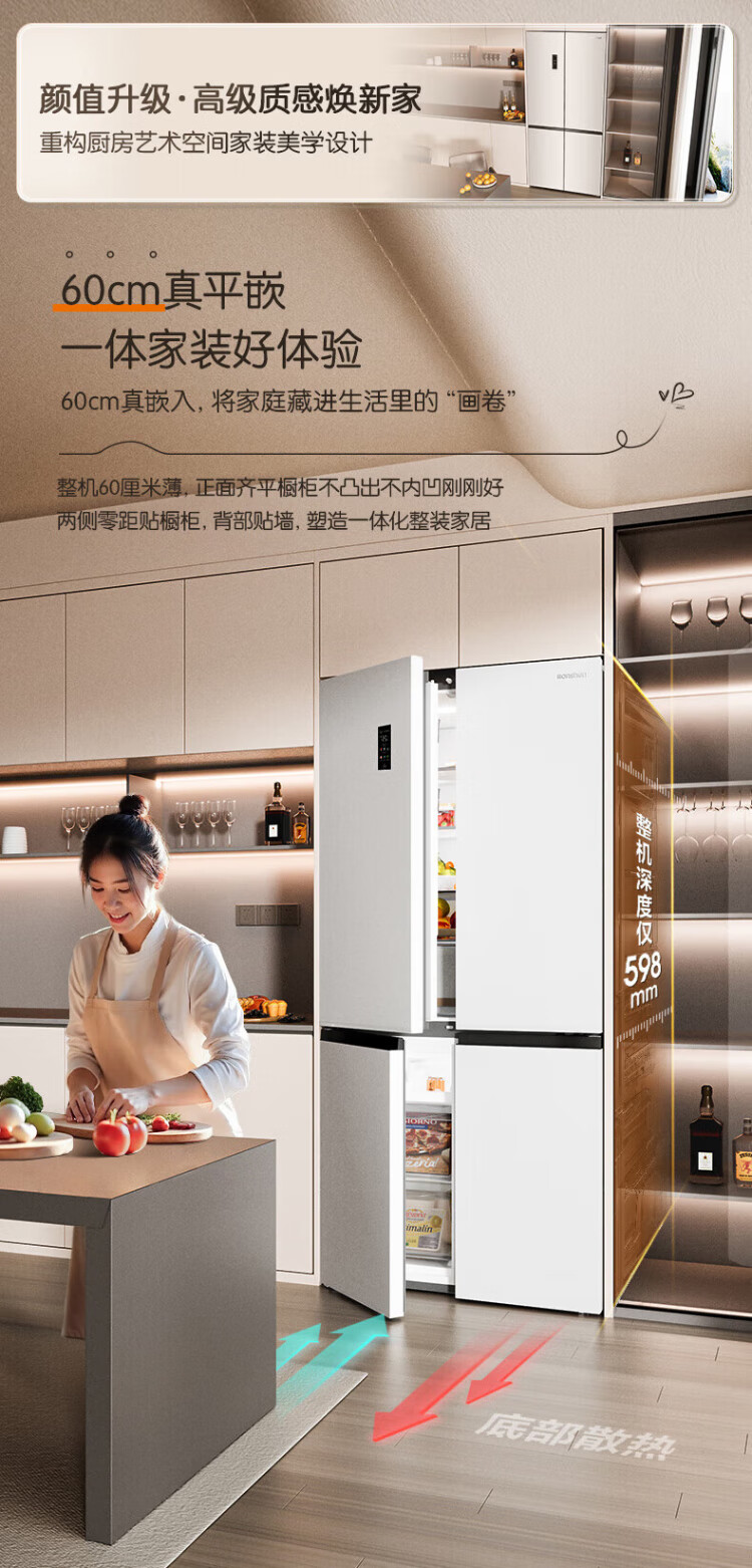 Rongsheng Cube Sugar 505L cross-door refrigerator dual-system cycle active sterilization ultra-thin embedded first-class energy efficiency frost-free large capacity white BCD-505P60CZMAD national subsidy 505 cross-door dual system zero embedded