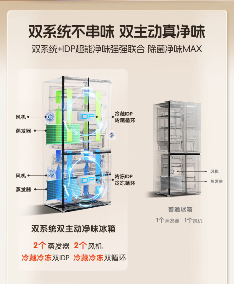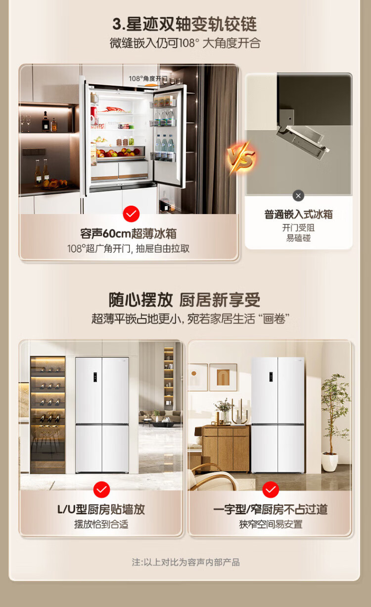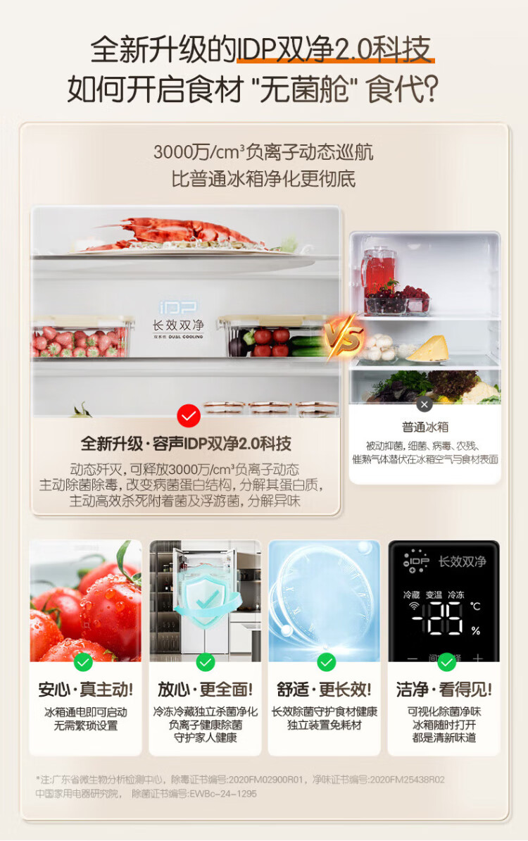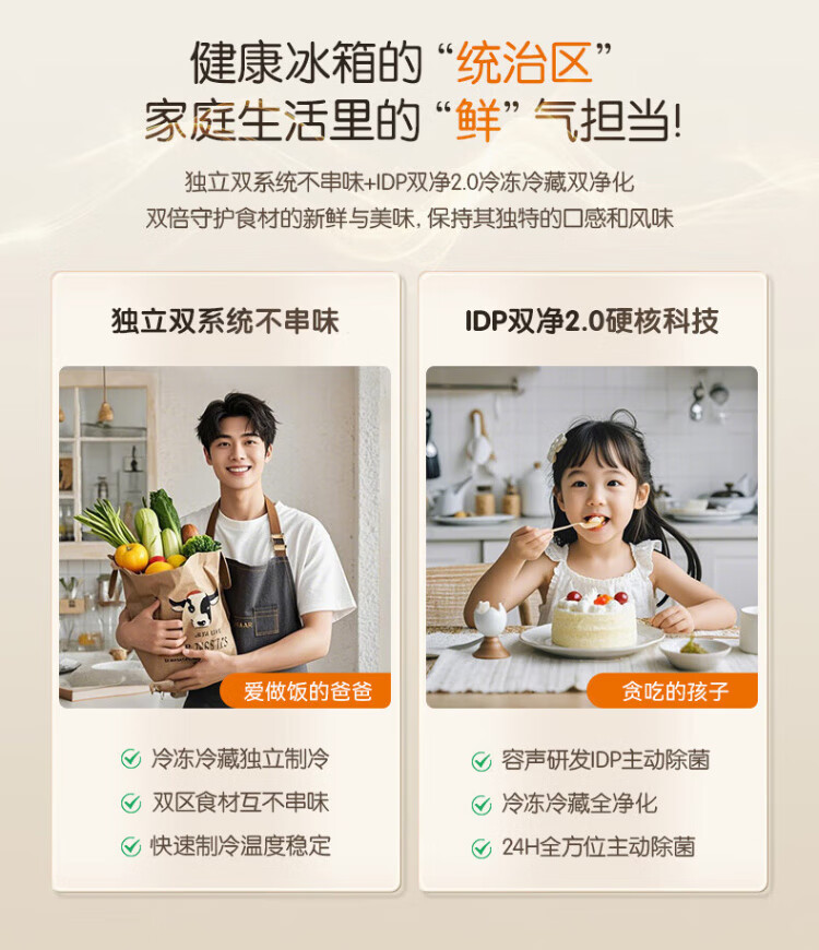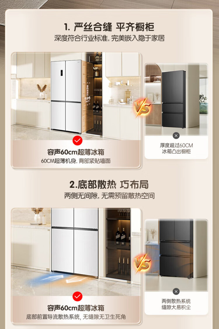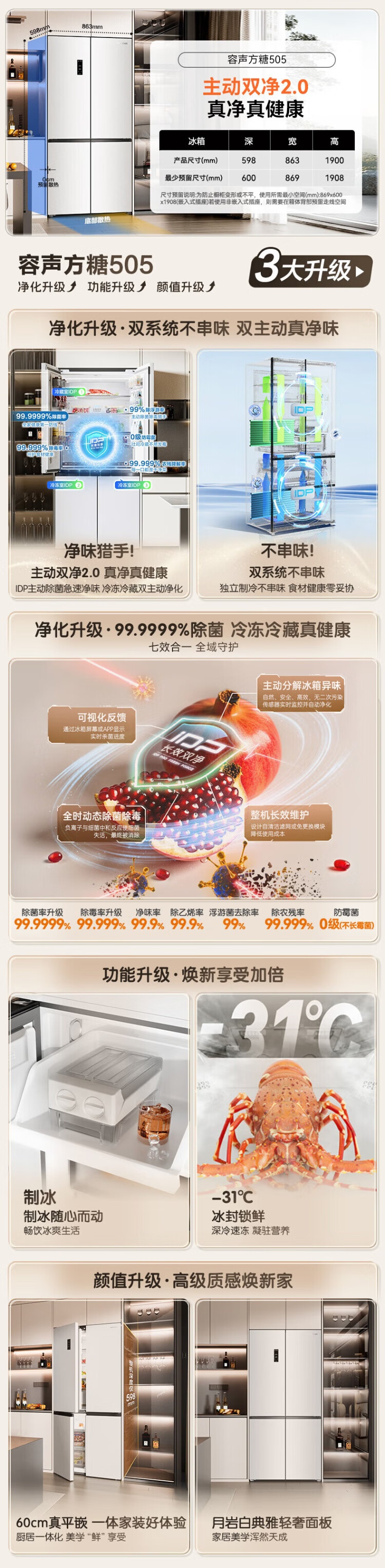 Rongsheng Cube Sugar 505L cross-door refrigerator dual-system cycle active sterilization ultra-thin embedded first-class energy efficiency frost-free large capacity white BCD-505P60CZMAD national subsidy 505 cross-door dual system zero embedded