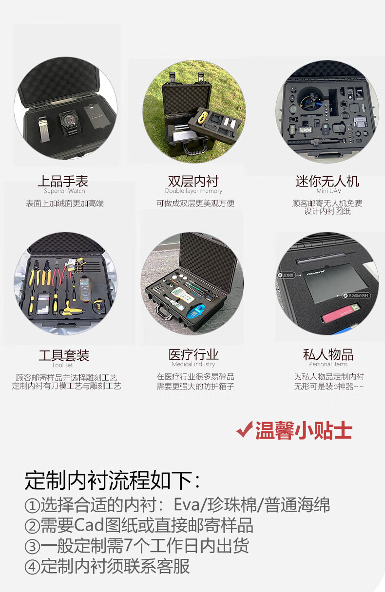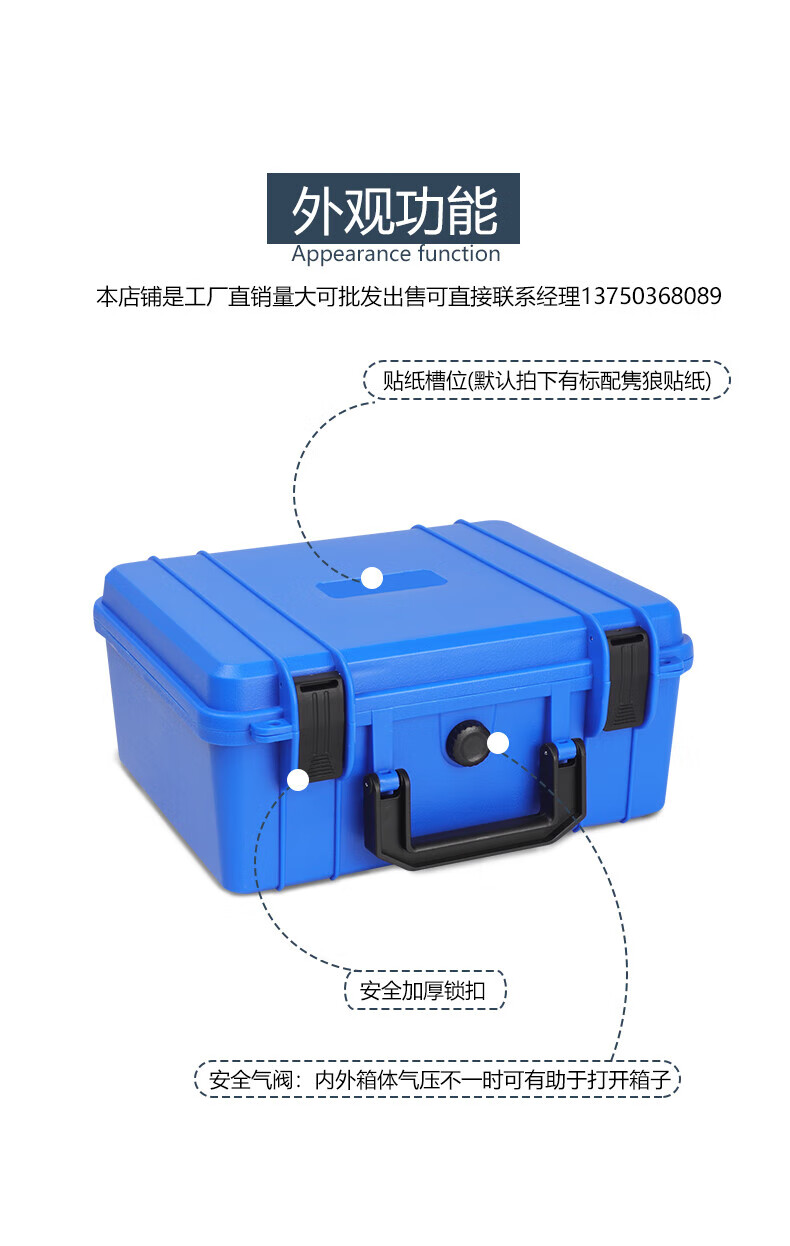 Plastic medium-sized small portable safety box instrument box equipment box packaging protection equipment box moisture-proof box 2620 black empty box (excluding cotton)