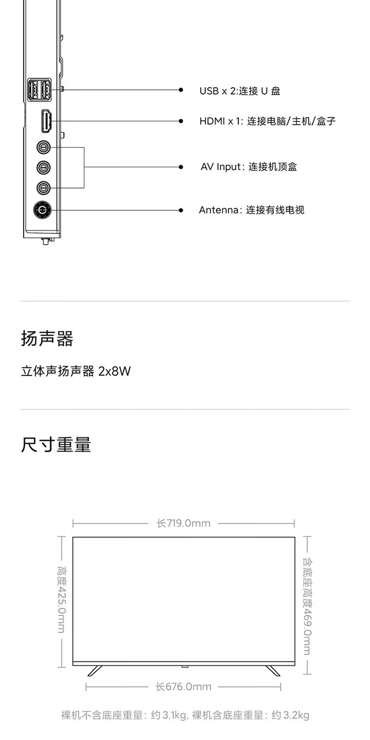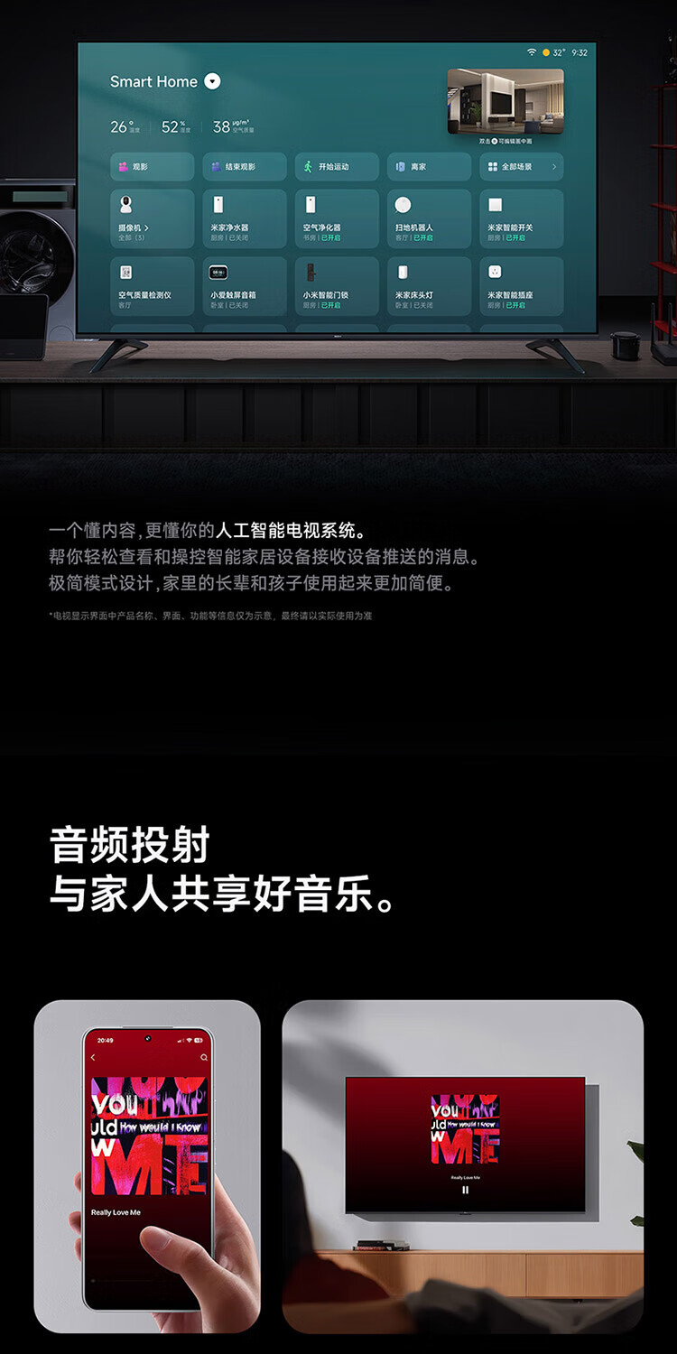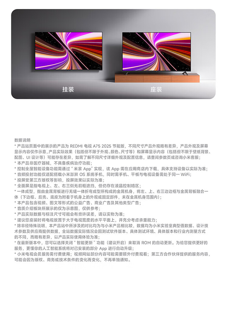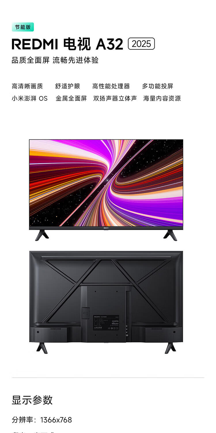 Xiaomi TV 32-inch REDMI A32 2025 energy-saving version, metal full screen, dual-speaker stereo, first-class energy efficiency L32RA-RAE 32-inch TV + floor-standing mobile stand + installation