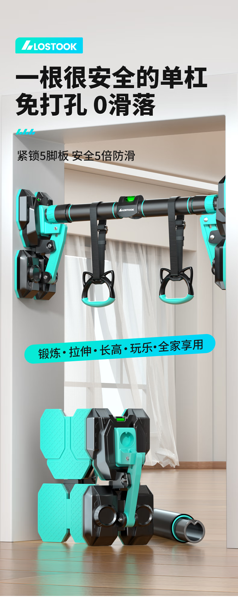 Door-mounted horizontal bar for children indoor wall without punching pull-up device for adults single pole home fitness equipment orange gray long 112-170CM installation distance horizontal bar free hanging ring + hammock