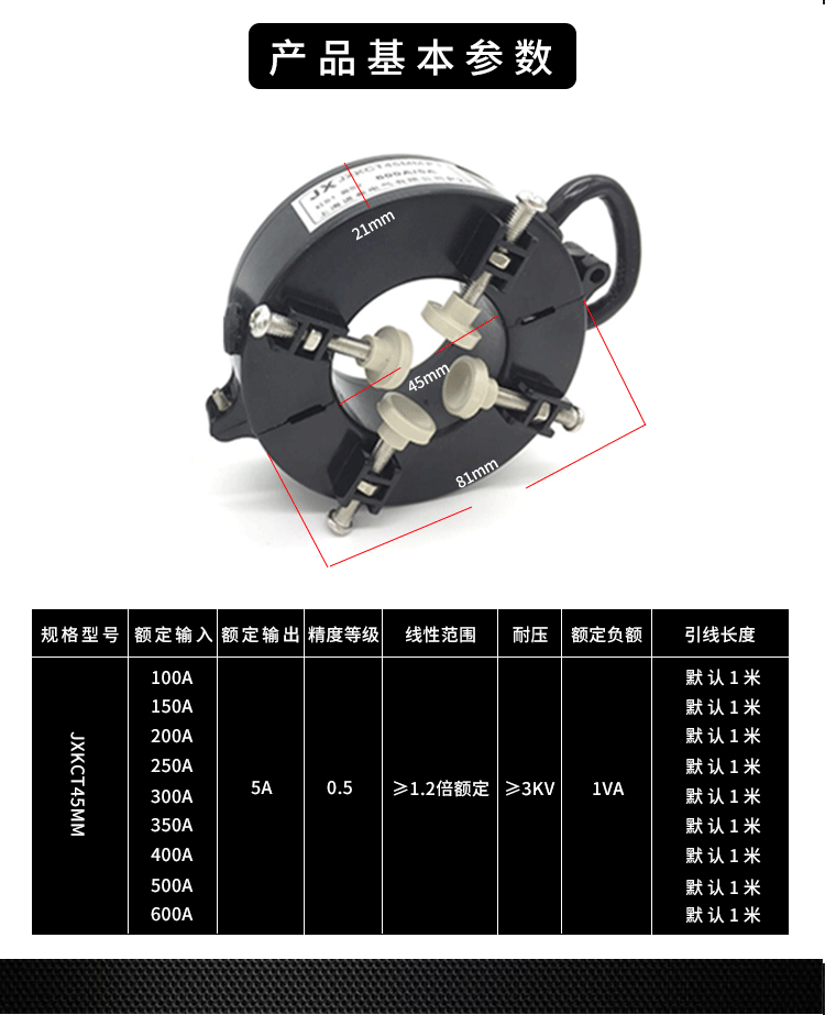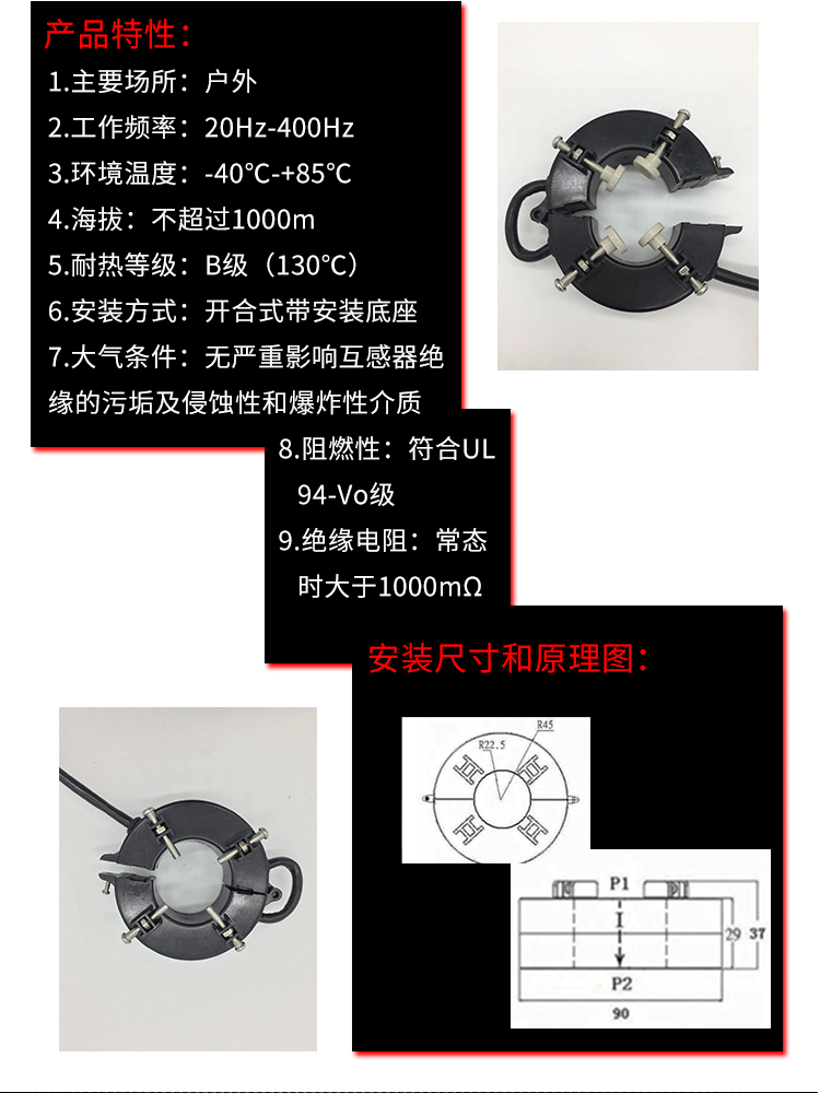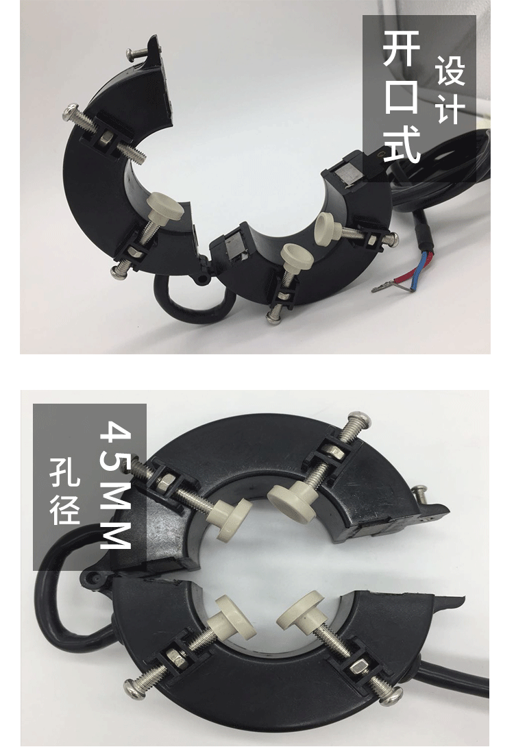 Open/open/open-close current transformer 100A-800A/5A, aperture 45MM, grade 0.2 for metering, black, grade 02 400/5A