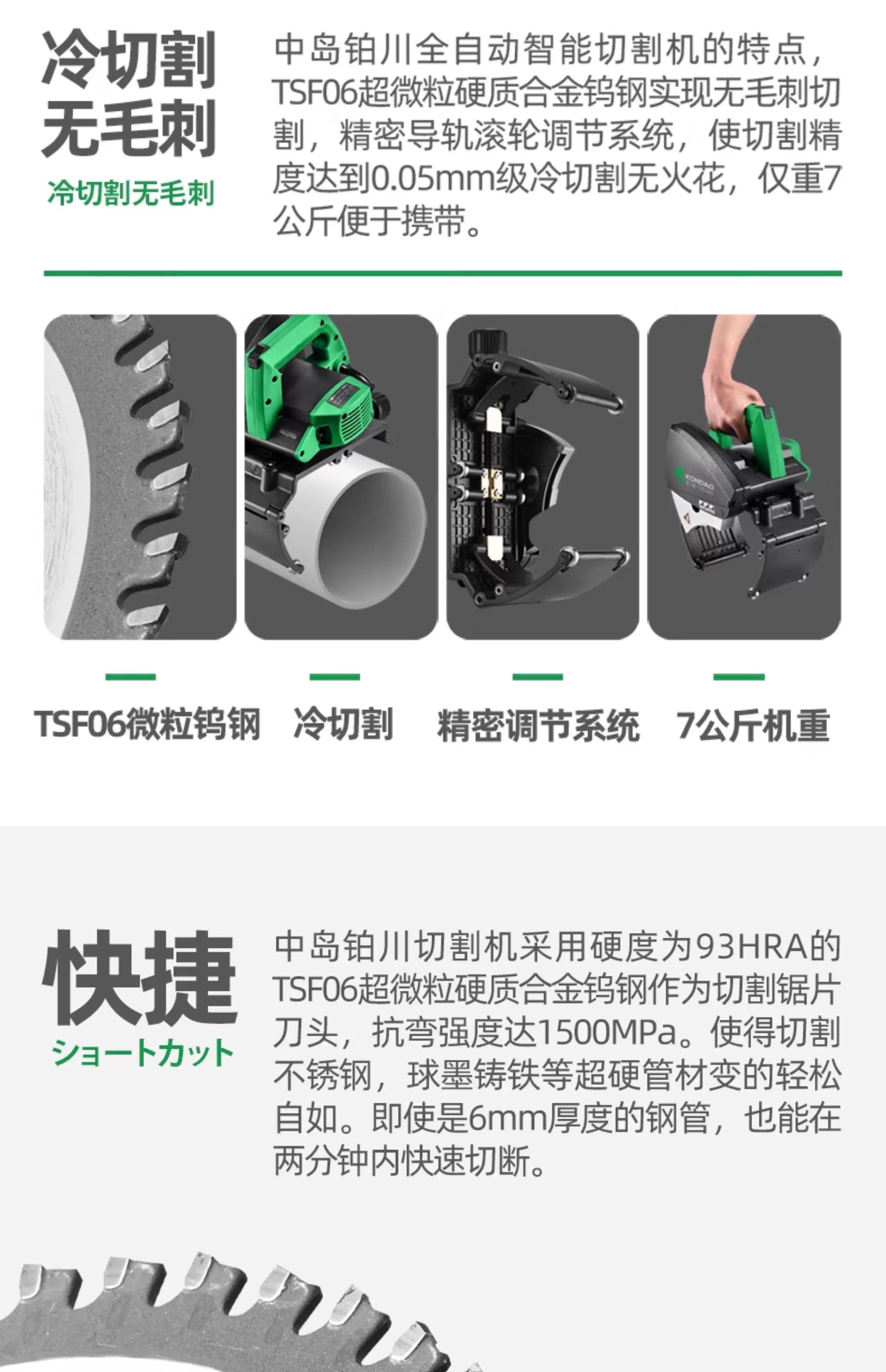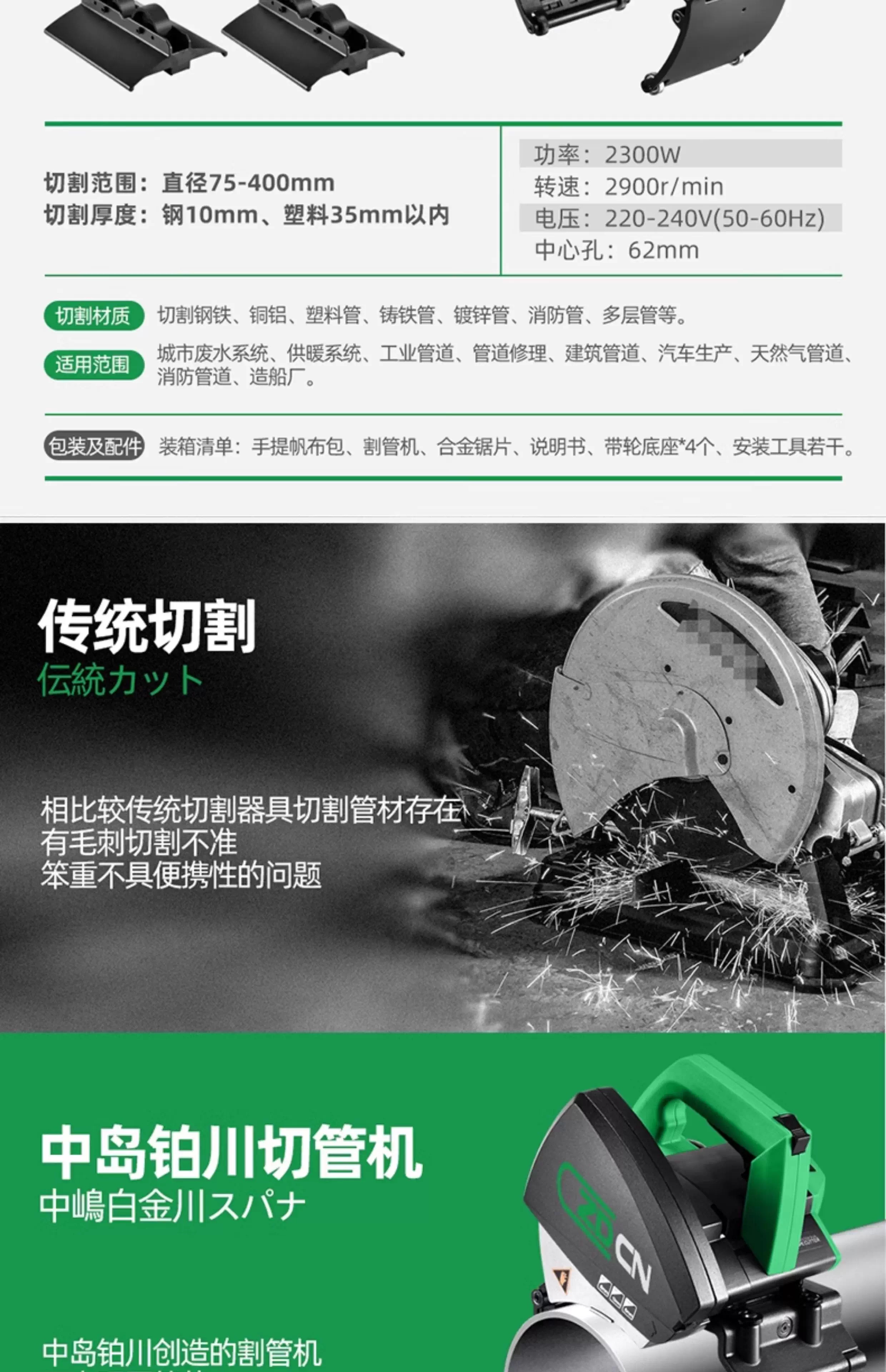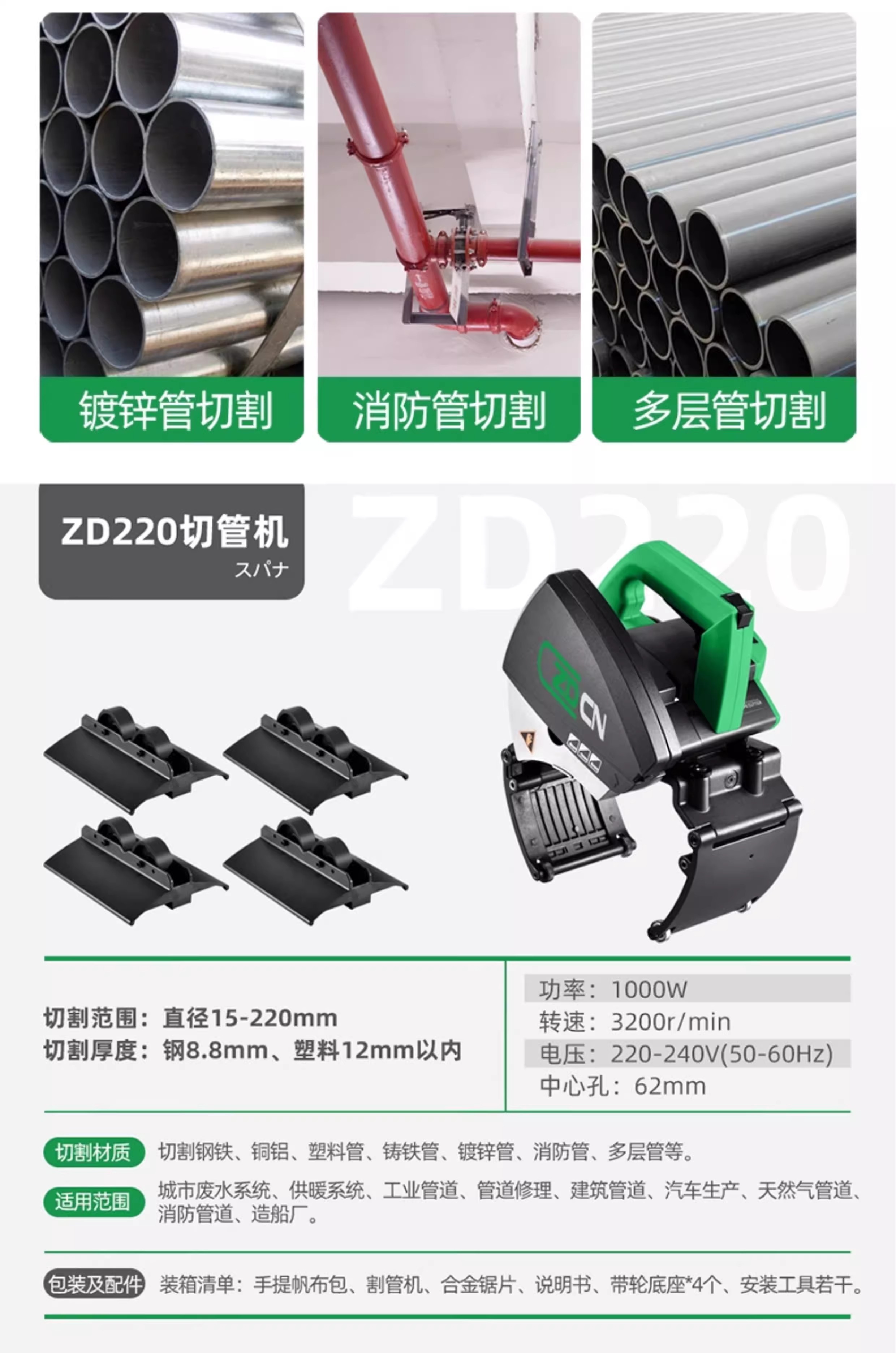 Nakashima Platinum Electric Pipe Cutting Machine Stainless Steel Pipe Cutting Machine Adjustable Speed Fully Automatic Small Pipe Cutting Machine Accurate and Burr-free ZD220 Original Saw Blade 3 Pieces Pipe Diameter Range 15-220mm