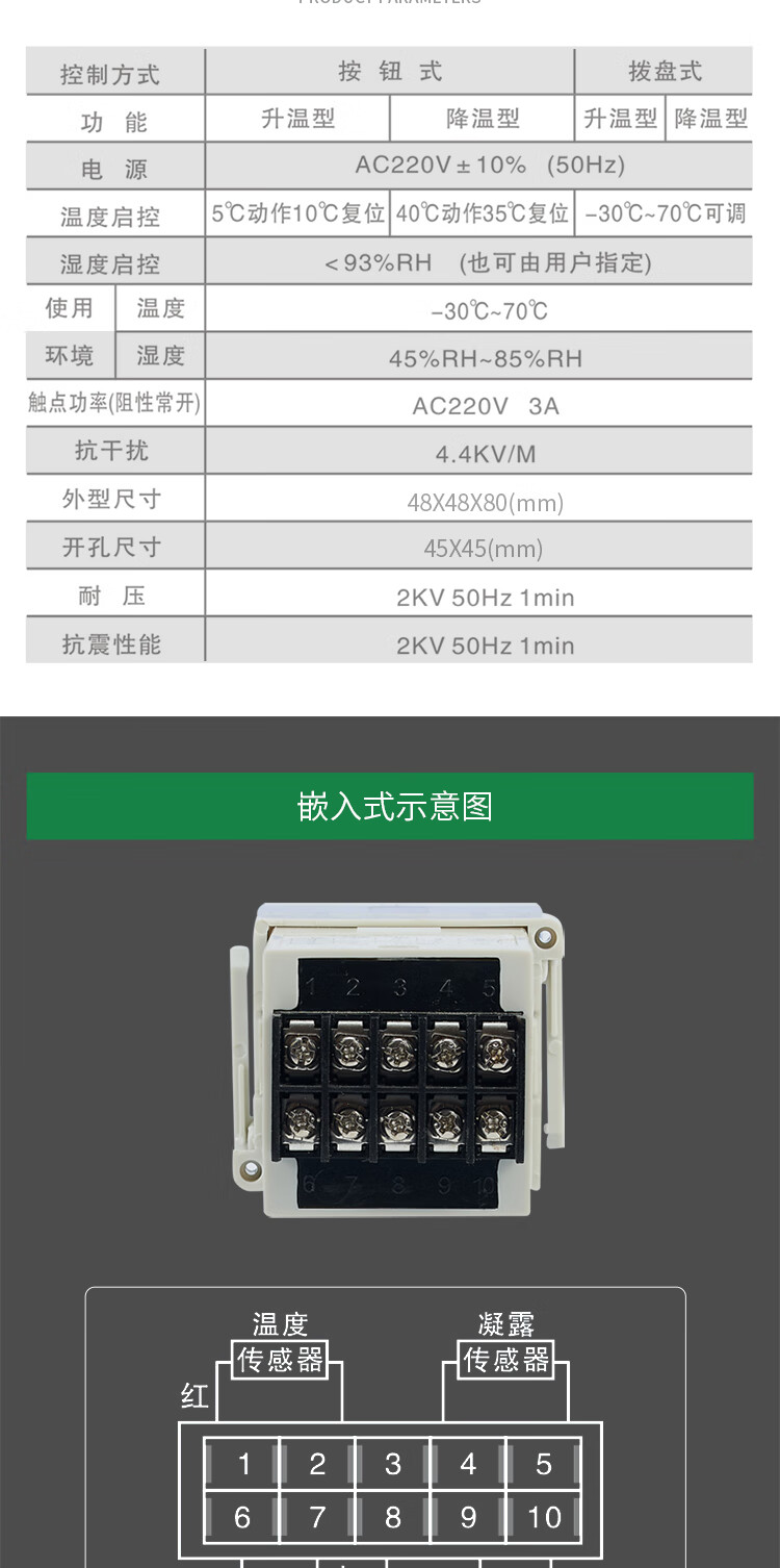 NK-M condensation controller power distribution cabinet fully automatic dehumidification and anti-condensation temperature and humidity controller 220v temperature WK heating (embedded)