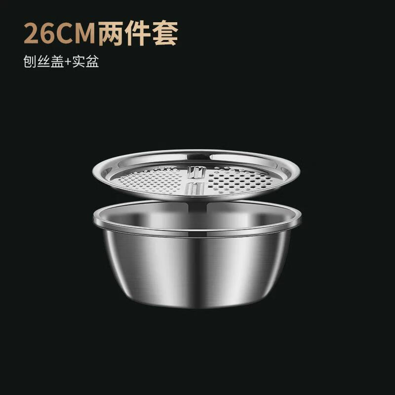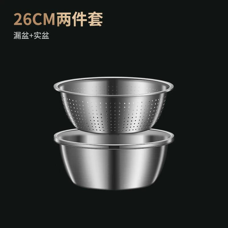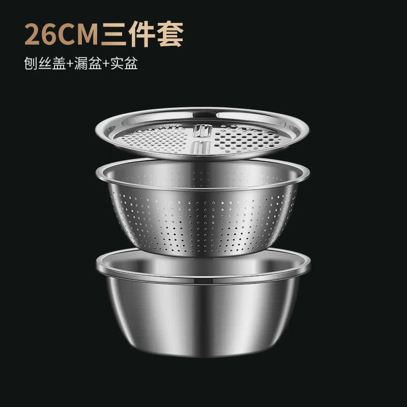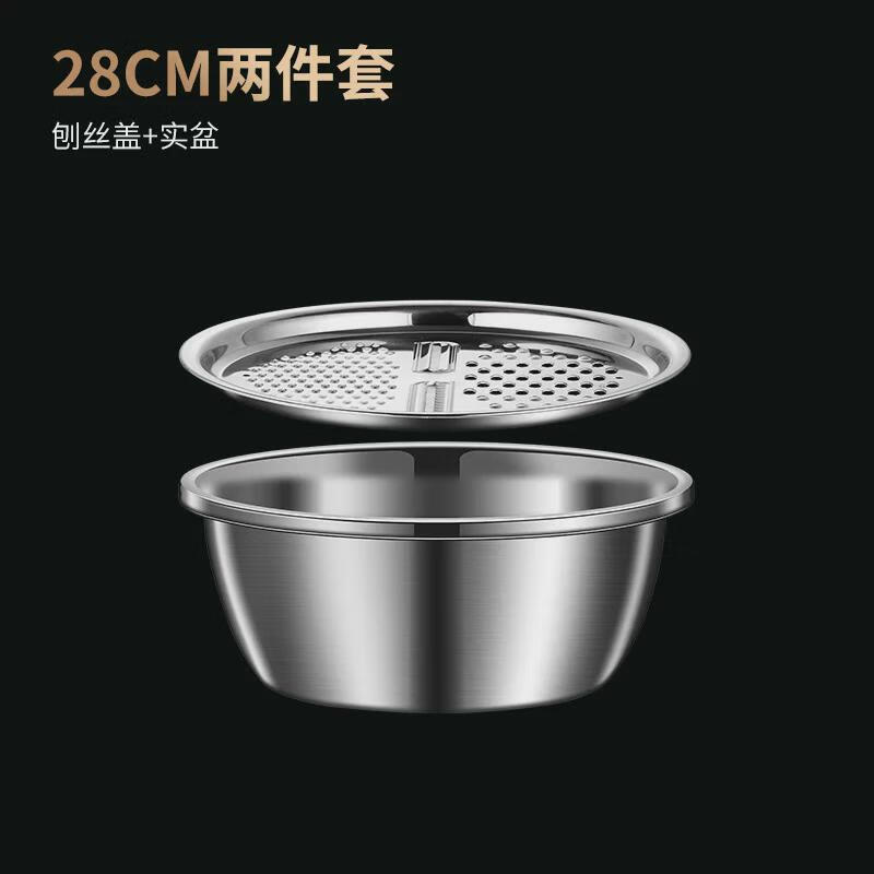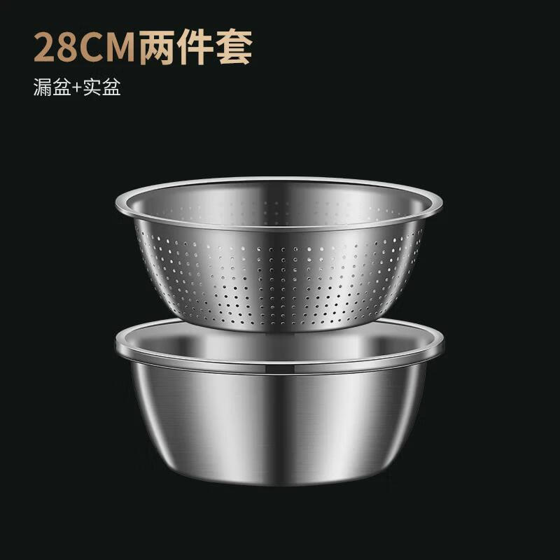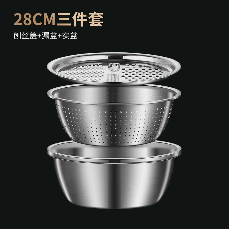 He Jiagong stainless steel basin set kitchen household thickened egg and noodles washing vegetable drain basket leaking soup basin 2 30 planing plate + thick basin