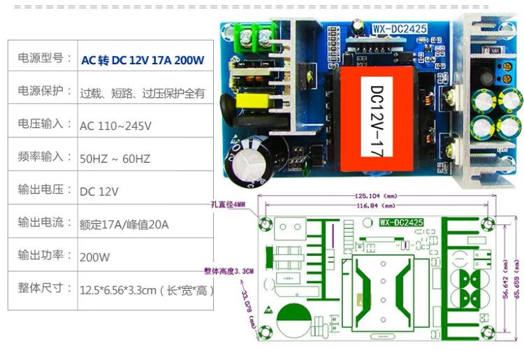 Customized AC-DC isolation voltage regulator and step-down module AC 220 to DC 5V12V24V9V36 small size switch 12V17A200W