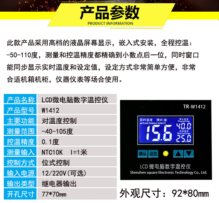 XH-W1412 LCD intelligent incubation temperature control thermostat switch instrument digital display adjustable high-precision temperature control 1 220V