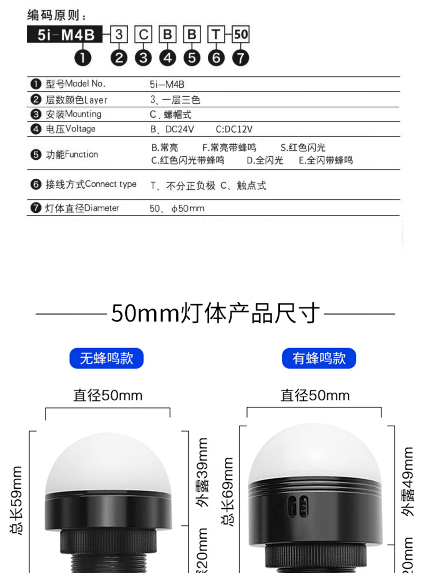 Customized LED waterproof three-color light 5i equipment warning light m4b small signal light single layer red, yellow and green indication adaptation orange