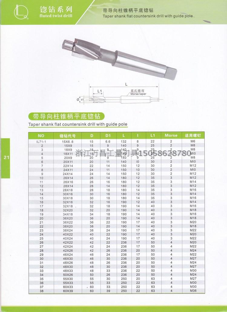 Flat bottom countersink/countersink drill/countersunk head milling cutter with replaceable guide post, taper shank 15 16 18 20 22 24 26 2 18X9