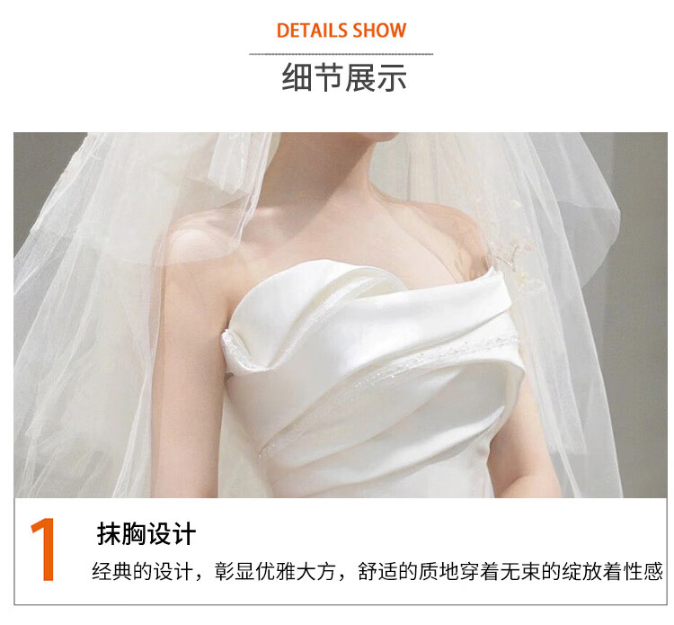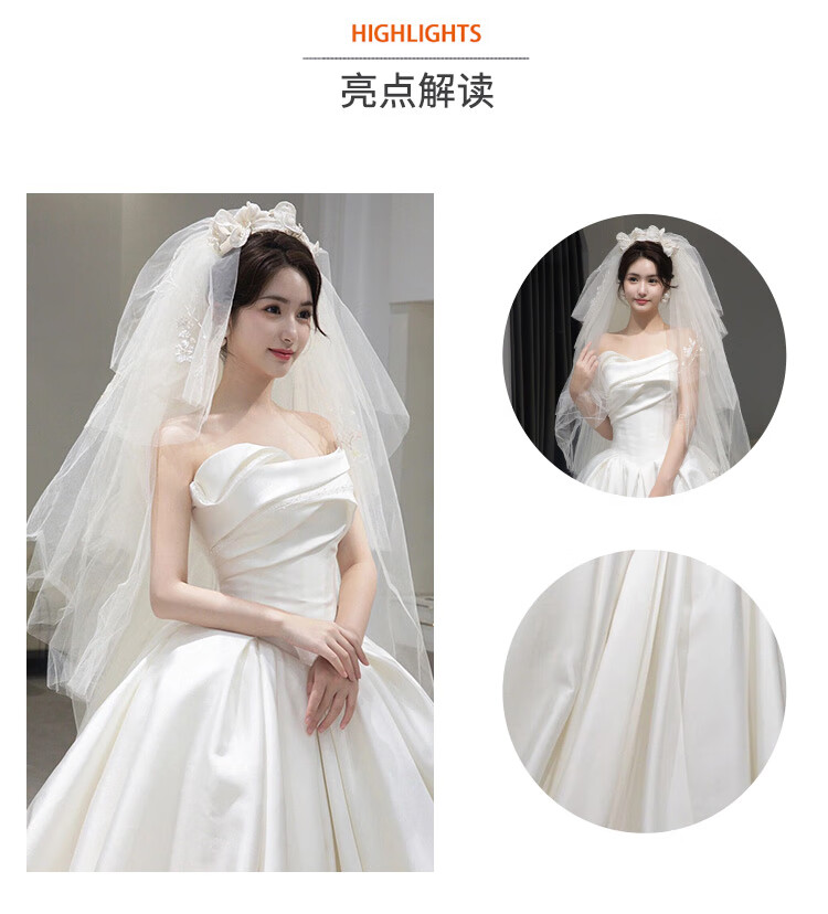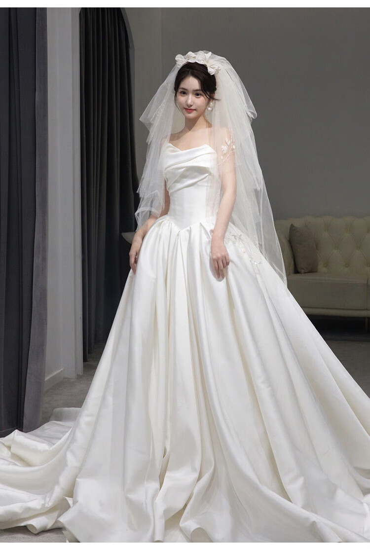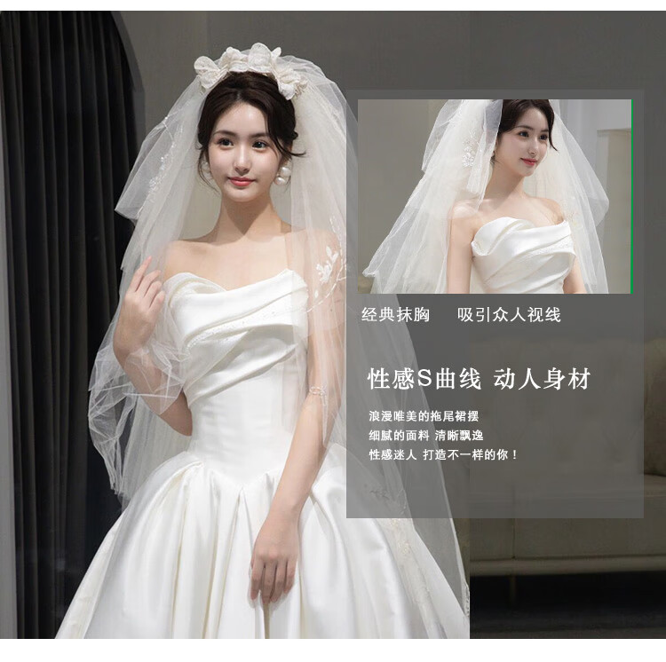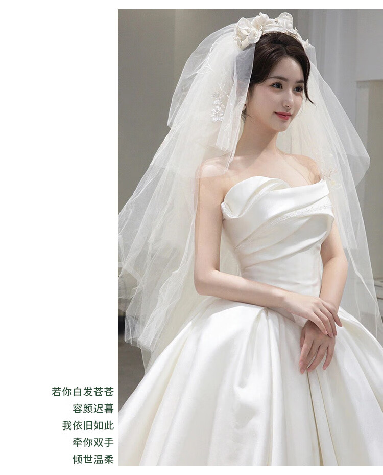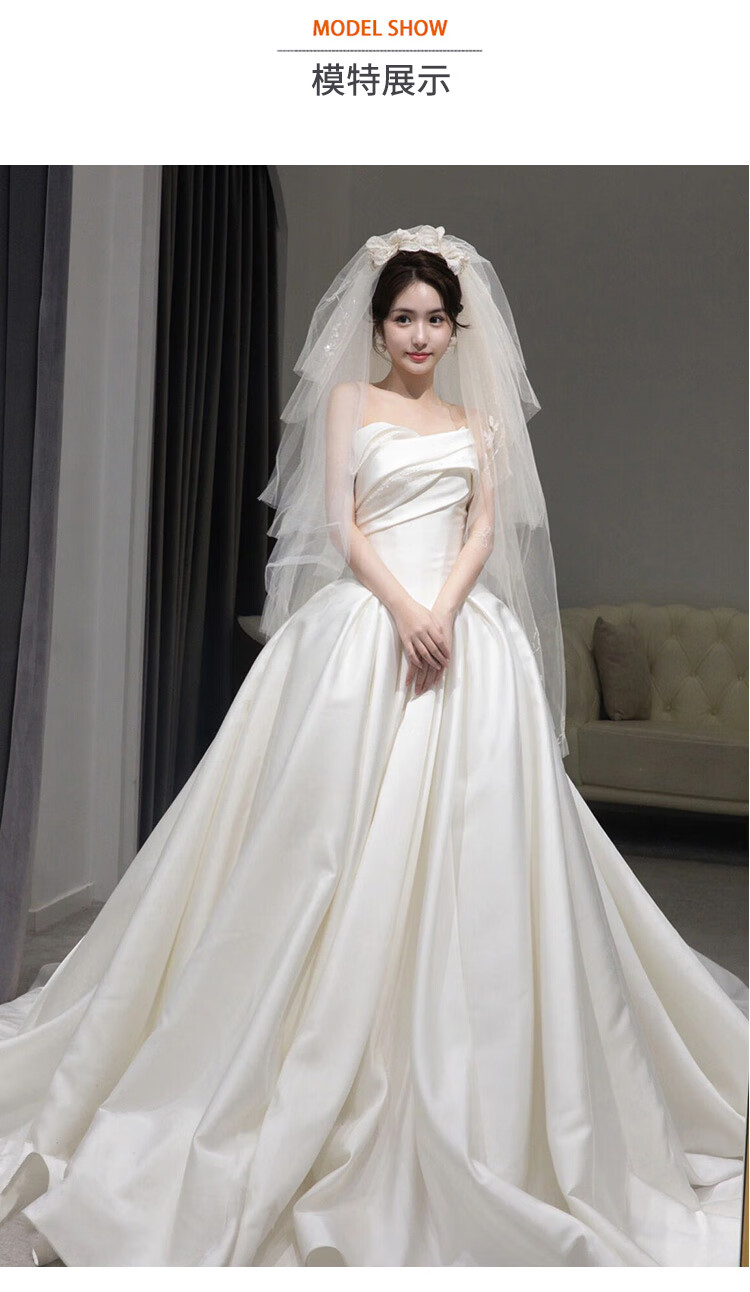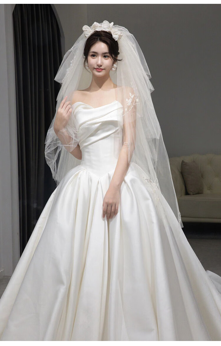 Fengli French Wedding Dress Satin Light Wedding Dress 2025 Main Gauze Feel Tube Top Simple Small French Dress Outing Gauze Floor-length + Three-piece Set M