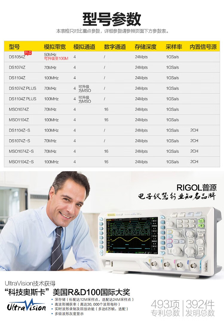 Puyuan Jingdian DS1054Z oscilloscope bandwidth 50M four-channel 100M digital oscilloscope spring isolation oscilloscope DS1054Z upgrade 100M