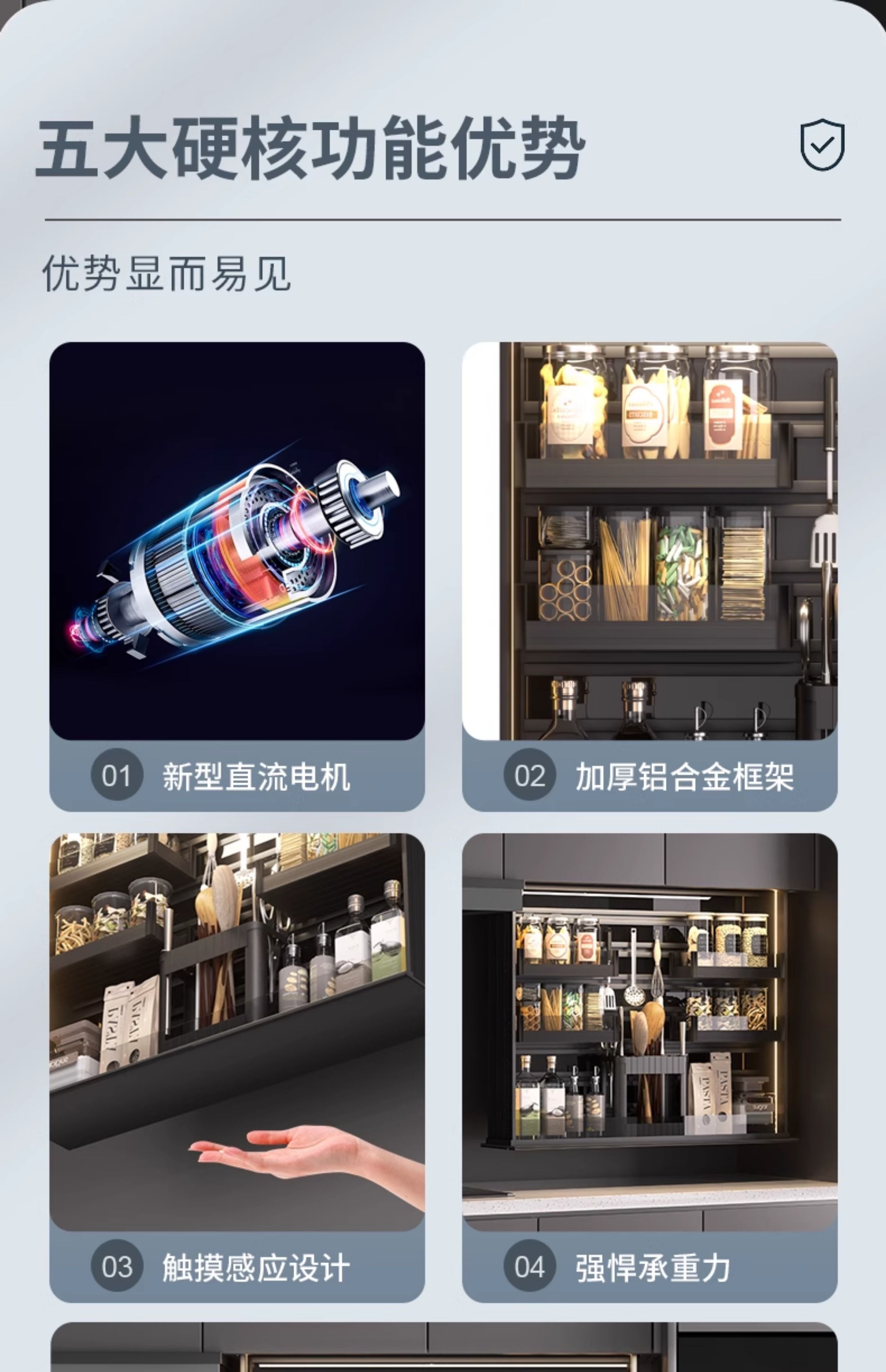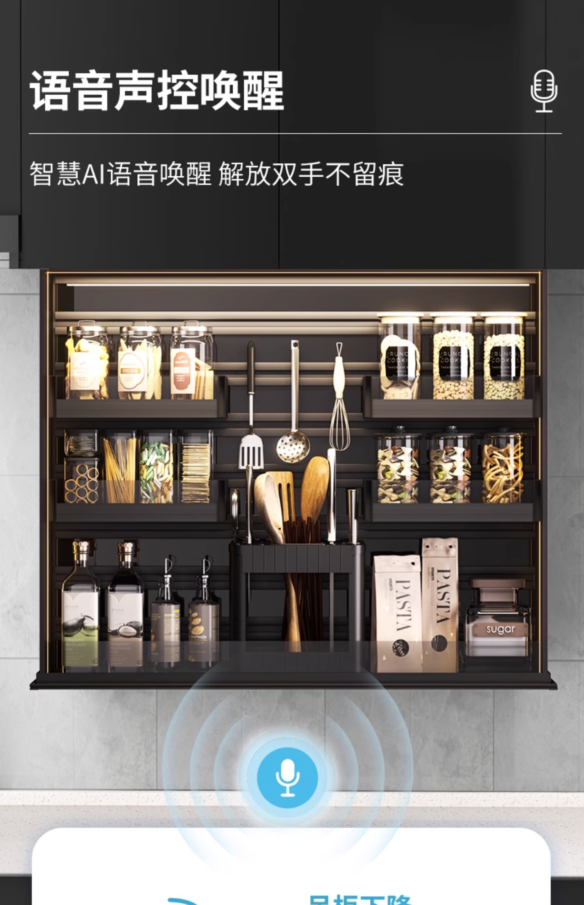Huili's customized electric lifting basket kitchen wall cabinet lifting seasoning basket intelligent voice cabinet automatic vertical pull-down adjustment A type 350 cabinet lighting/voice/touch/anti-multi-layer electric lifting