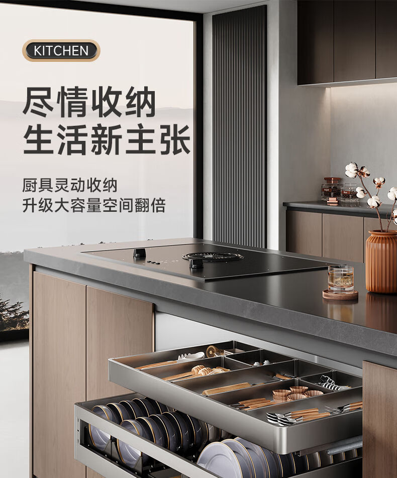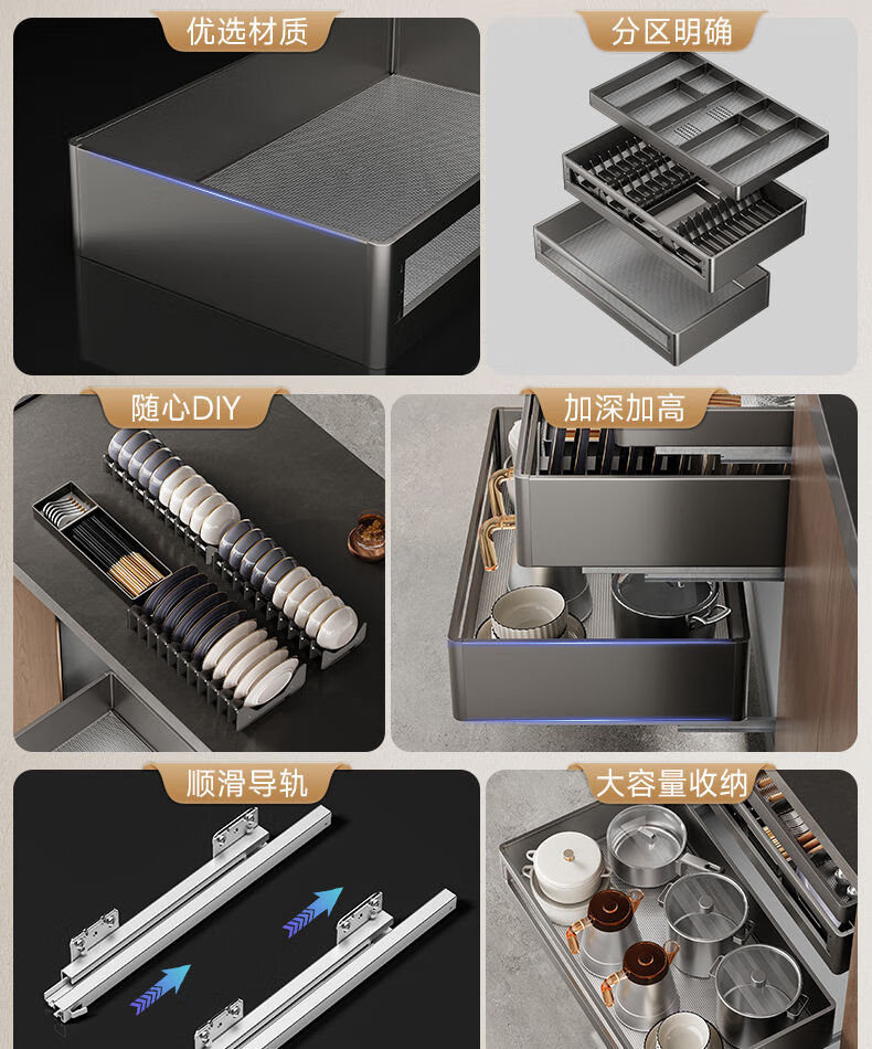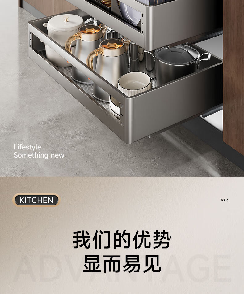 Huili's customized pull-basket kitchen cabinet space aluminum alloy double-layer drawer-type dish rack dish basket cupboard kitchen cabinet bowl basket gun gray 650 cabinet-double layer thickening and reinforcement-adjustable multi-layer drawer type