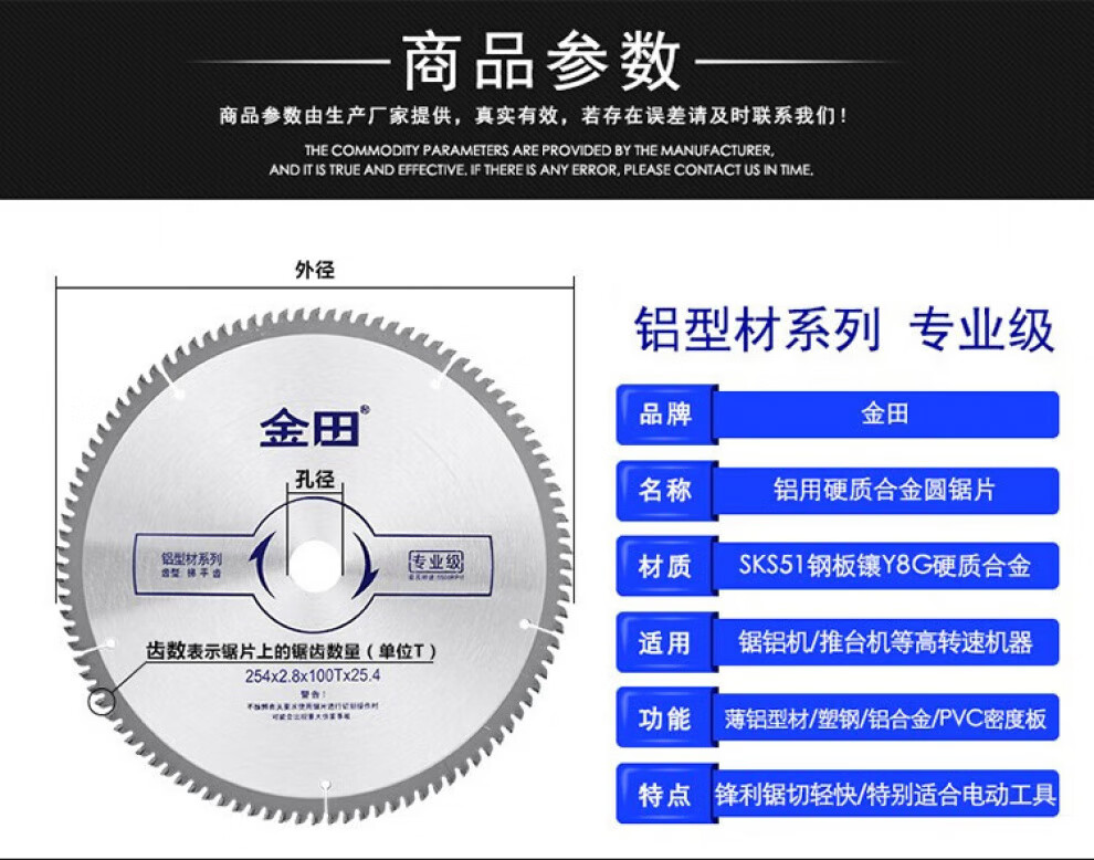 Jintian Aluminum saw blade for cutting aluminum alloy aluminum profiles ladder flat teeth woodworking cutting blade saw aluminum machine broken bridge aluminum 14 inches 14 inches 355 3.2 120T 25.4 ladder flat teeth