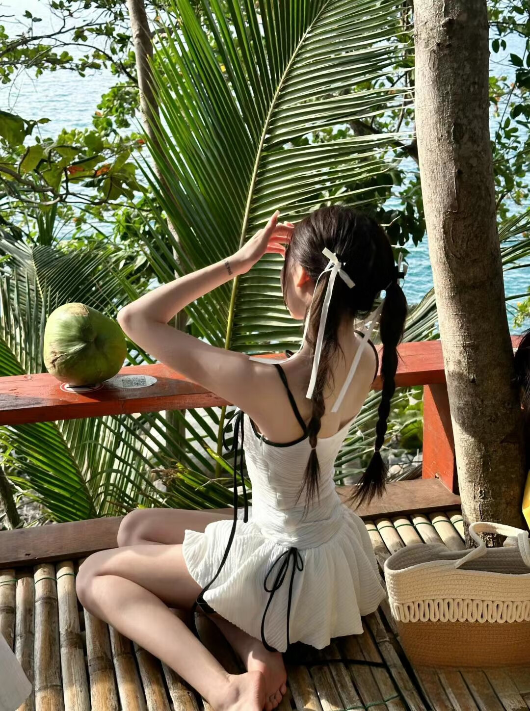 Lugeli Swimsuit Women's Suspender One-piece Skirt Swimsuit Women's 2025 New Advanced Slim Covering Belly Sexy Hot Spring White Suspender Swimsuit One Size Recommended 80-120 Jin