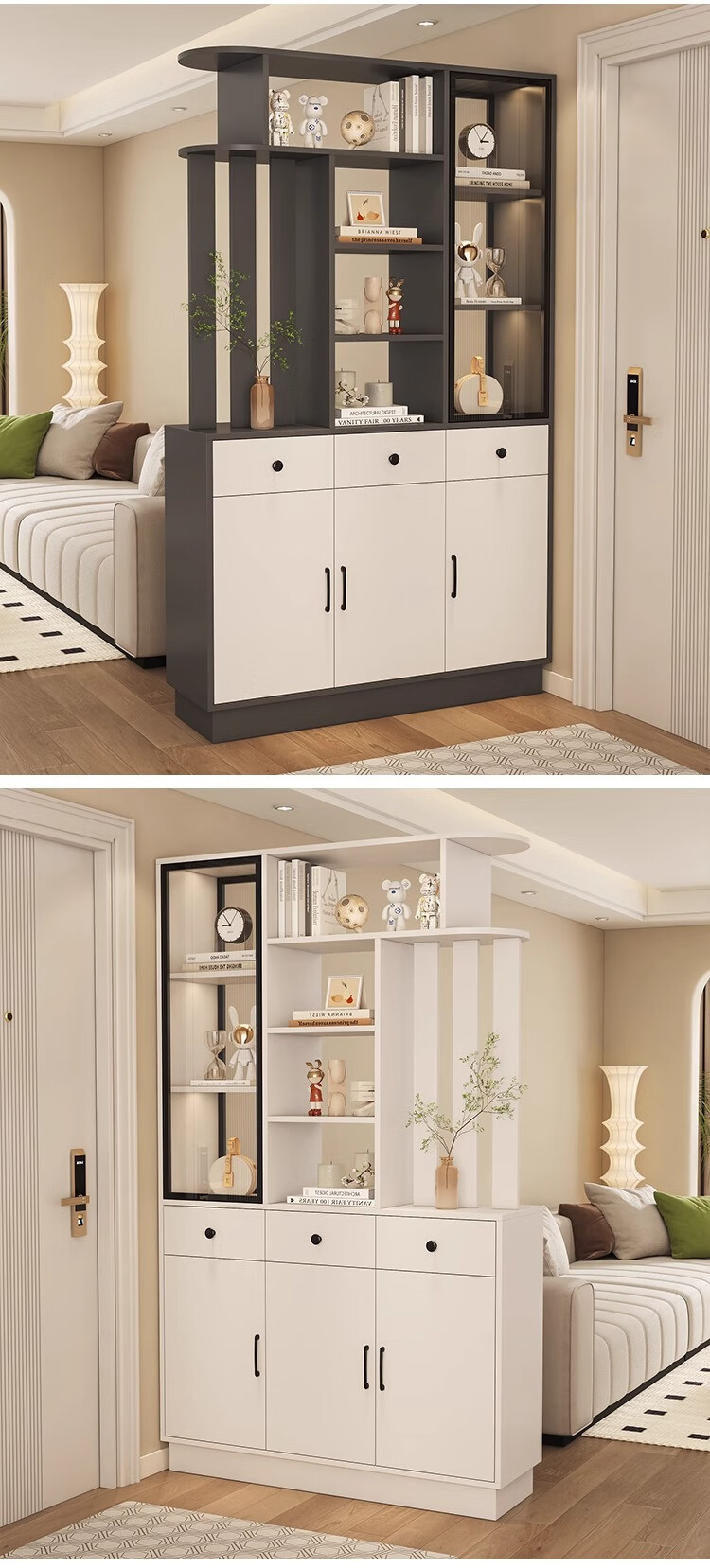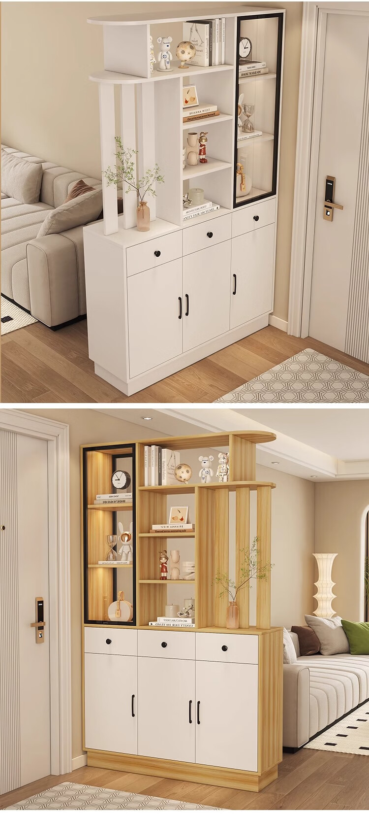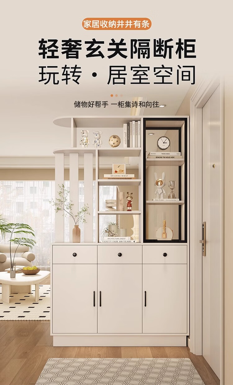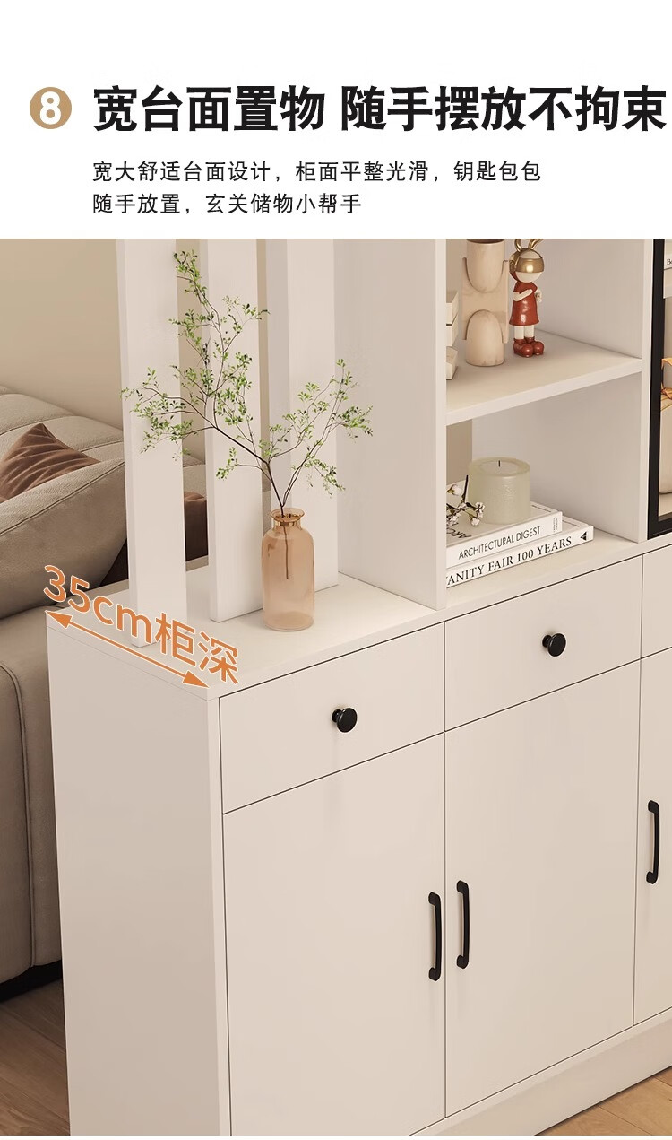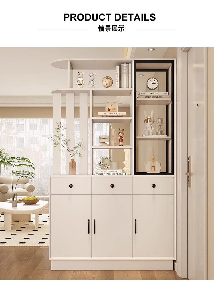 Palm Pearl Home solid wood entrance cabinet double-sided partition facing the door foyer shoe cabinet small apartment living room storage multi-functional wine cabinet right solid wood ecological board warm white length 100 depth 35
