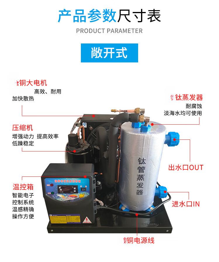 Temperature control box seafood chiller fish pond refrigerator thermostat breeding fish tank ice water electric box single cooling 003F suitable for 3 horses black