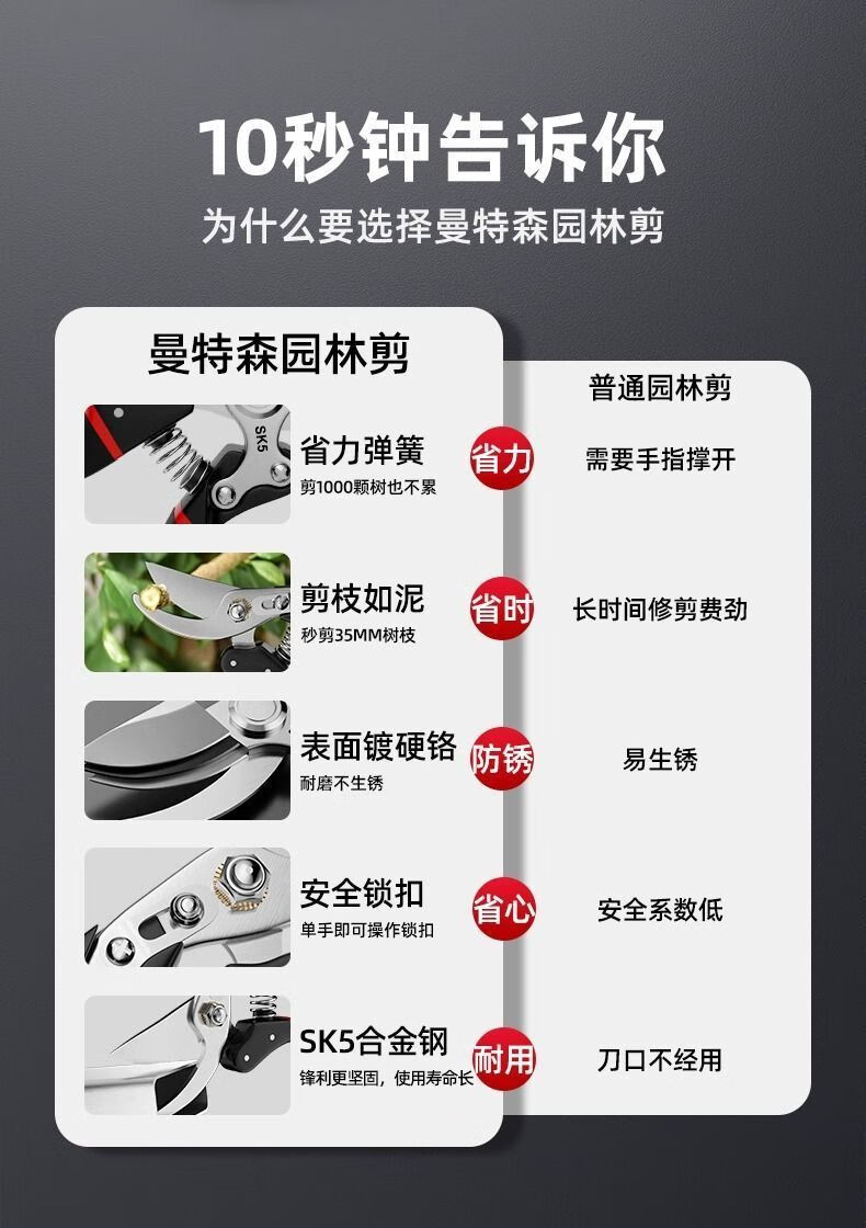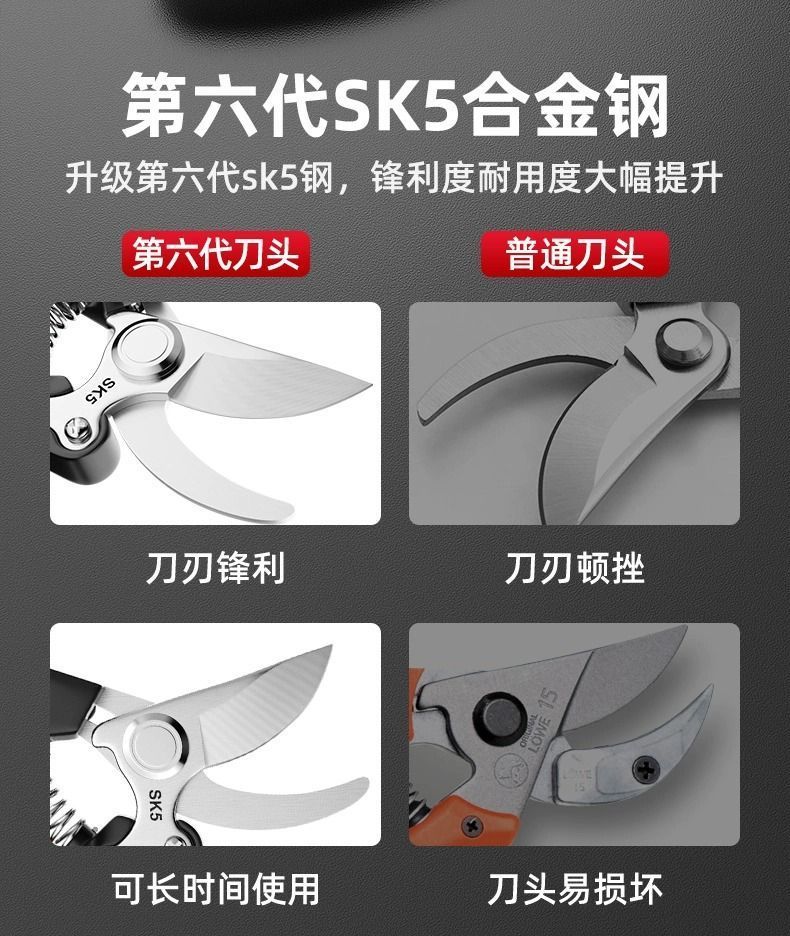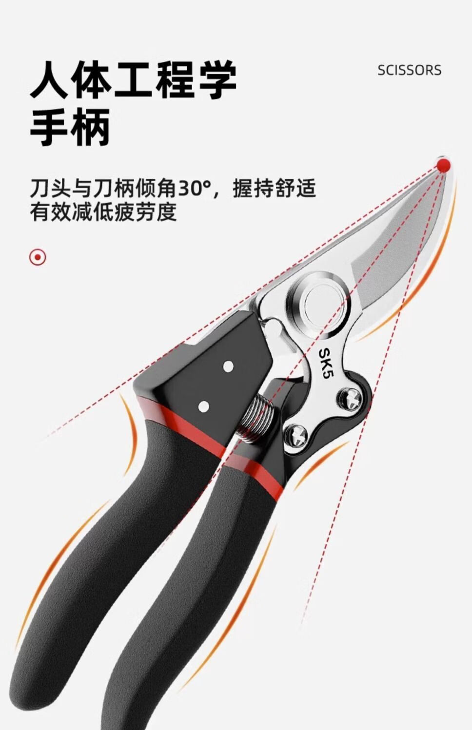 FANCYCHIC German SK5 powerful gardening shears stainless steel labor-saving pruning shears special for thick branches of fruit trees German imported SK5 pruning shears hand guard