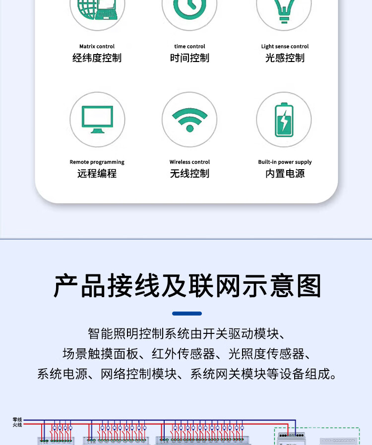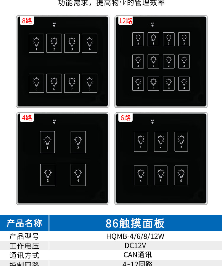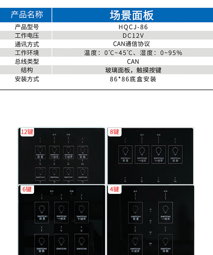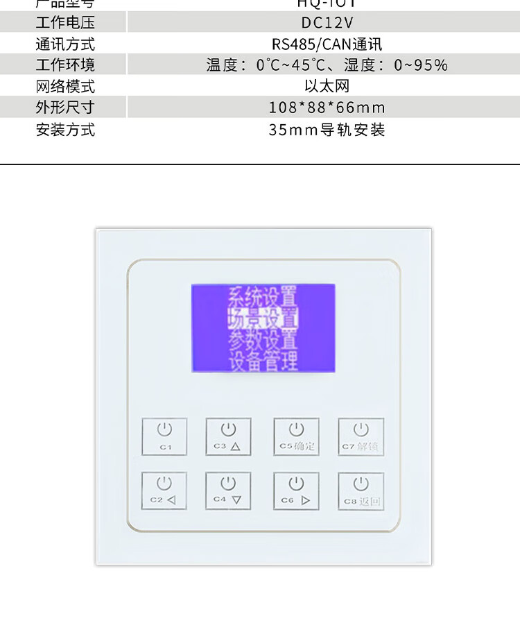 Intelligent lighting control module CAN communication protocol time-controlled longitude and latitude switch 8-circuit lighting controller 86-scene LCD panel DC12V