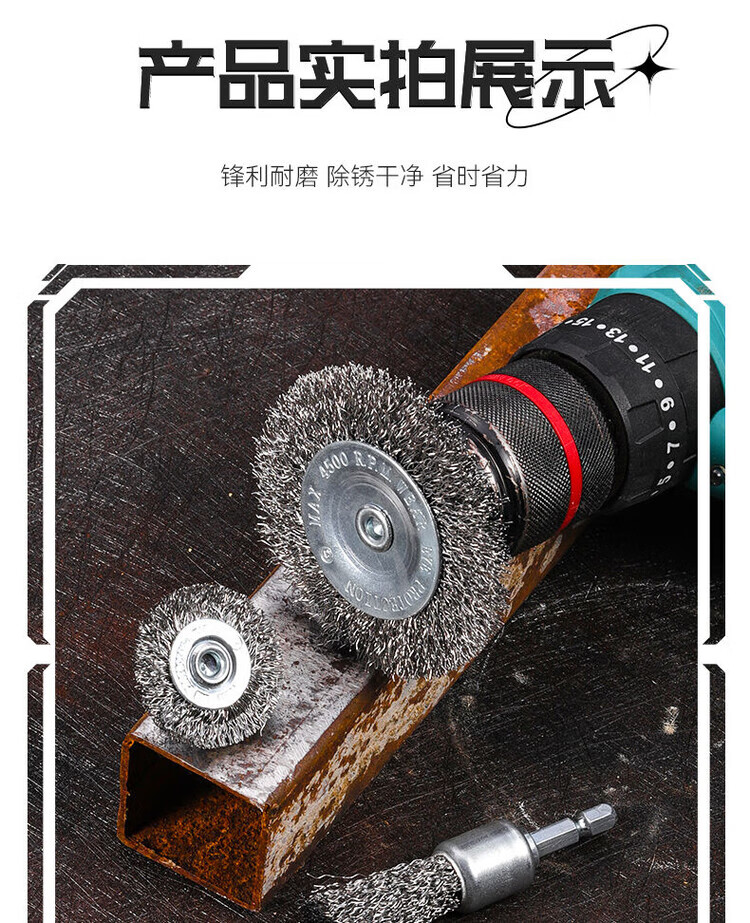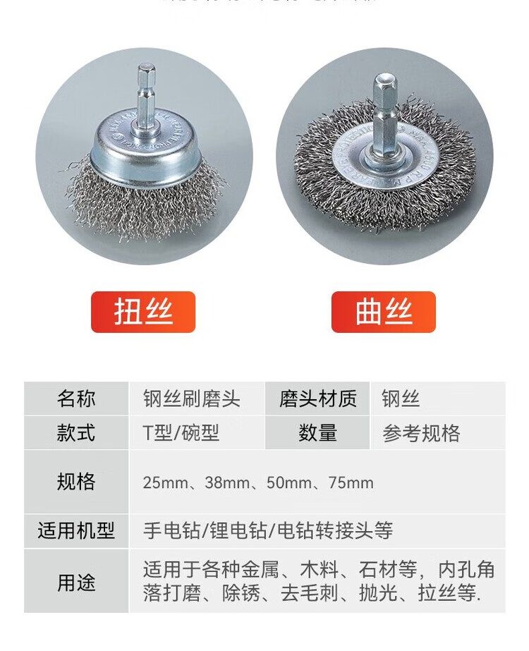 Electric drill cleaning brush head, wire brush, wire polishing tool, electric grinder, stainless steel wire rust removal and polishing tool, rust, wire bowl type + T type 5-piece set