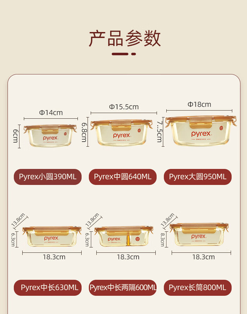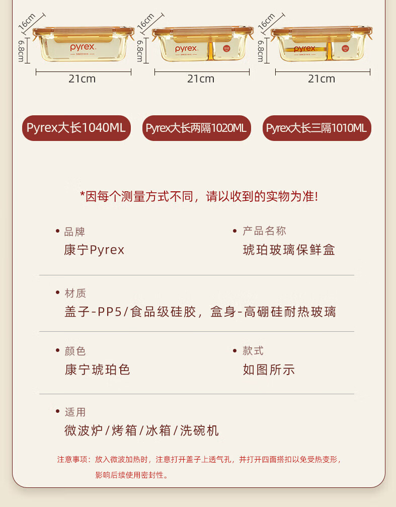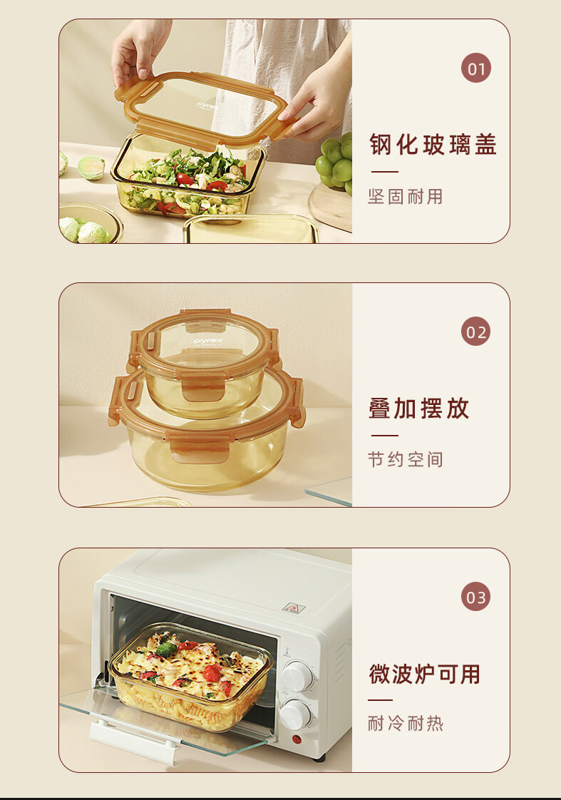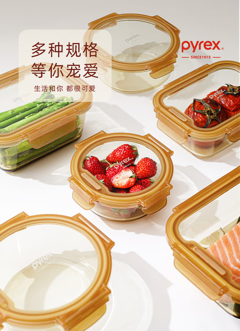 PYREX Corning amber glass lunch box, refrigerator storage box, sealed jar, glass bowl with lid, microwaveable lunch box, Corning Pyrex small round 390ML