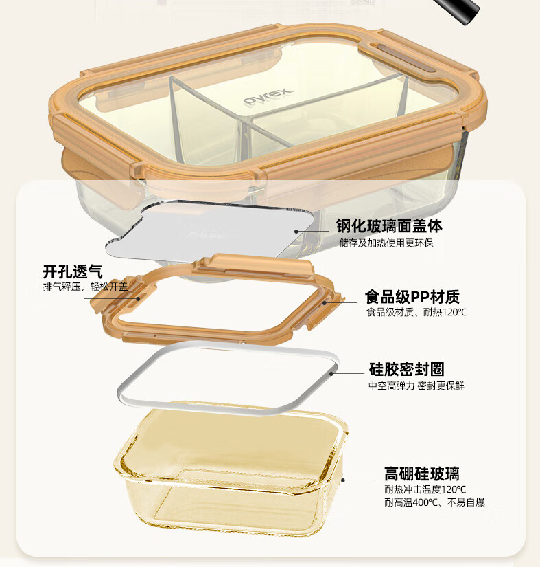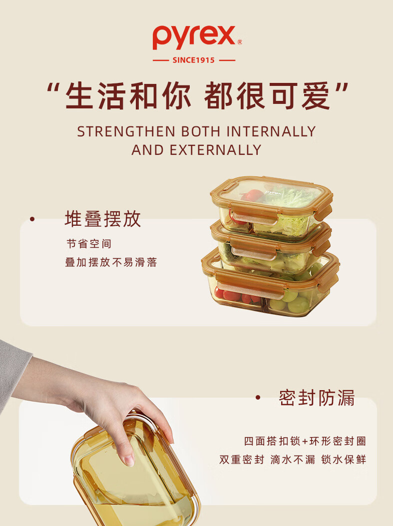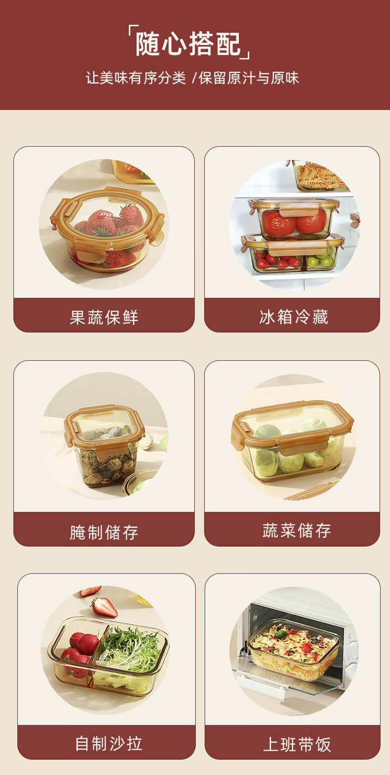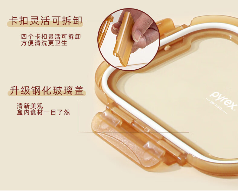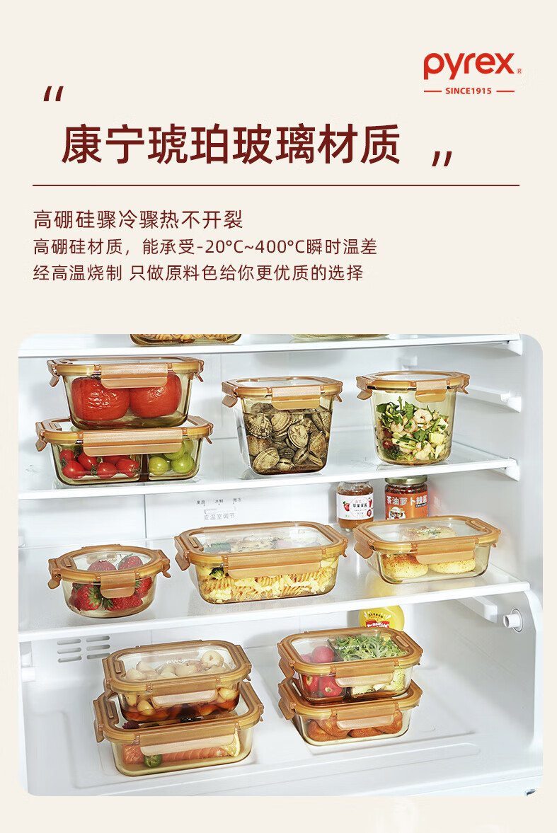 PYREX Corning amber glass lunch box, refrigerator storage box, sealed jar, glass bowl with lid, microwaveable lunch box, Corning Pyrex small round 390ML