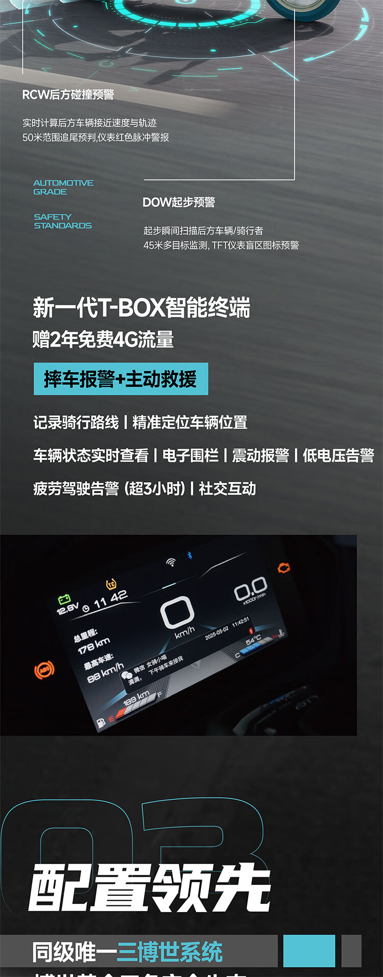 Secoron's new RT3 luxury comfort technology control large pedal major upgrade millimeter wave radar motorcycle RT3 smart version/exploration black