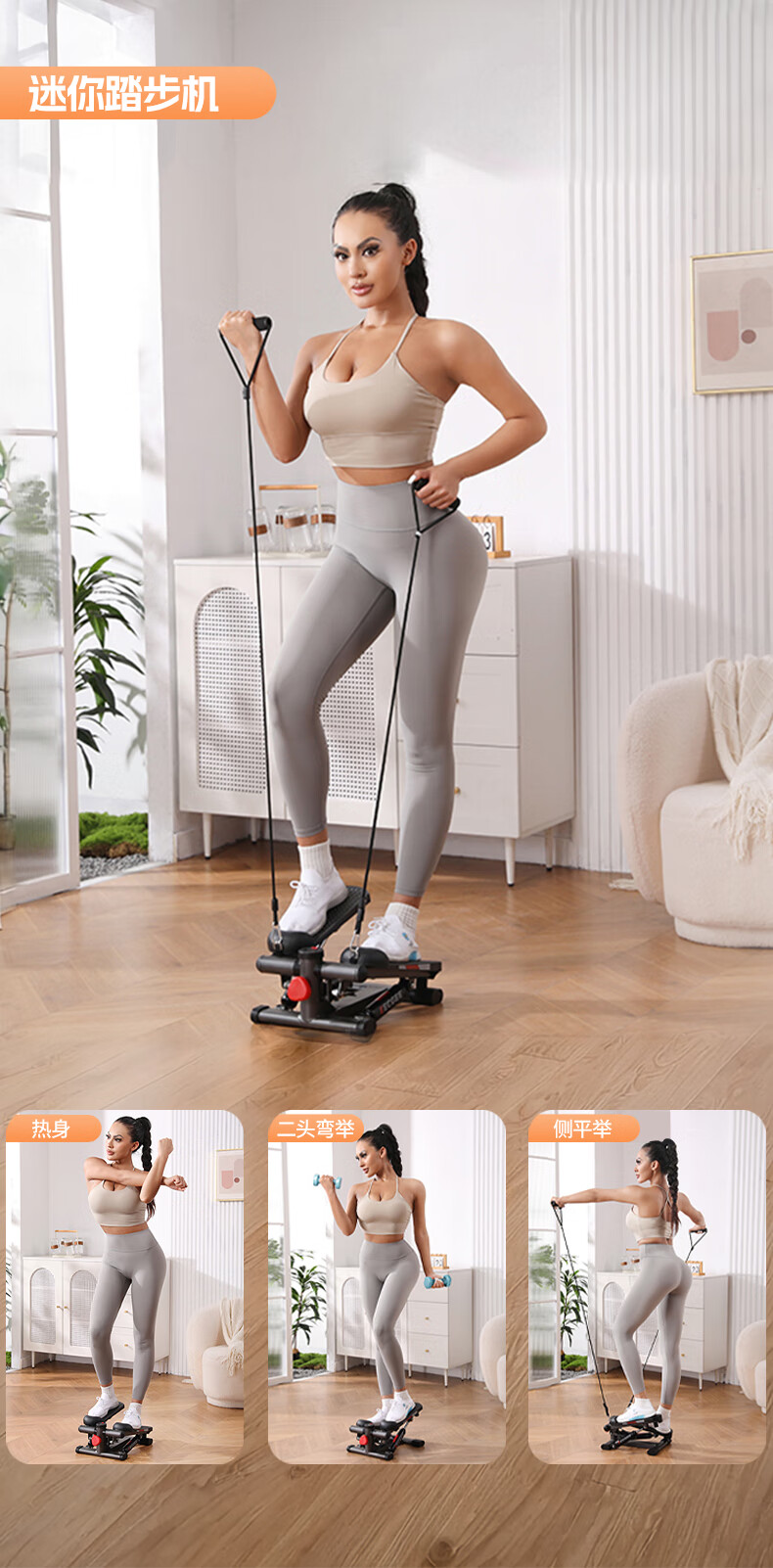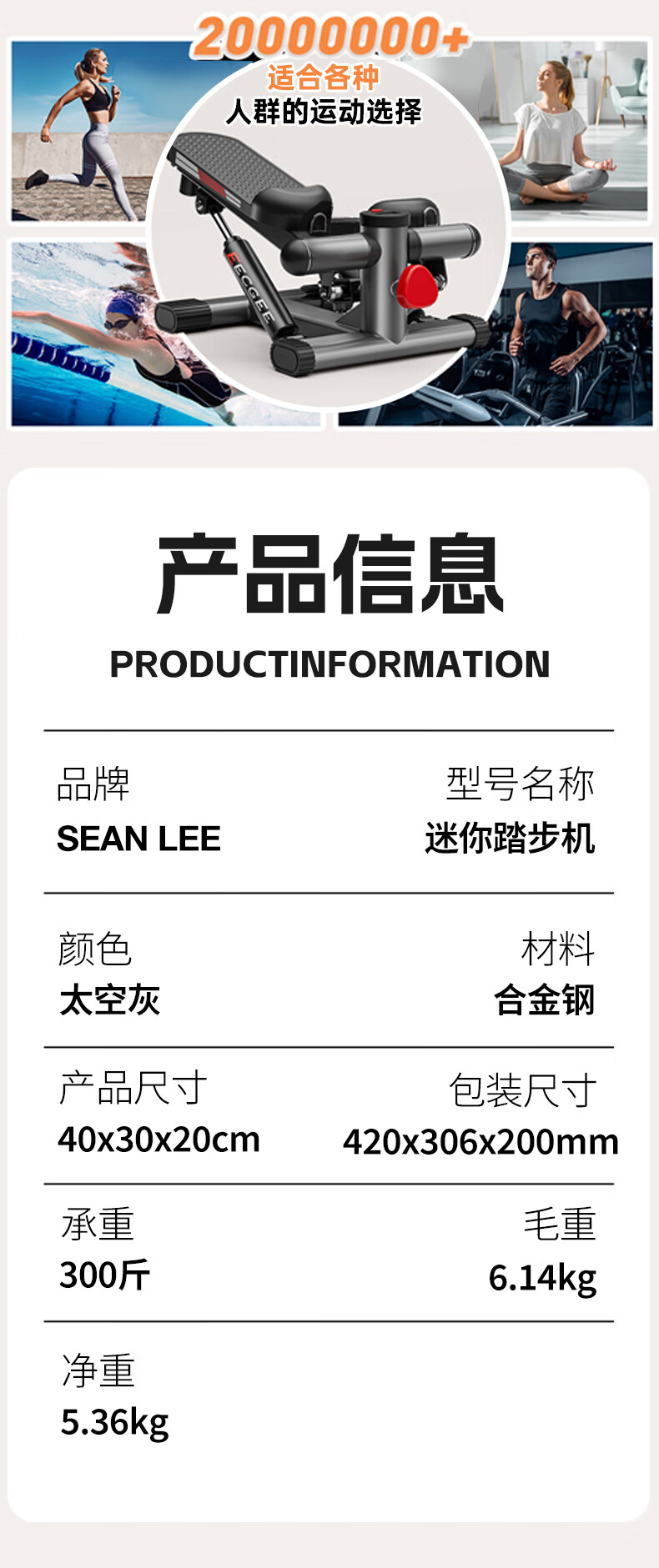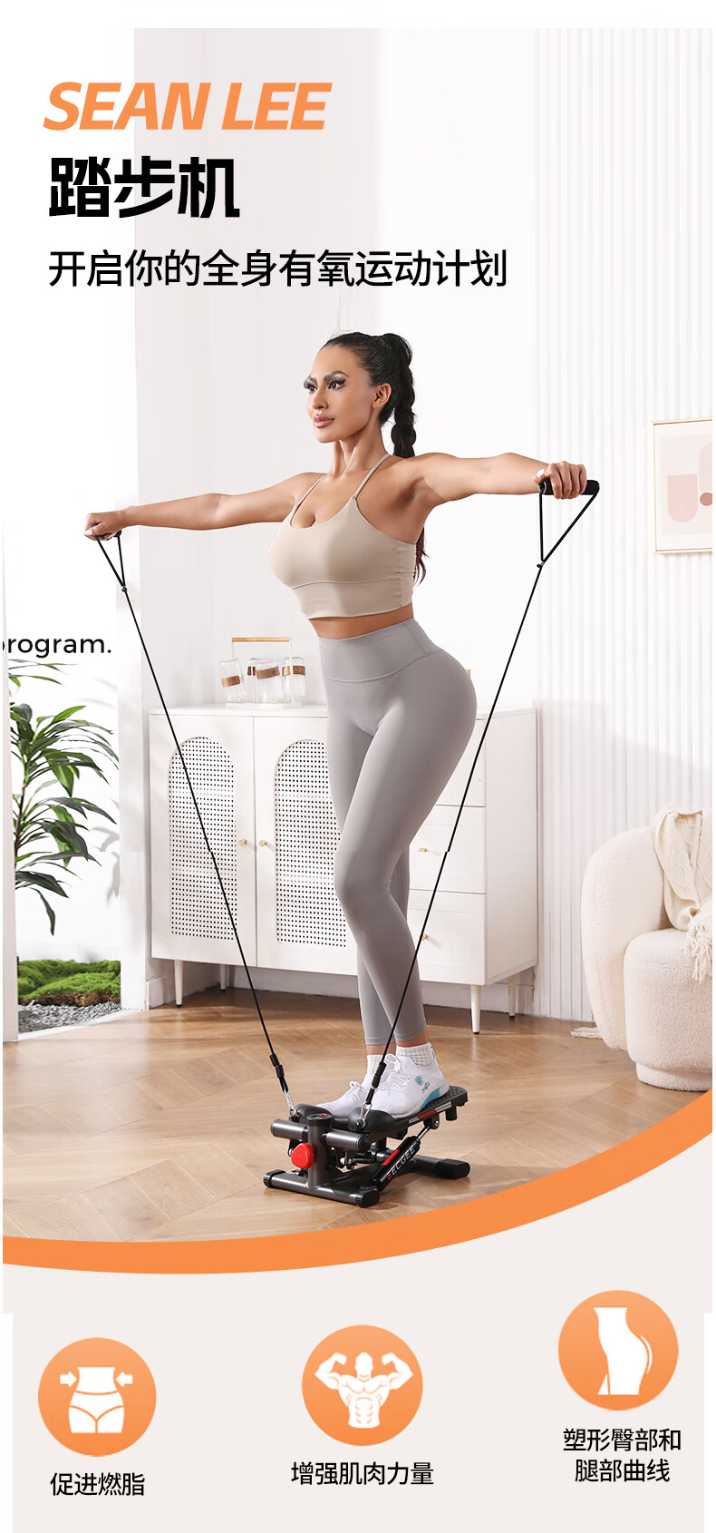 SEAN LEE stepper home small sports fitness equipment women's weight loss and beauty leg artifact in-situ mountaineering stepper upgraded version with drawstring efficient fat burning