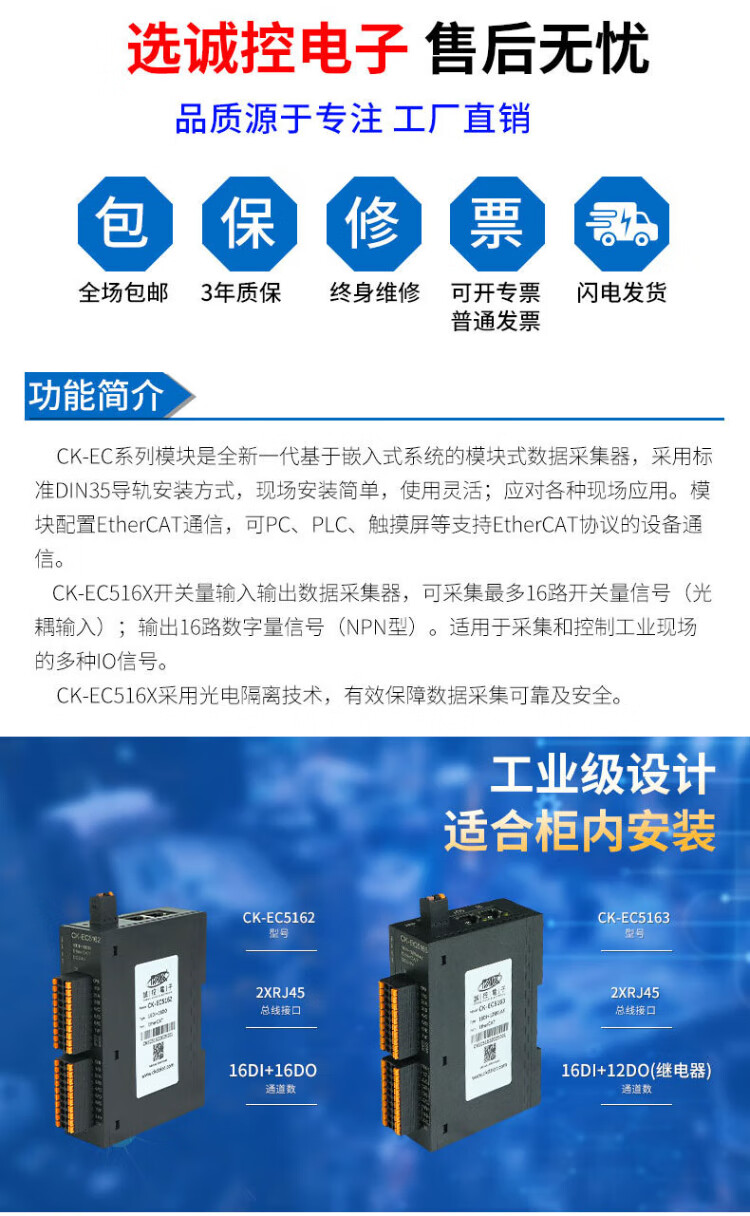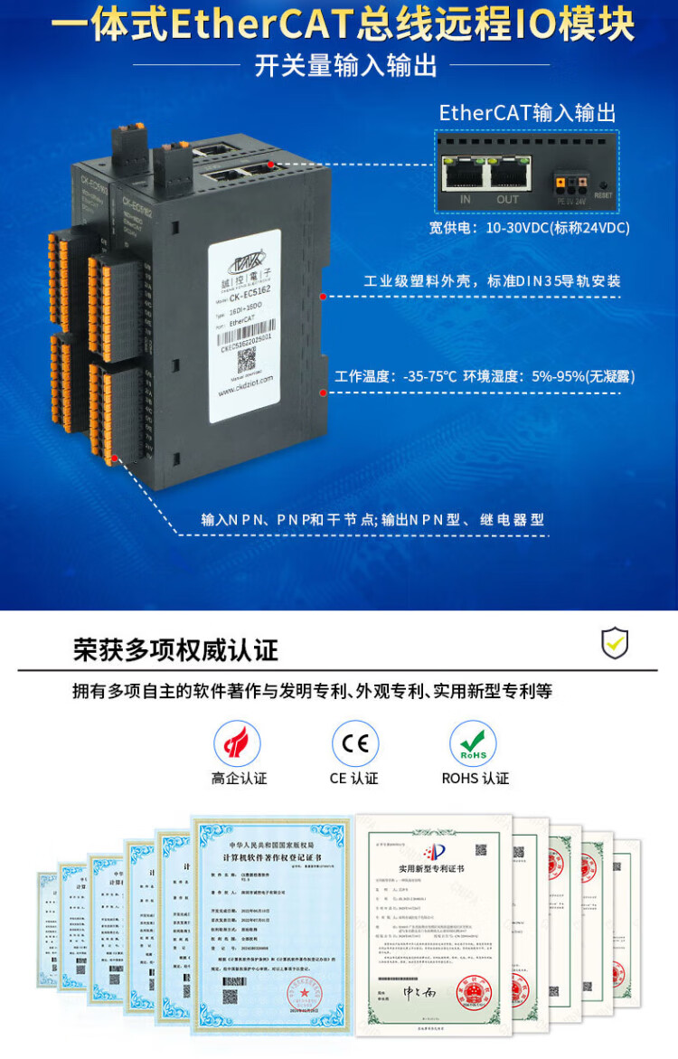 Digital analog input ModbusTCP Ethernet remote IO module RJ45 serial port EtherCAT input and output relay 16DI switch input-CK-TP5161