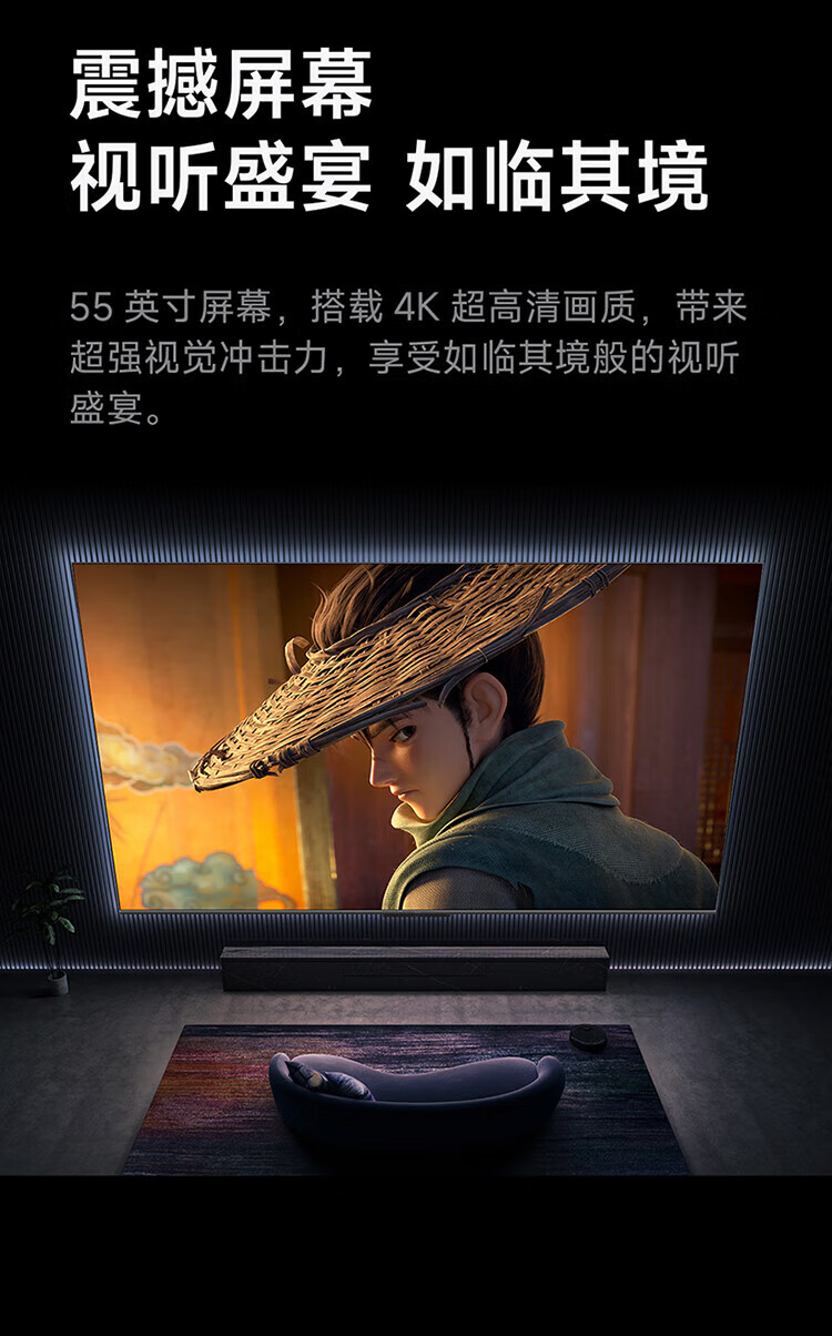 Xiaomi TV 55-inch Redmi A55 energy-saving version 2025 model 120Hz high brush far-field voice TV L55RB-RA trade-in 55-inch TV + floor-standing mobile stand + installation