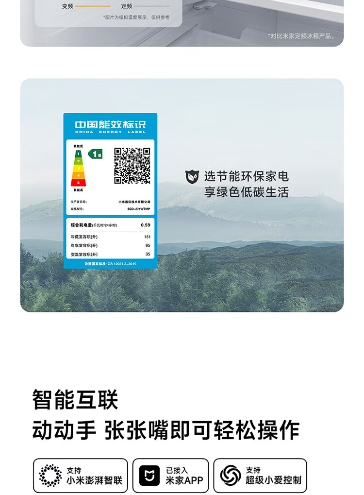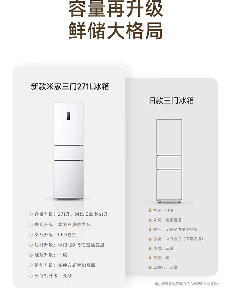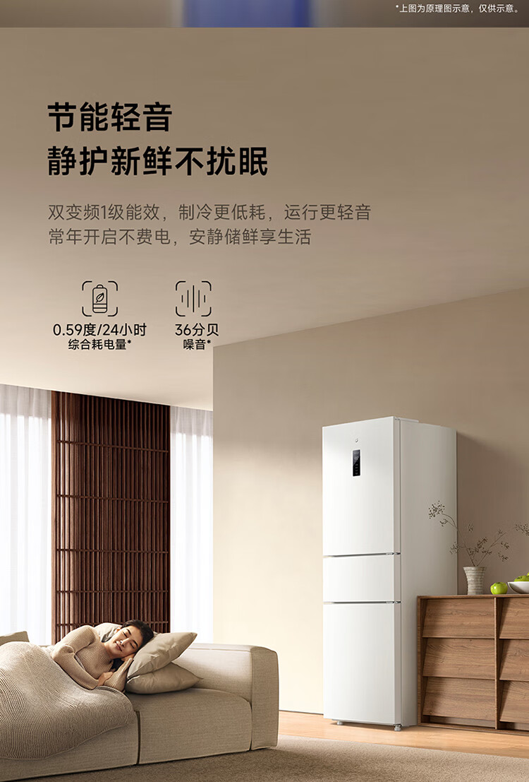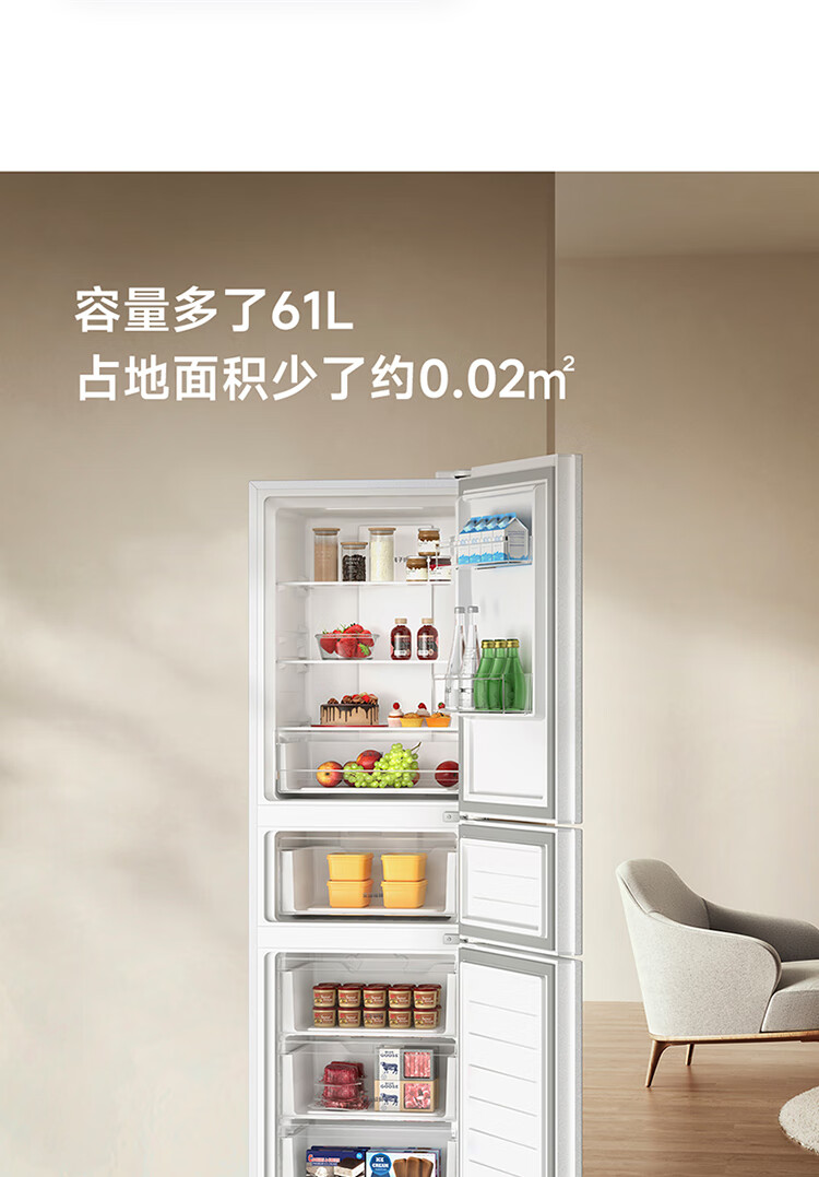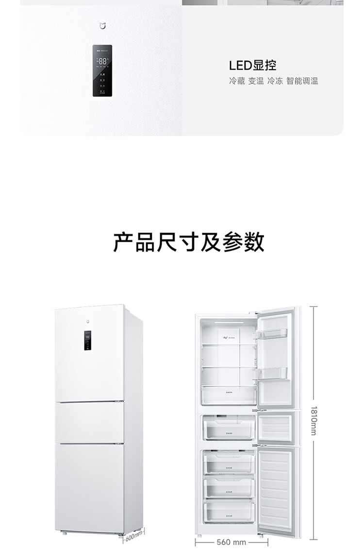 Xiaomi Mijia three-door 271L ultra-thin large capacity first-class energy efficiency inverter refrigerator BCD-271WTMP BCD-271WTMP