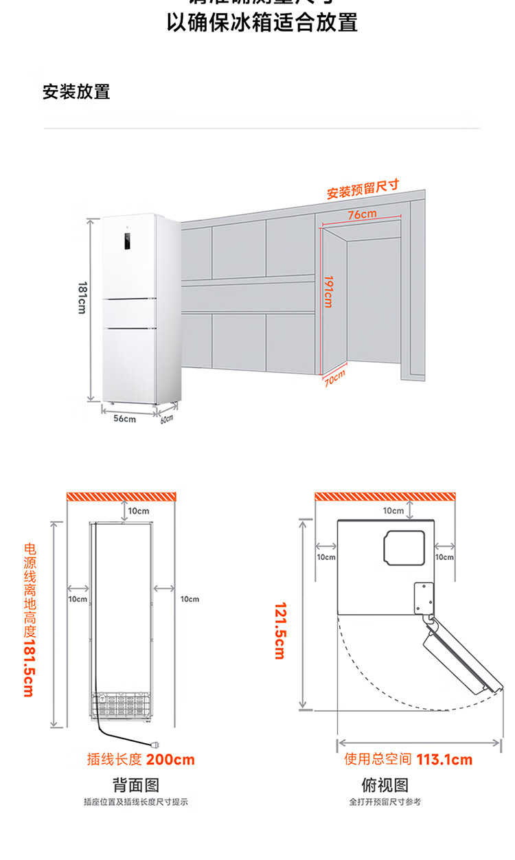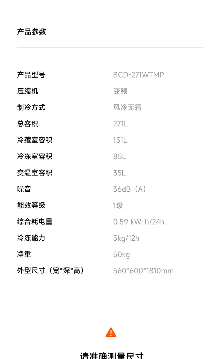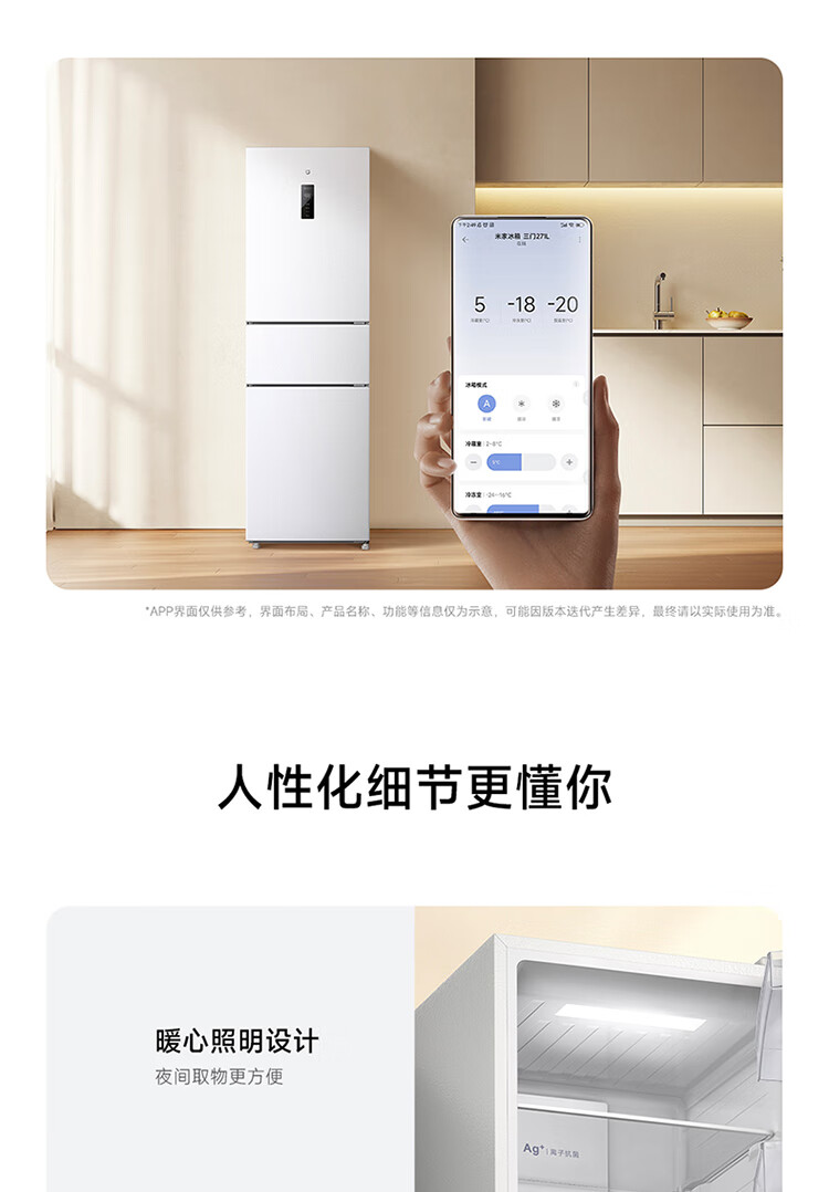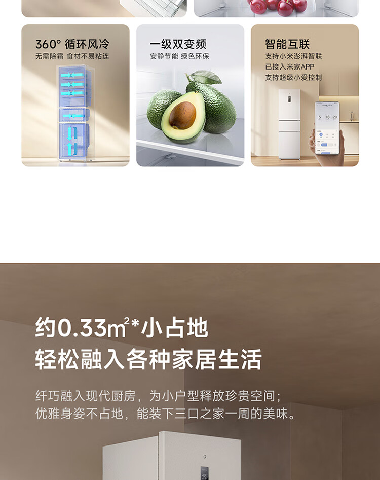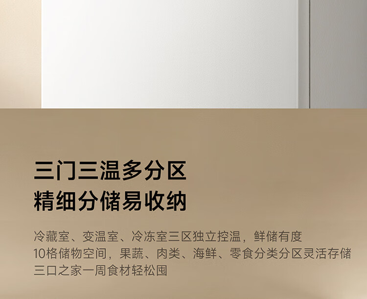 Xiaomi Mijia three-door 271L ultra-thin large capacity first-class energy efficiency inverter refrigerator BCD-271WTMP BCD-271WTMP