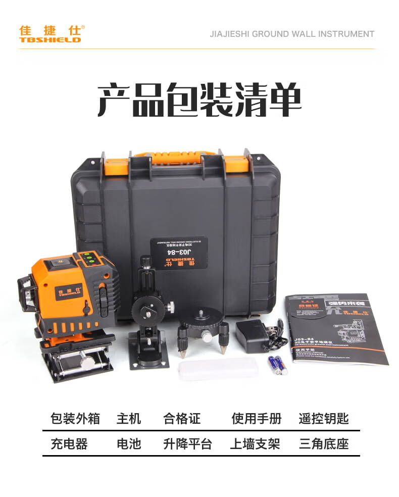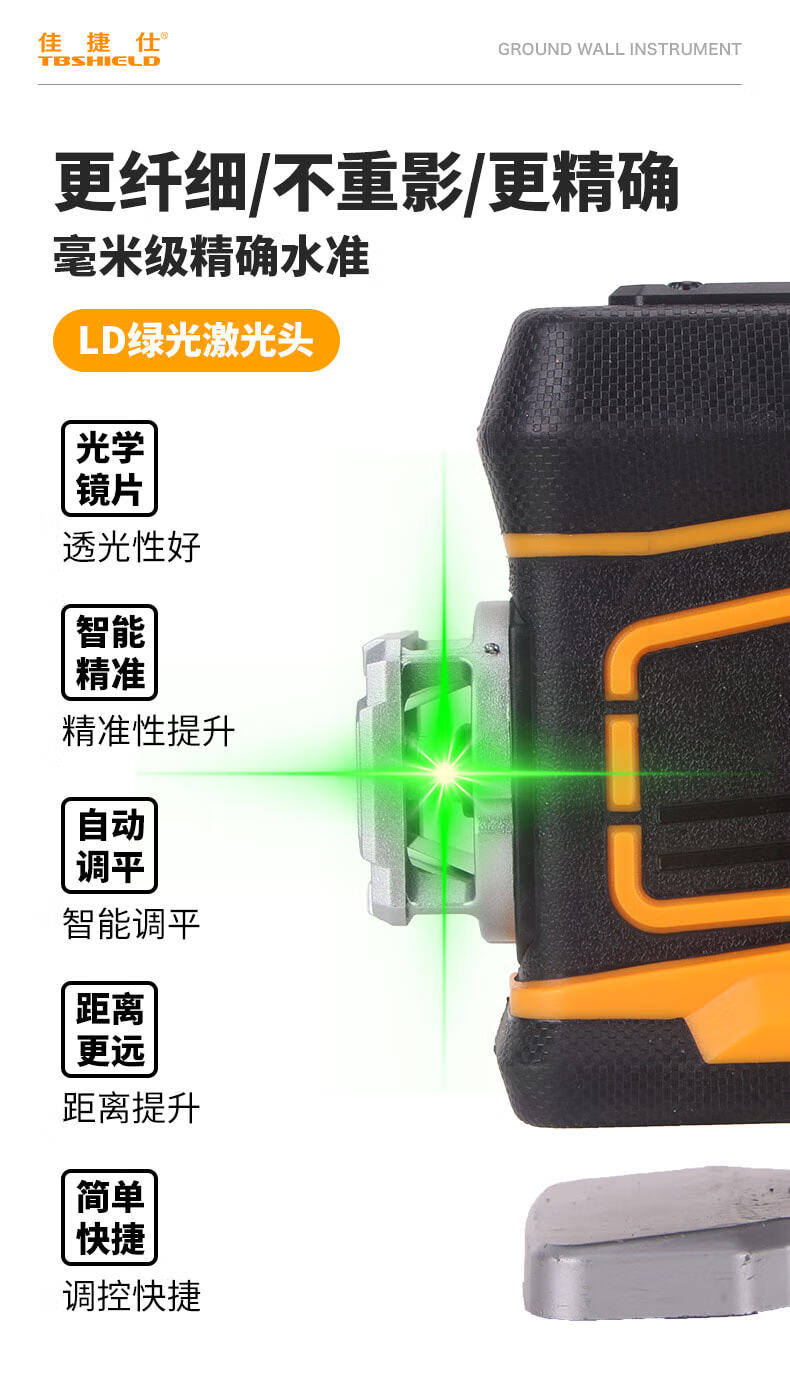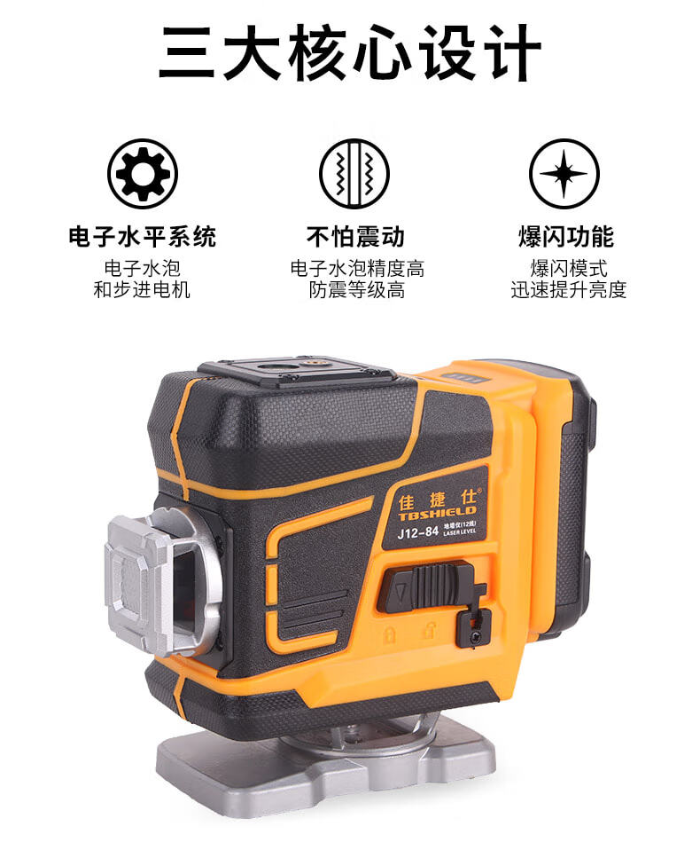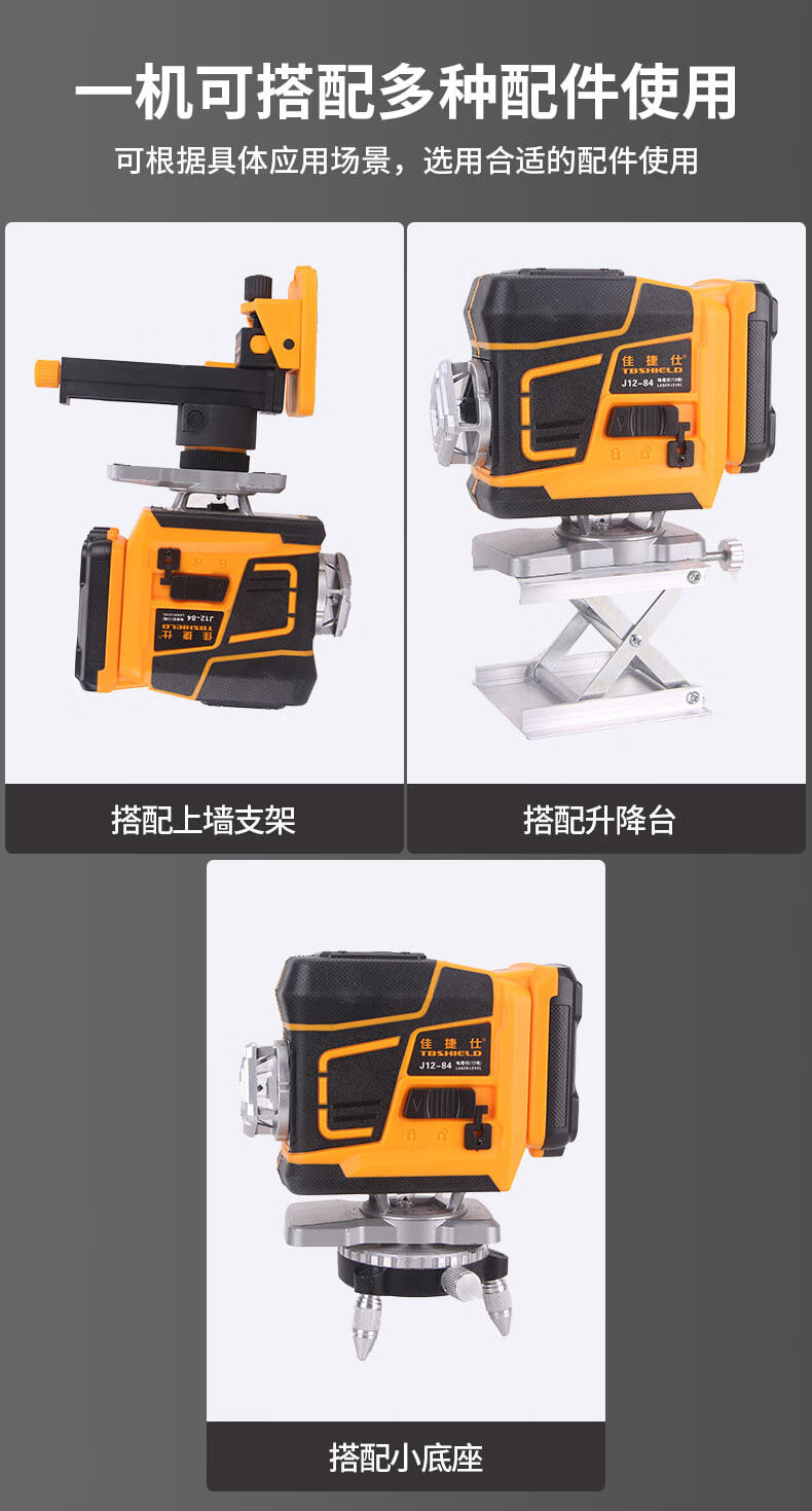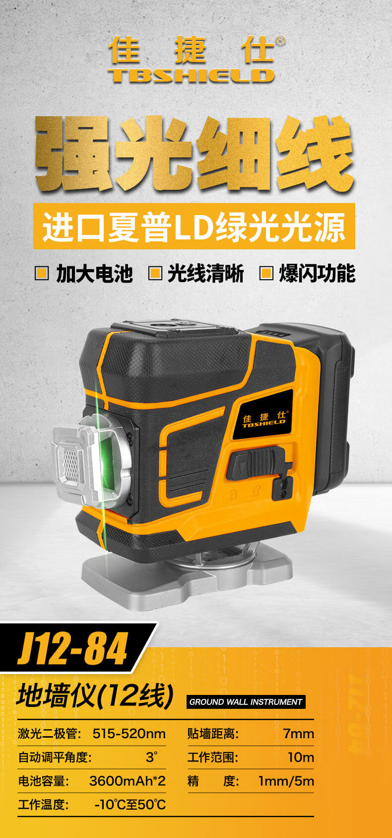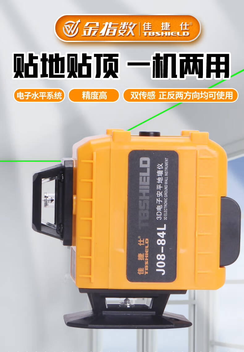 Jiajieshi 12-line green light infrared level laser wall-mounted high-precision strong light thin line automatic leveling J07-84S 12-line floor wall meter