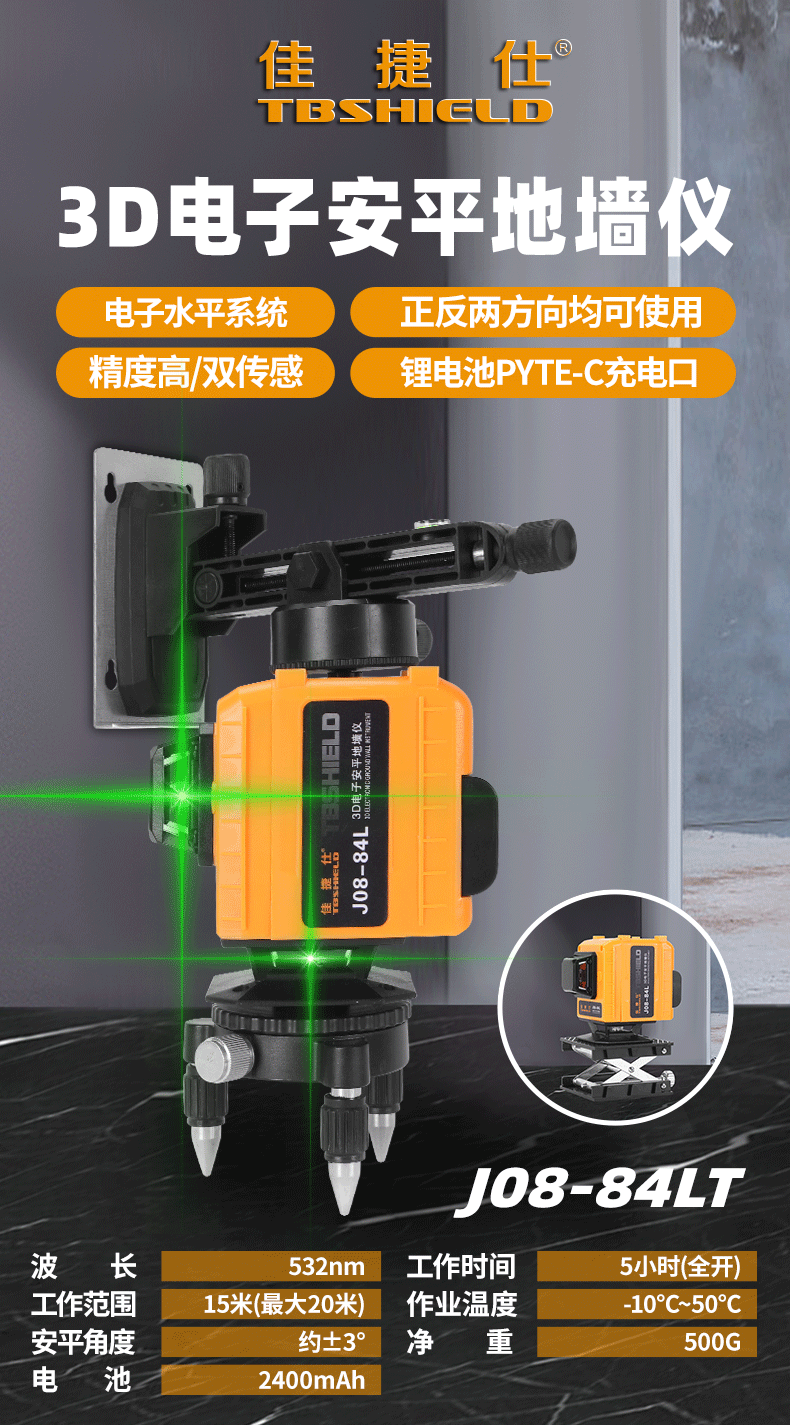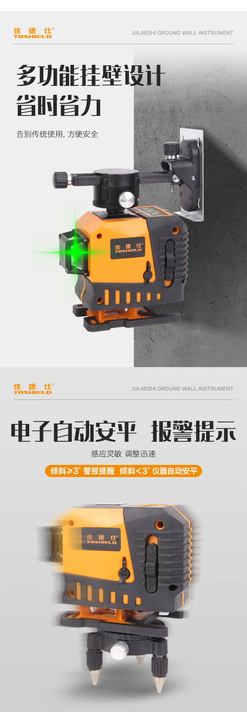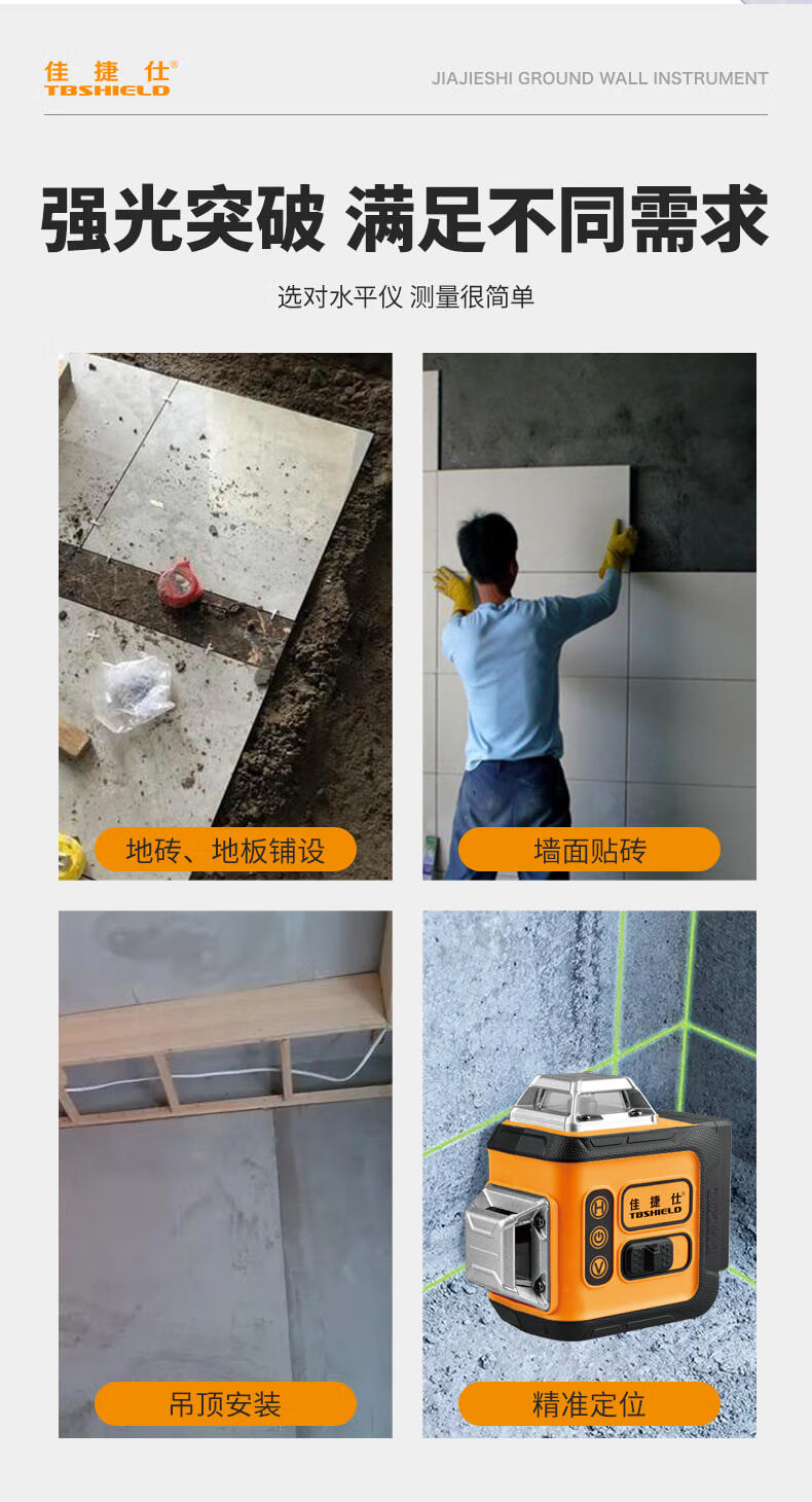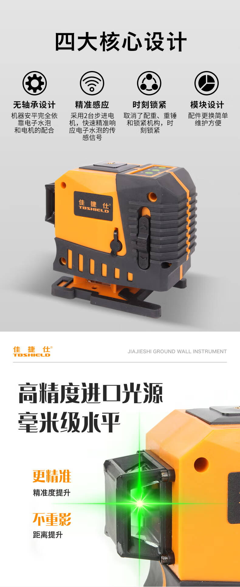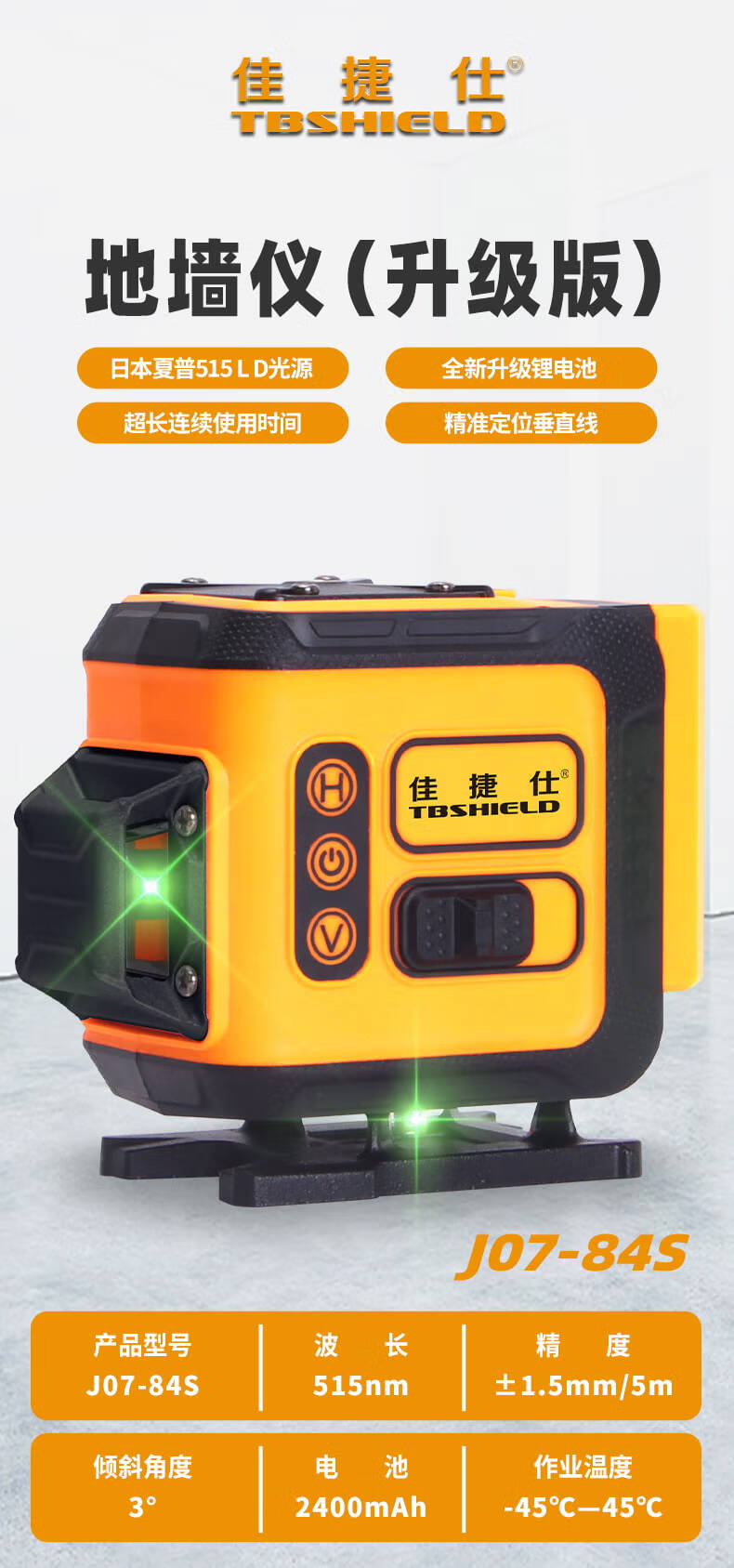 Jiajieshi 12-line green light infrared level laser wall-mounted high-precision strong light thin line automatic leveling J07-84S 12-line floor wall meter