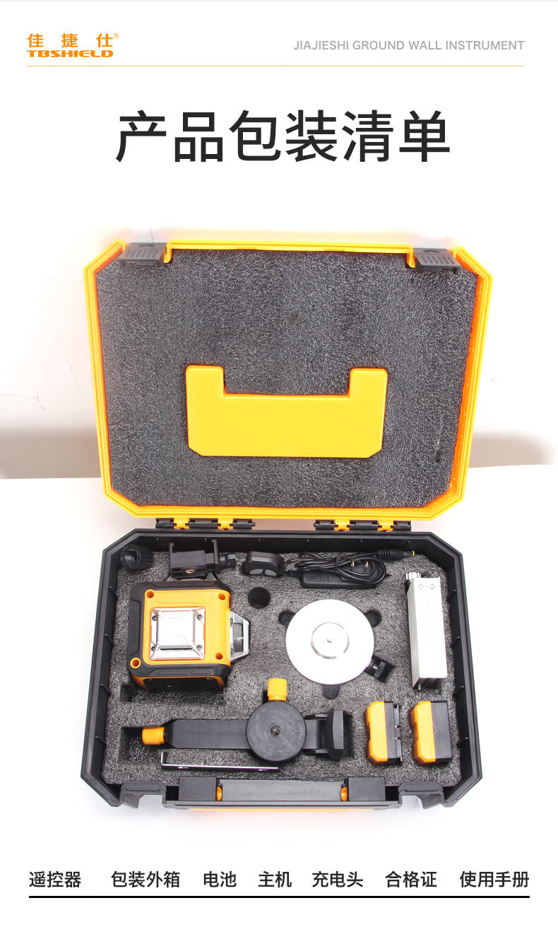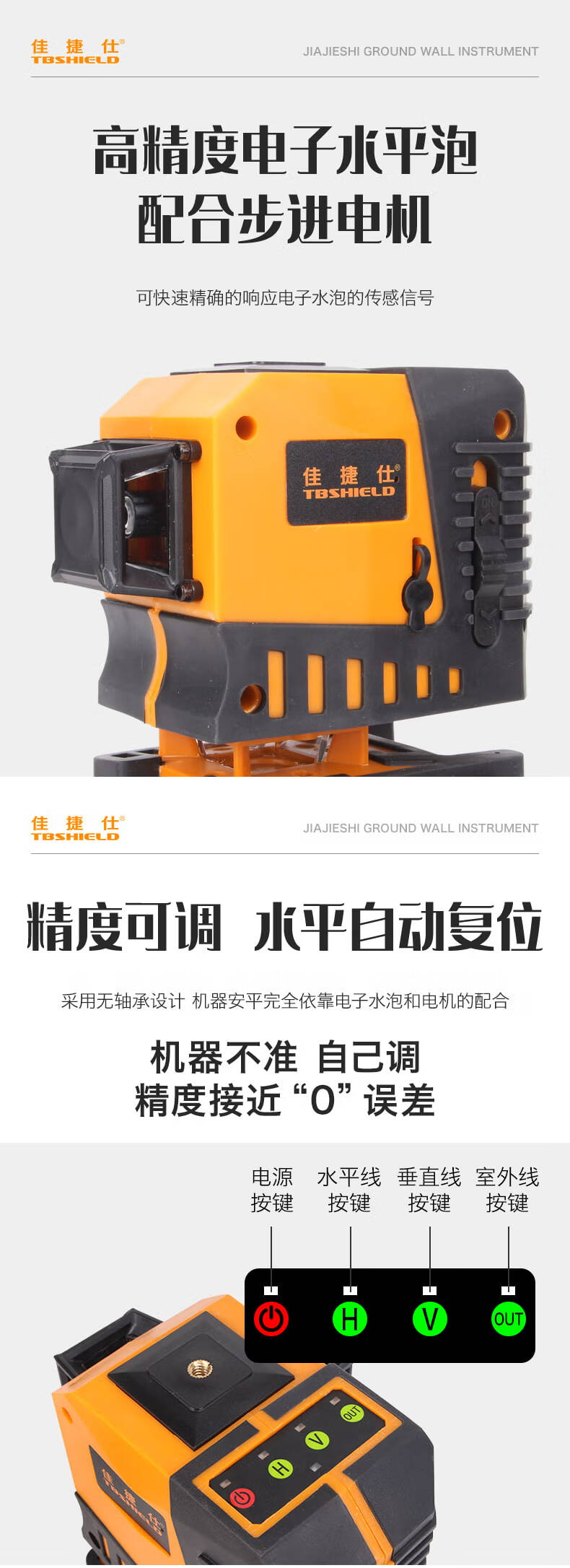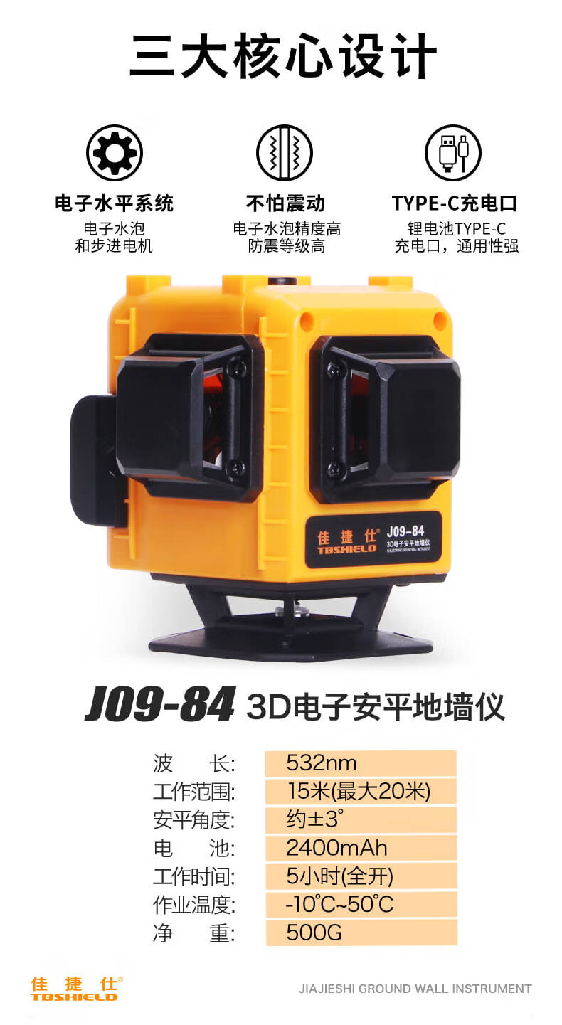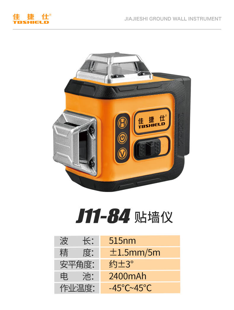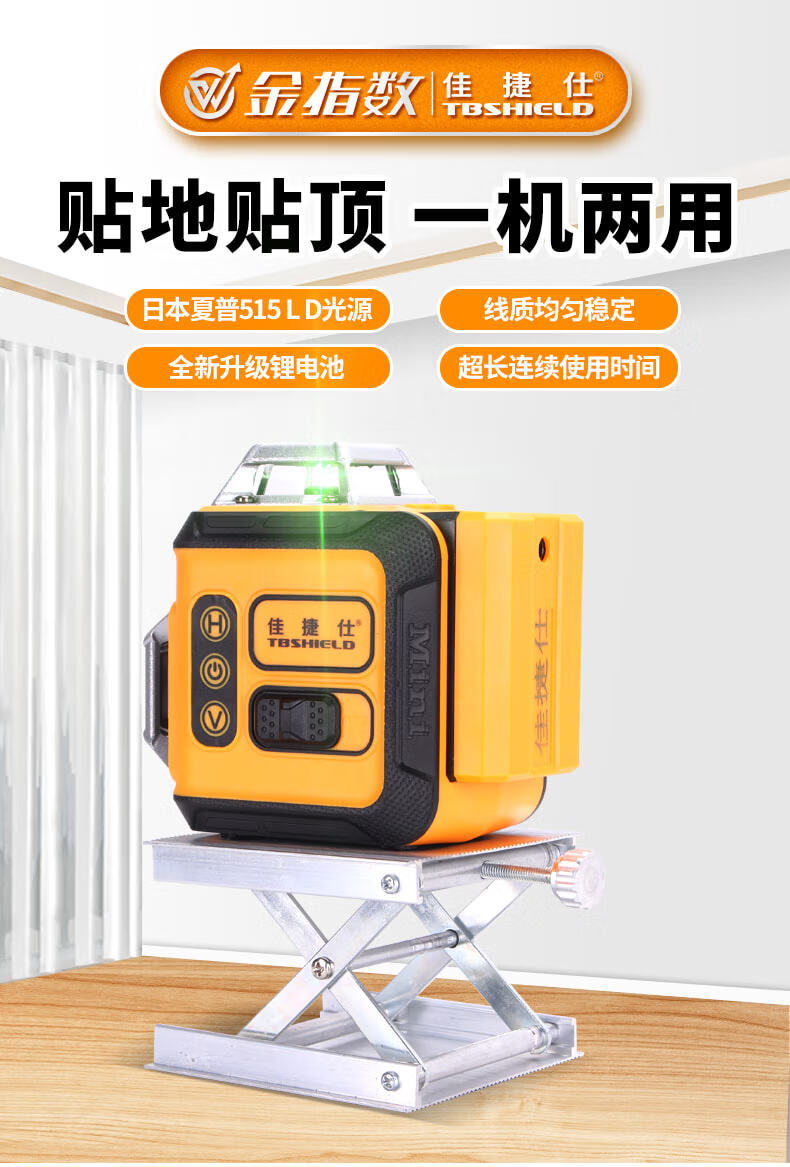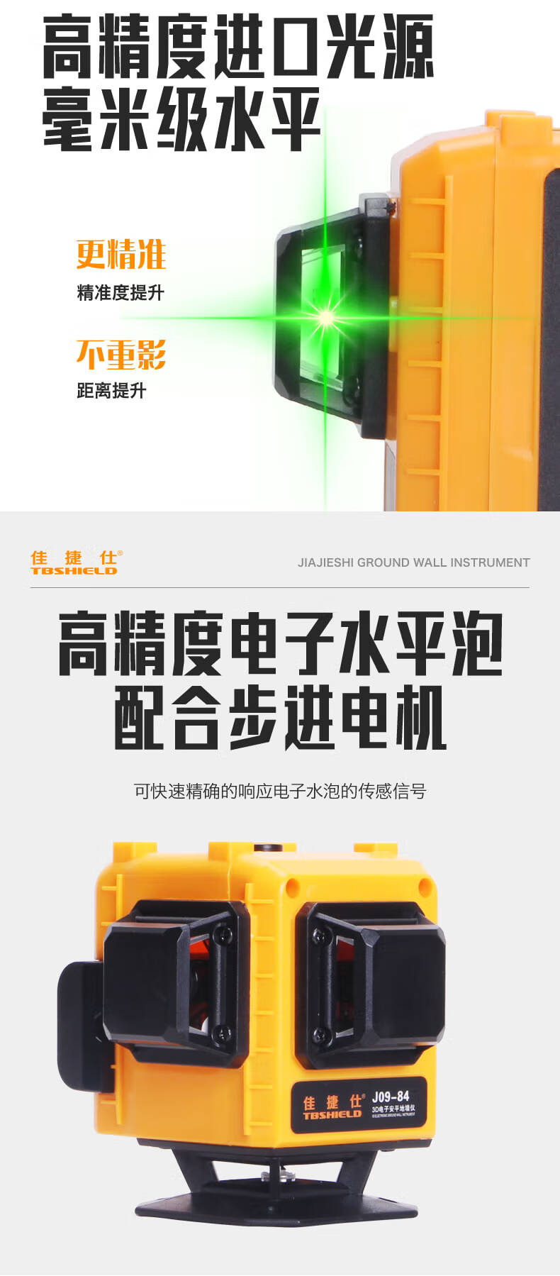 Jiajieshi 12-line green light infrared level laser wall-mounted high-precision strong light thin line automatic leveling J07-84S 12-line floor wall meter