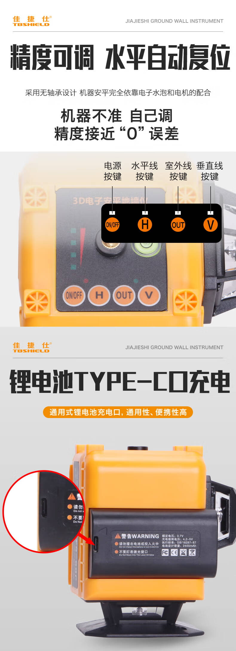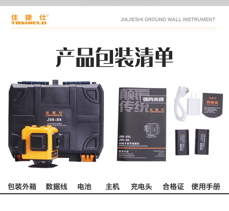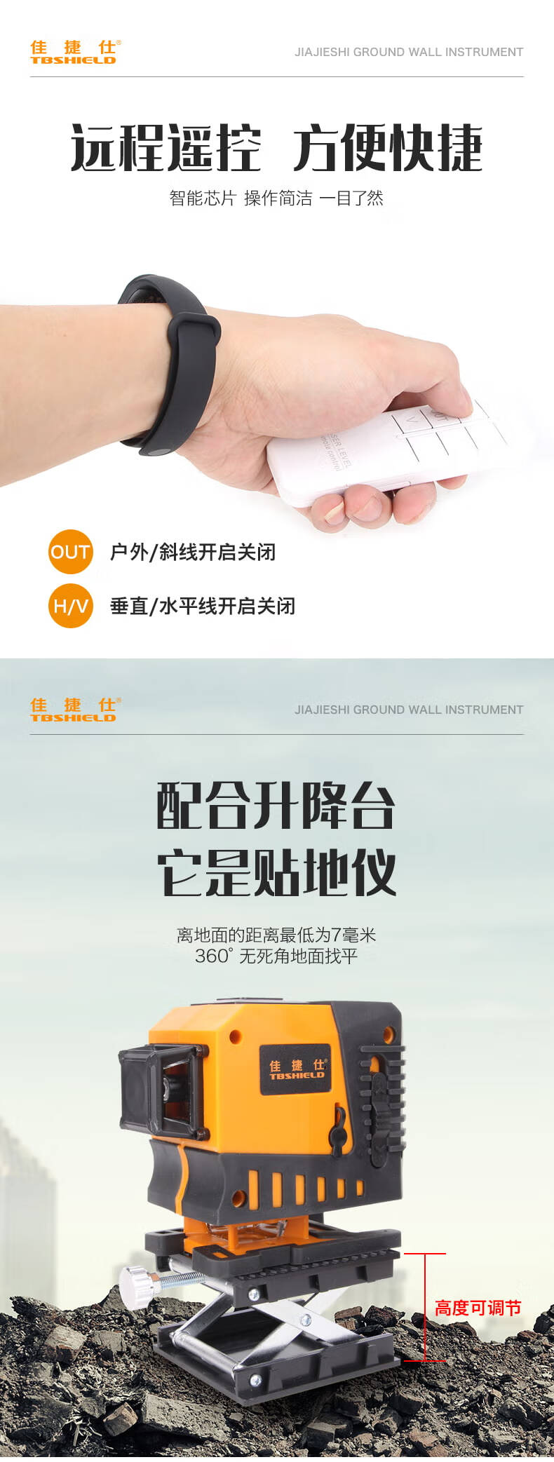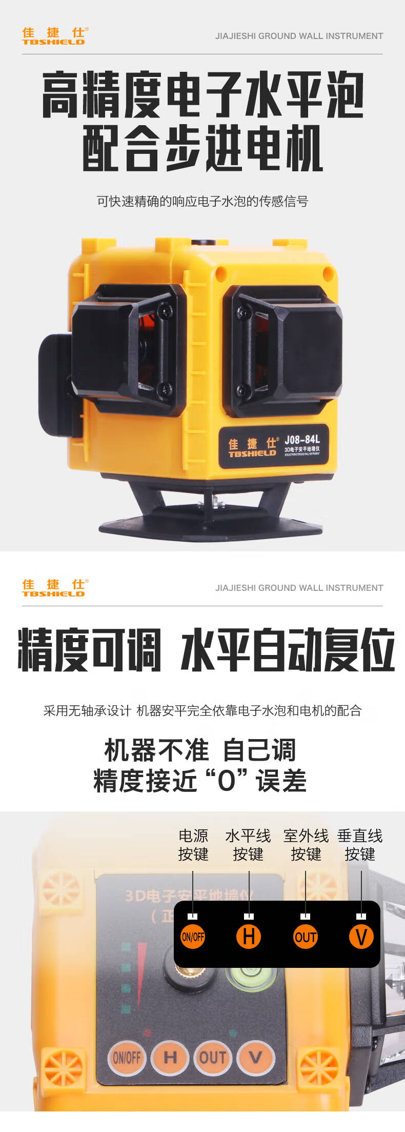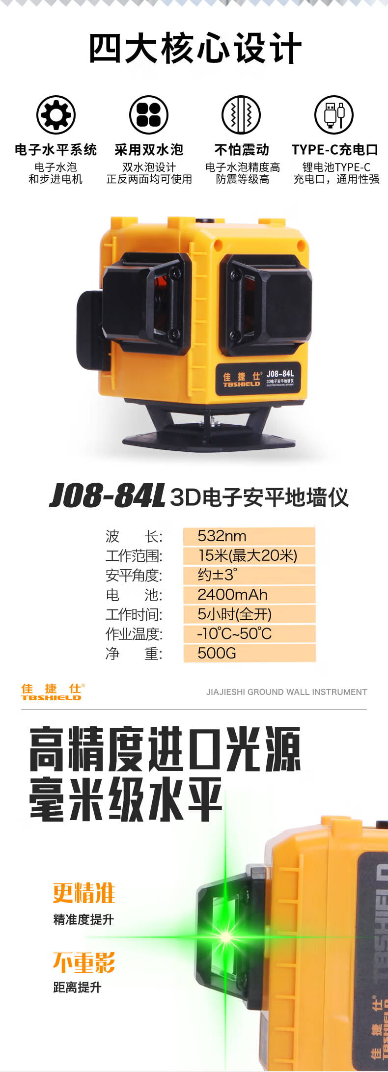 Jiajieshi 12-line green light infrared level laser wall-mounted high-precision strong light thin line automatic leveling J07-84S 12-line floor wall meter