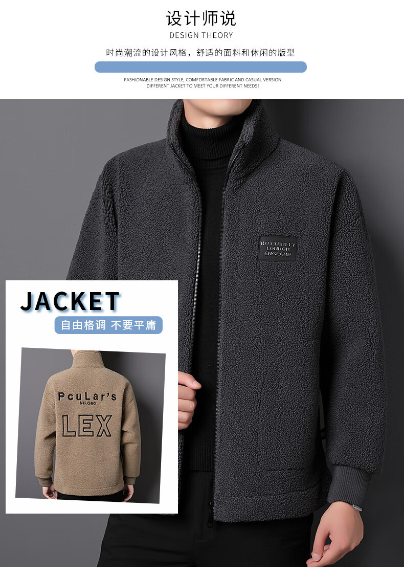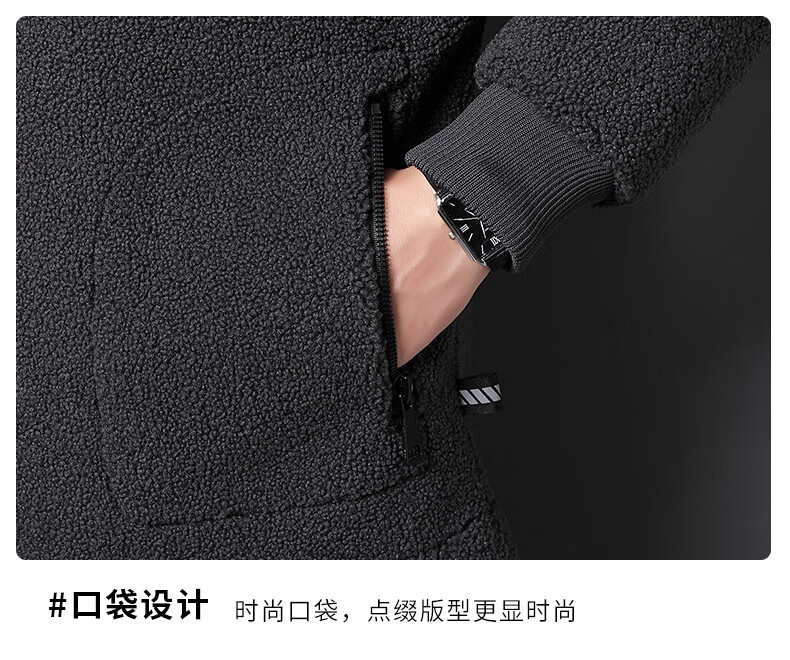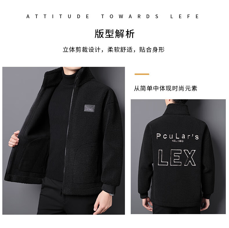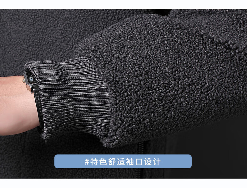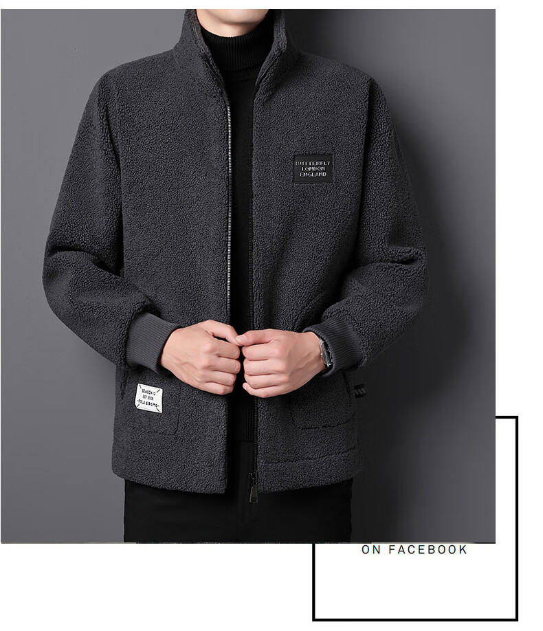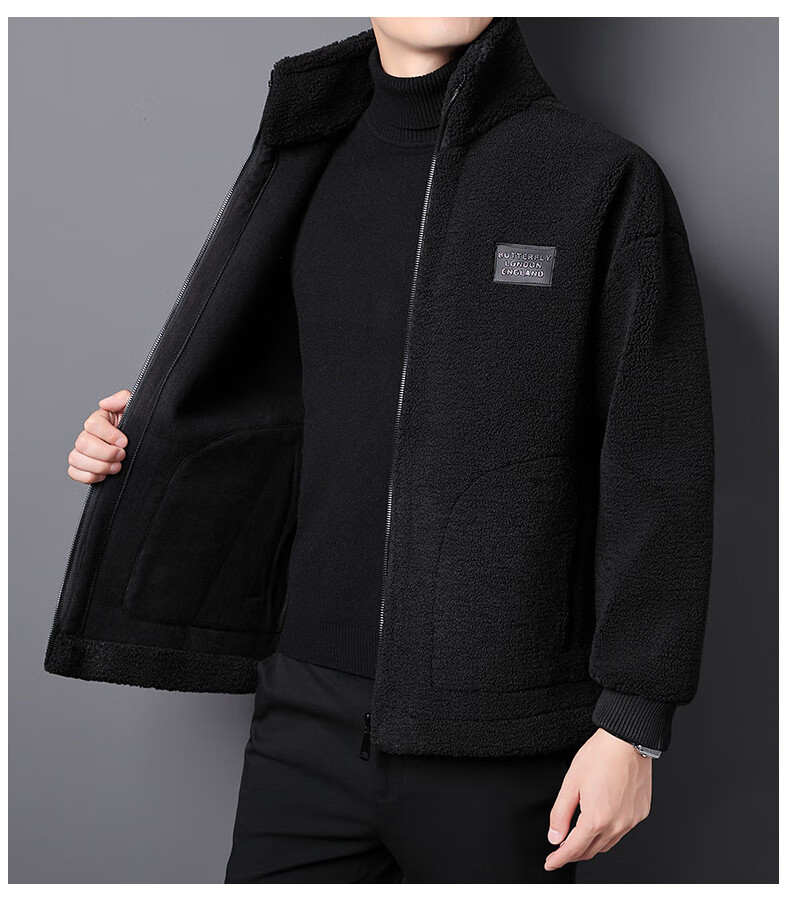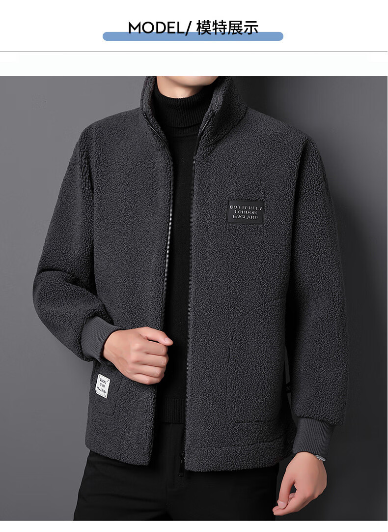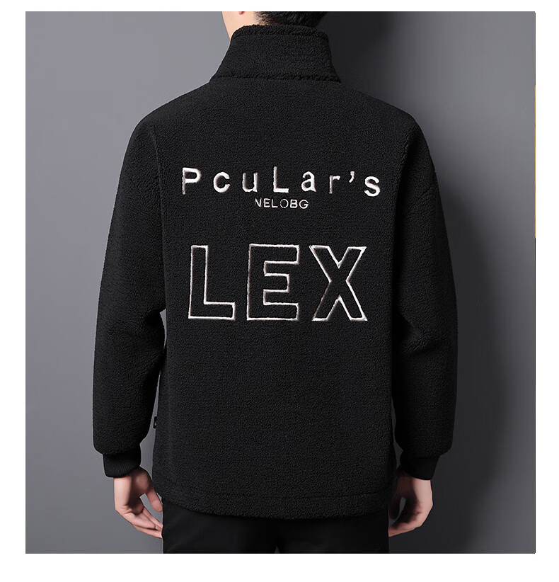 ROMON brand autumn and winter new thickened lamb velvet jacket men's trendy fat man large size warm polar fleece stand collar jacket for men dark gray with letters on the back 2XL 150-170 catties