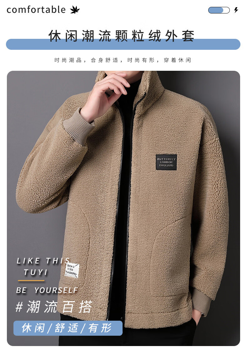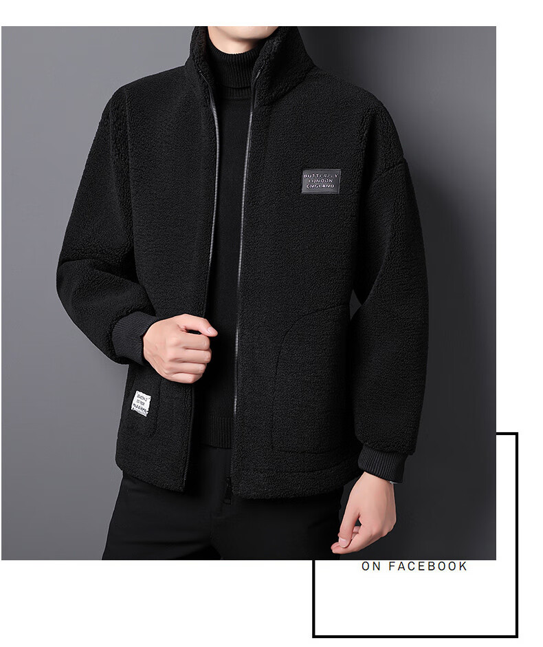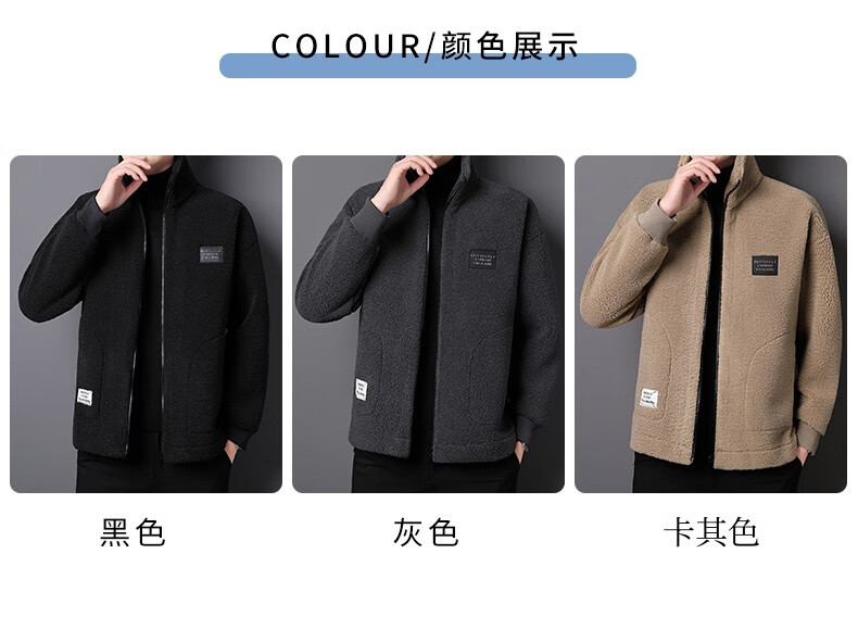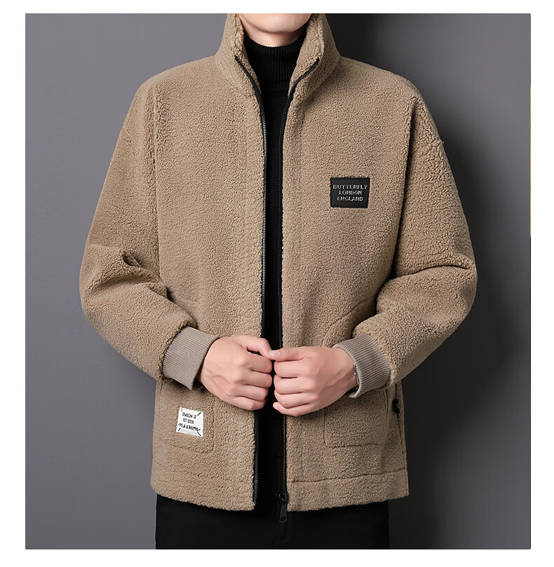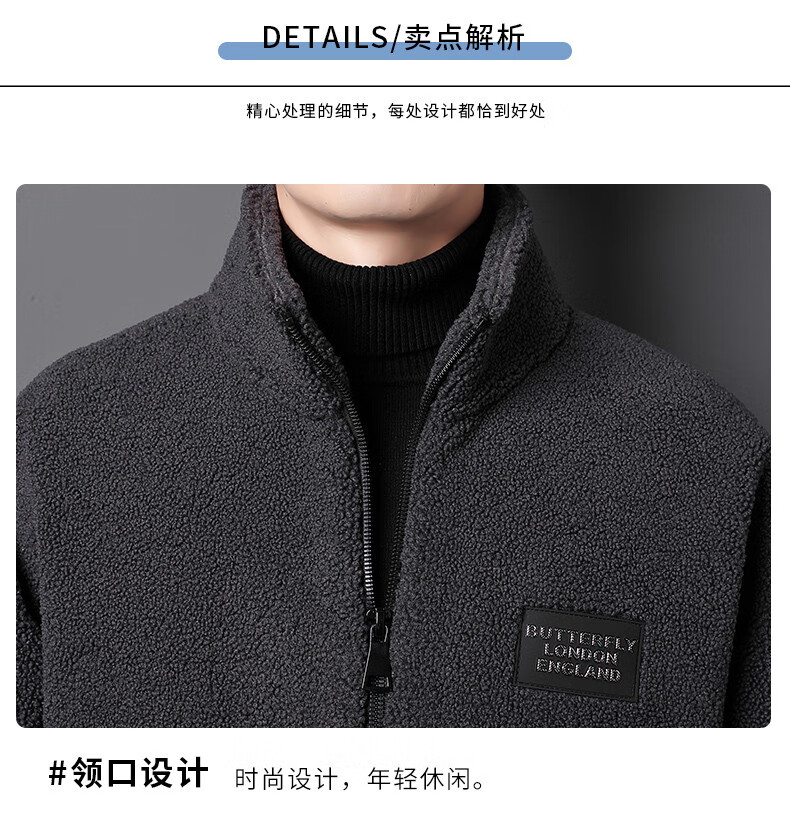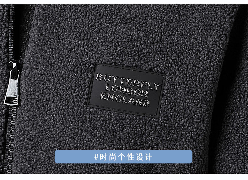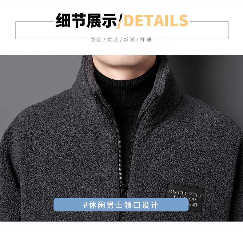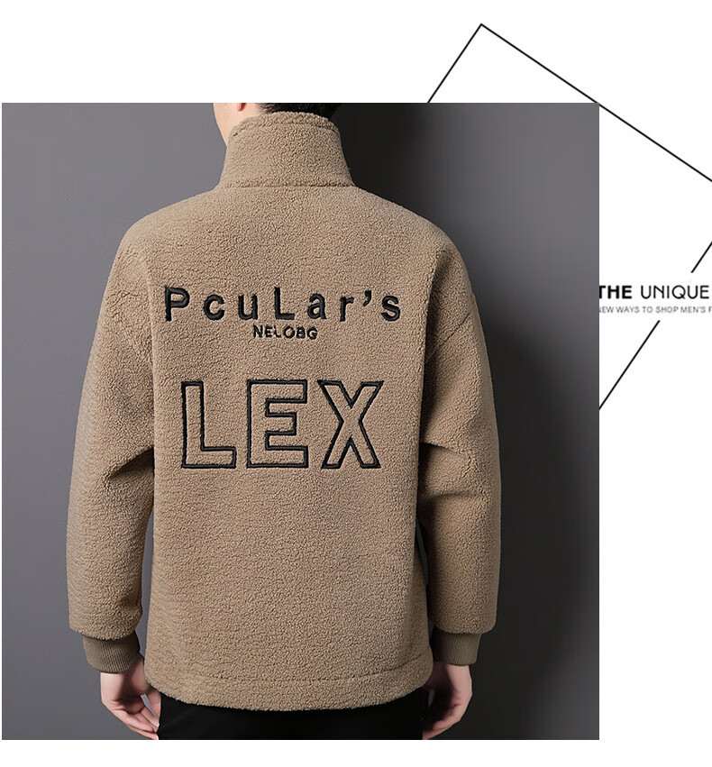 ROMON brand autumn and winter new thickened lamb velvet jacket men's trendy fat man large size warm polar fleece stand collar jacket for men dark gray with letters on the back 2XL 150-170 catties