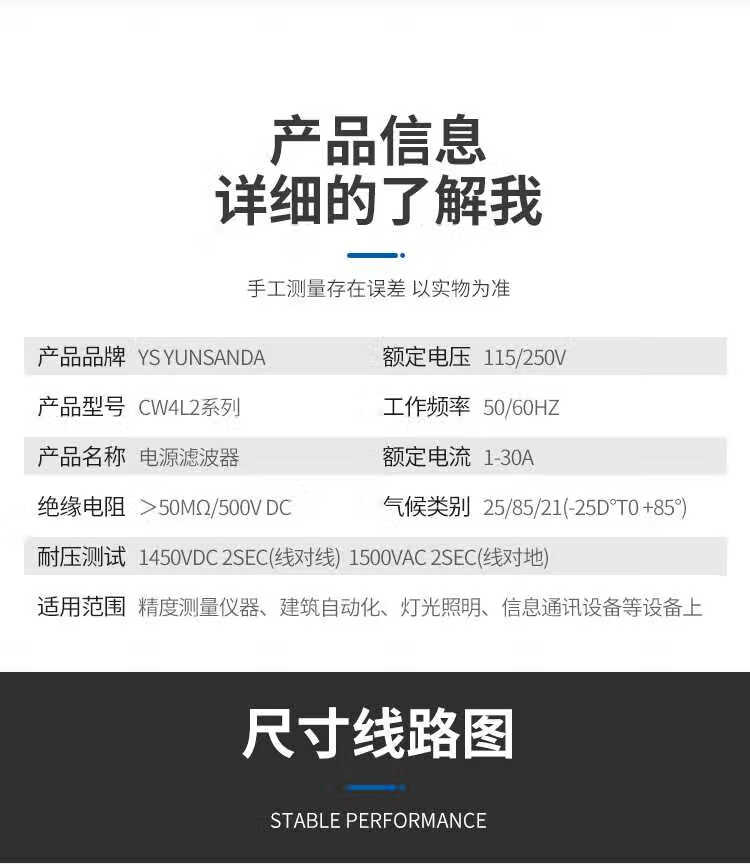 YUNSANDA power filter 220v anti-interference emi filter power purifier CW4L2-30A CW4L2-3A-S (005) terminal block type
