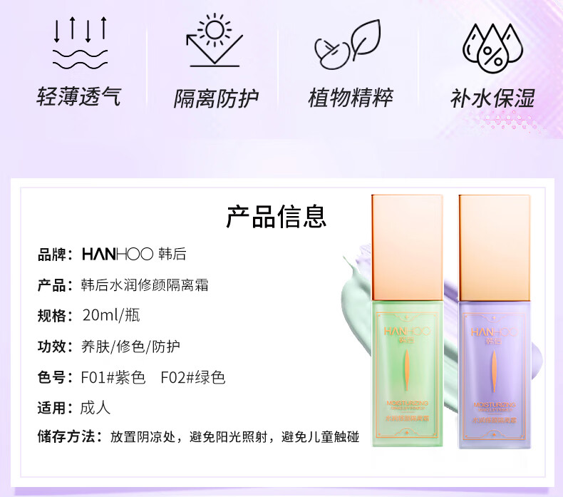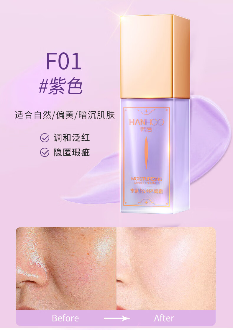 Hanhou Moisturizing and Repairing Isolation Cream Modify Skin Color Primer Hydrating Moisturizing Concealer Cream Isolation Gift Purple 20g + Overnight Mask