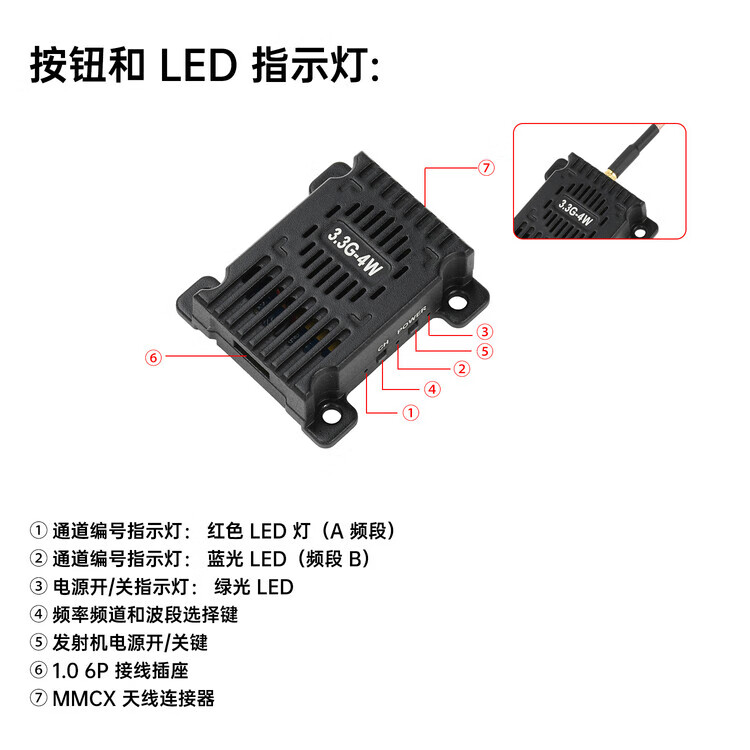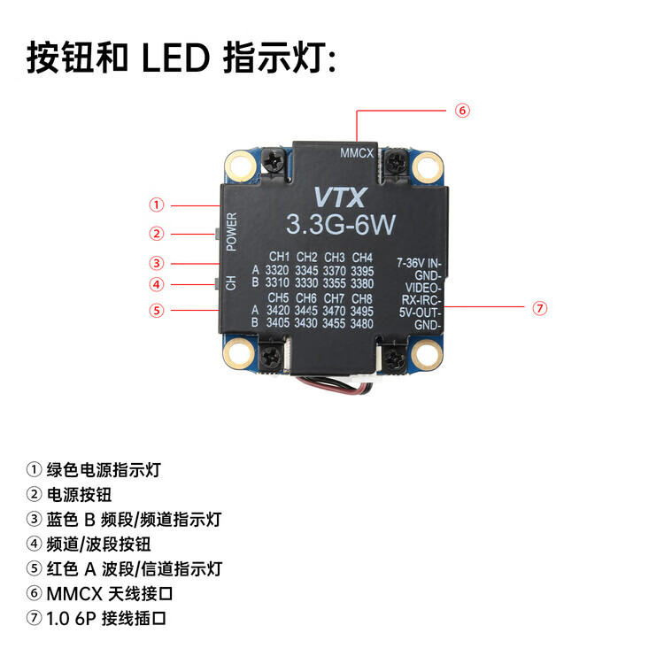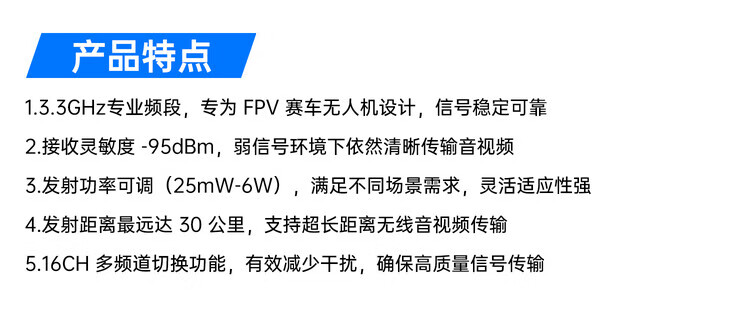 4W 6W wireless audio and video transmitter and receiver 3.3GHzVTX/VRX analog video transmission module 16CH VTX-6W