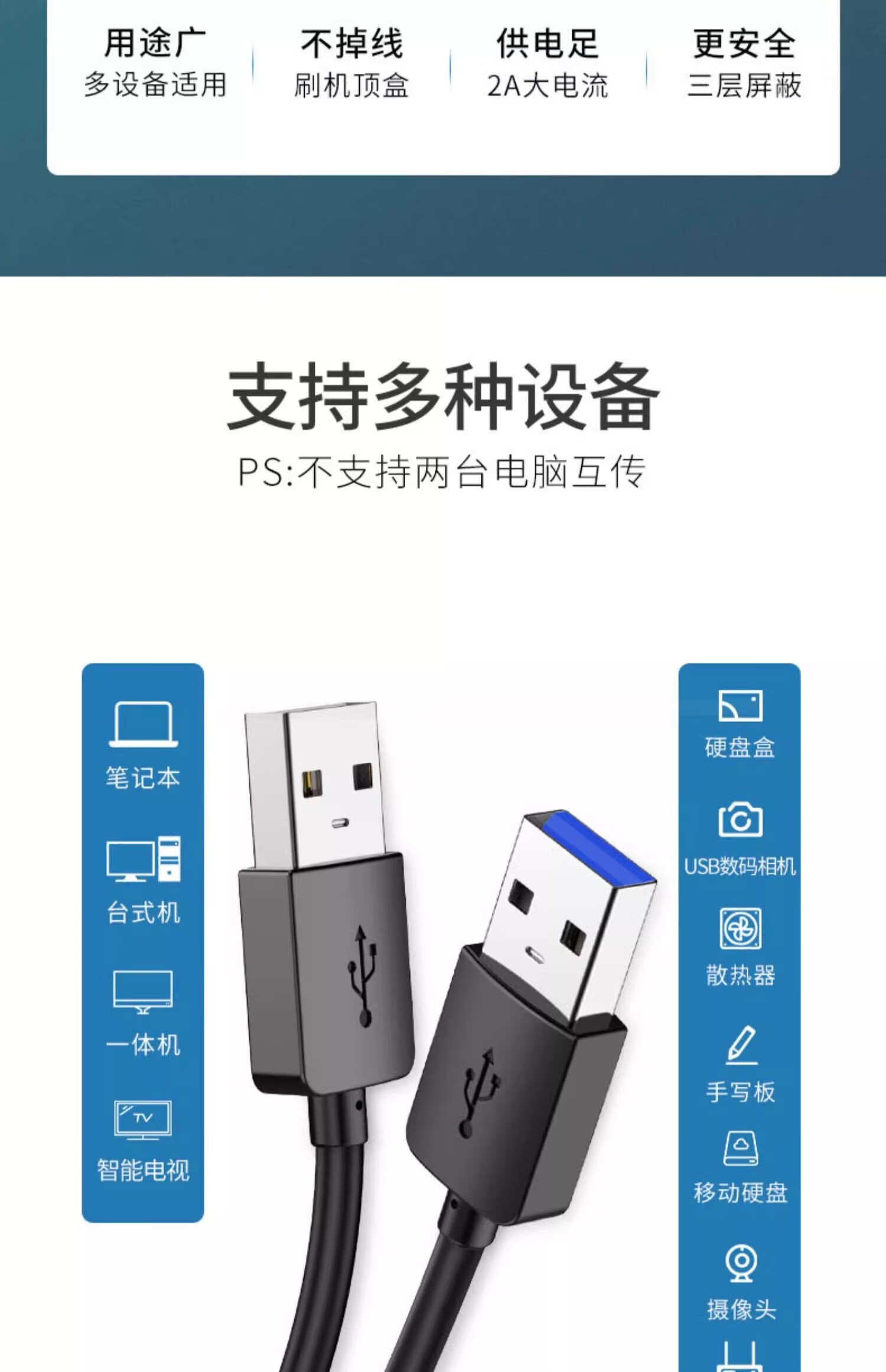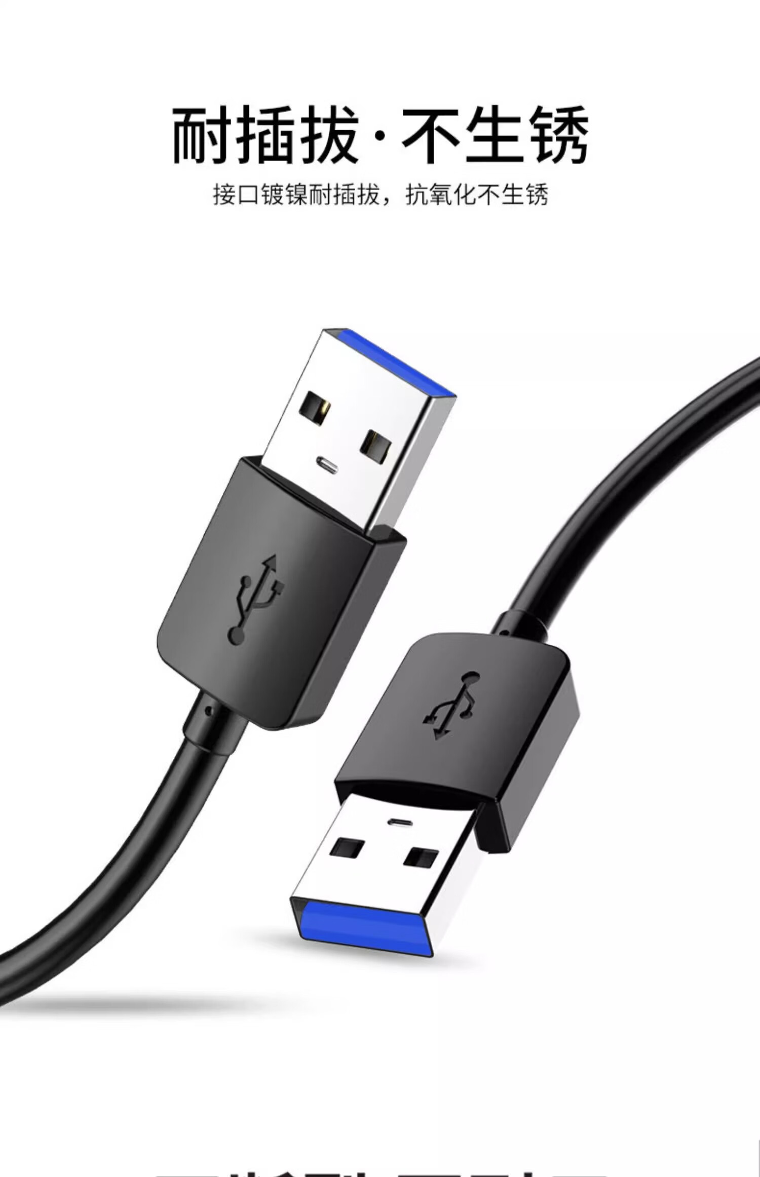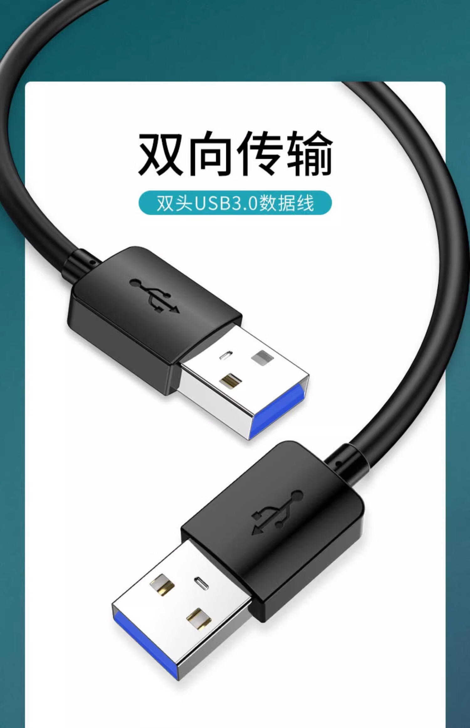 Interesting appliance double-ended USB data cable male-to-male radiator double-male notebook cable adapter interface computer transmission charging cable two-way extension fast dual USB 1 meter USB2.0 1 pack classic black