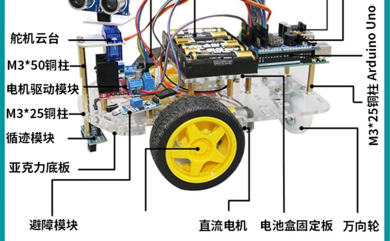 Yue Changsheng arduino smart car tracking obstacle avoidance remote control bluetooth robot kit graphical programming u without Italian UNO board B package-infrared obstacle avoidance
