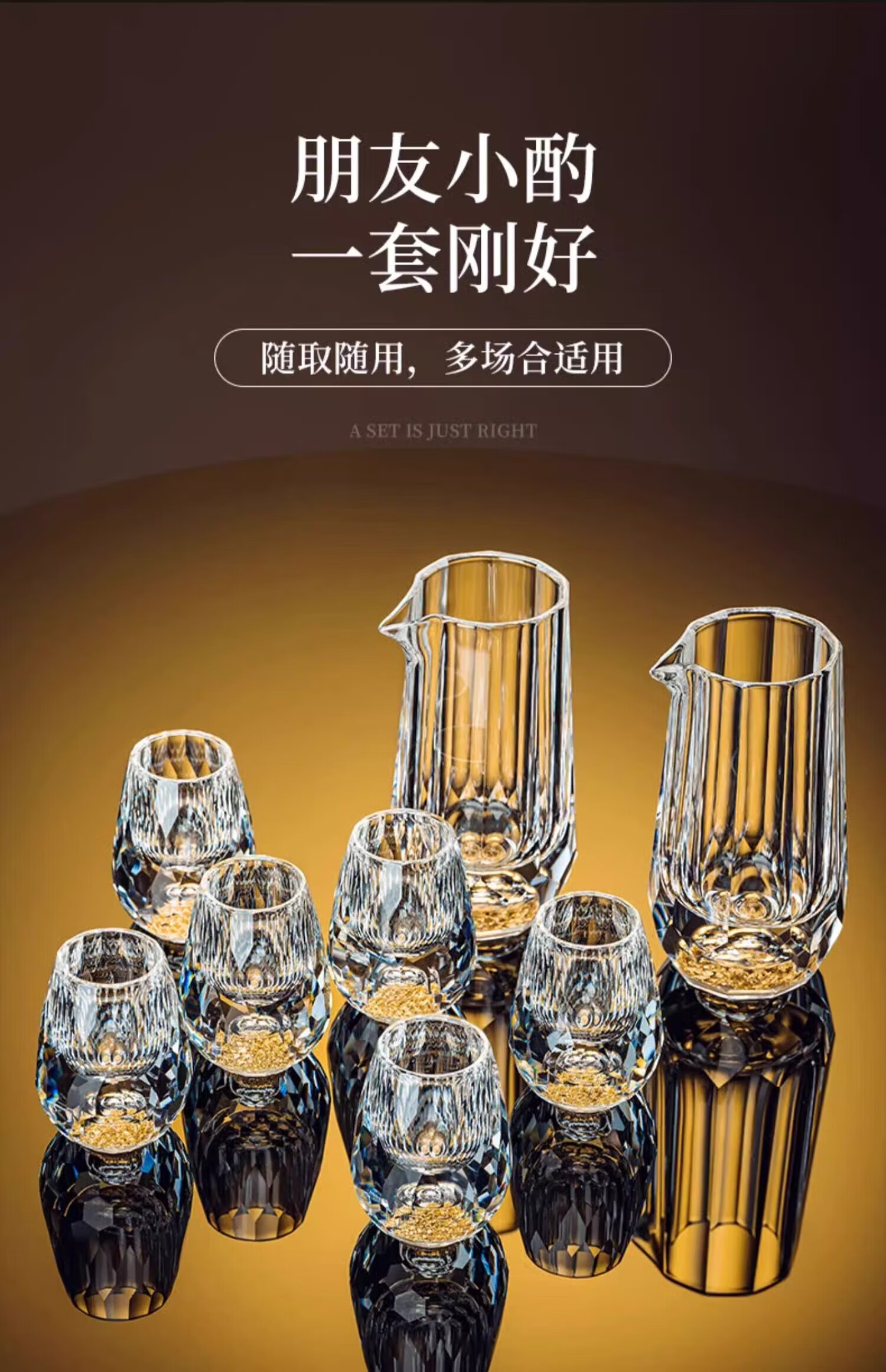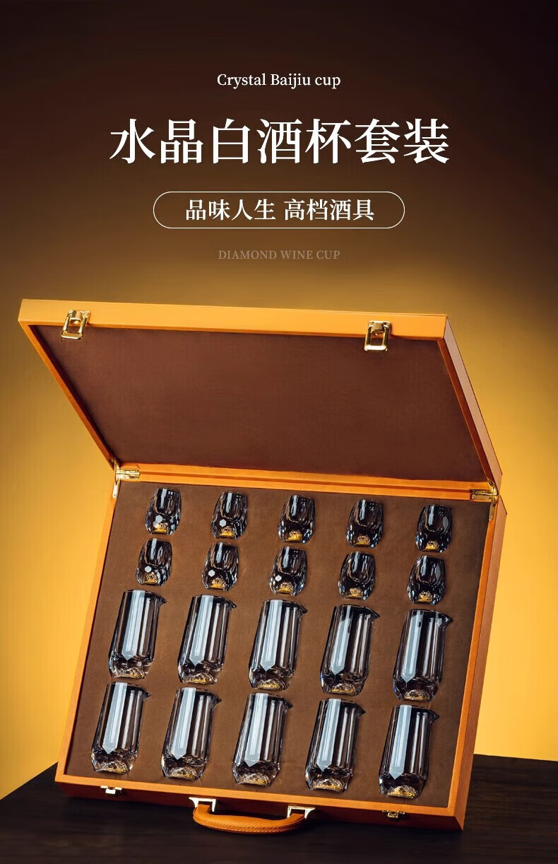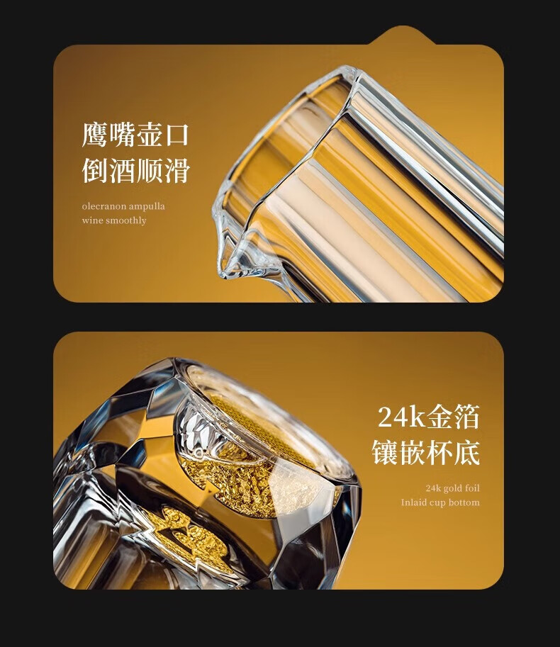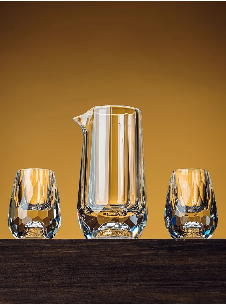 Scybe Gold Foil Crystal Glass White Wine Cup Set Home Chinese-style Small Wine Cup Two-Liang Wine Set Orange Box 6+6 Gold Foil Cup + Gold Foil Pot