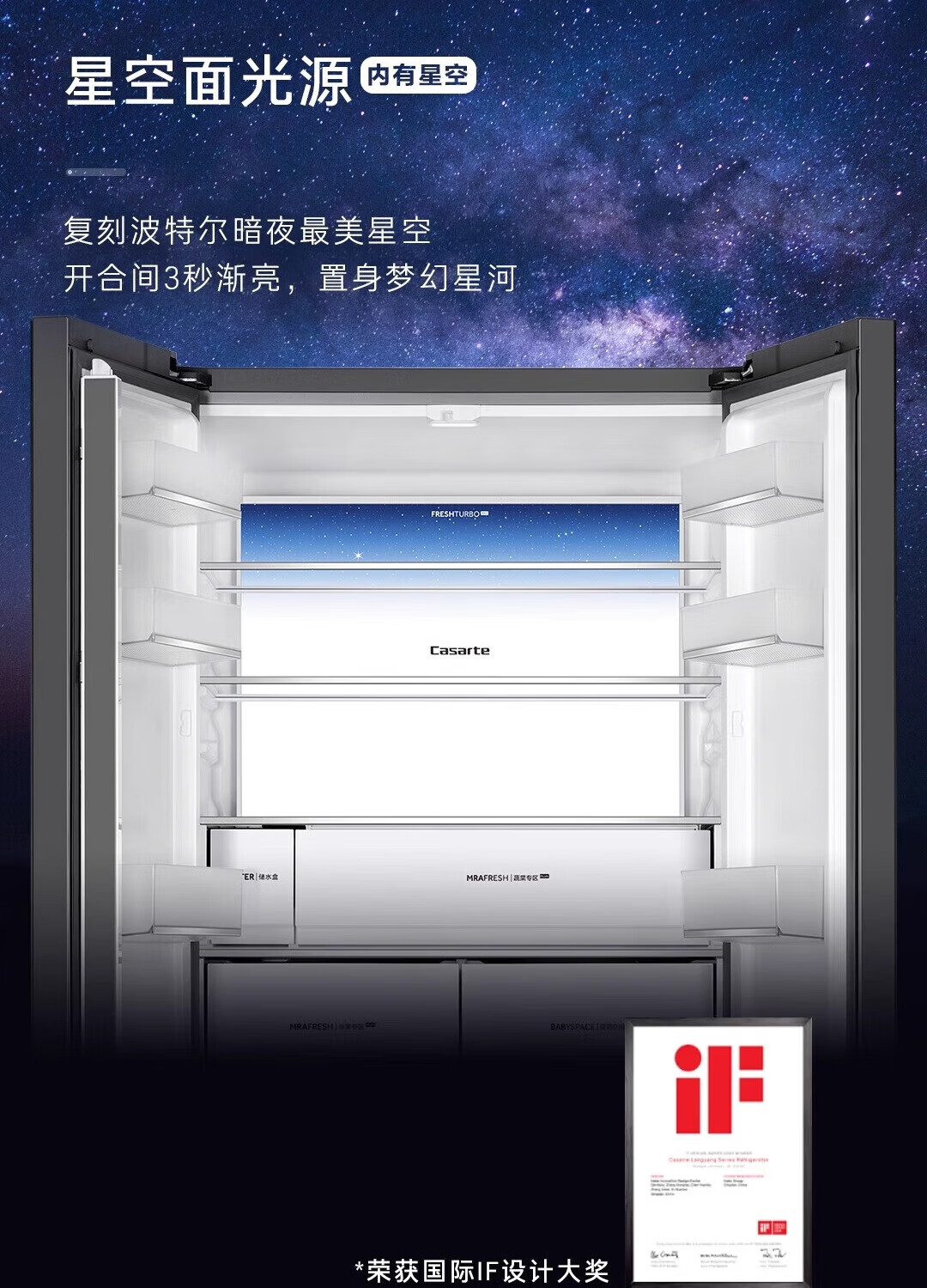 Casarte Languang Refrigerator Star Edition 521 liters fully automatic ice making ultra-thin zero-embedded dual system cross four-door refrigerator 521 liters + 10-year extended warranty card for the entire machine