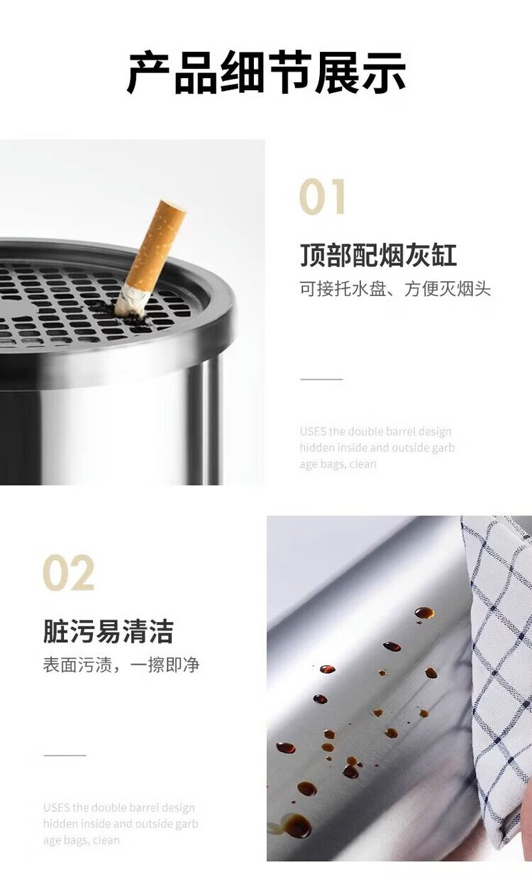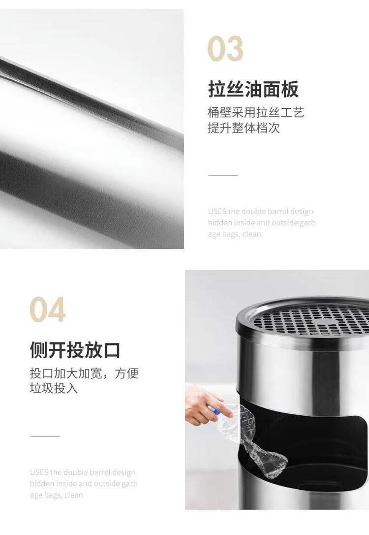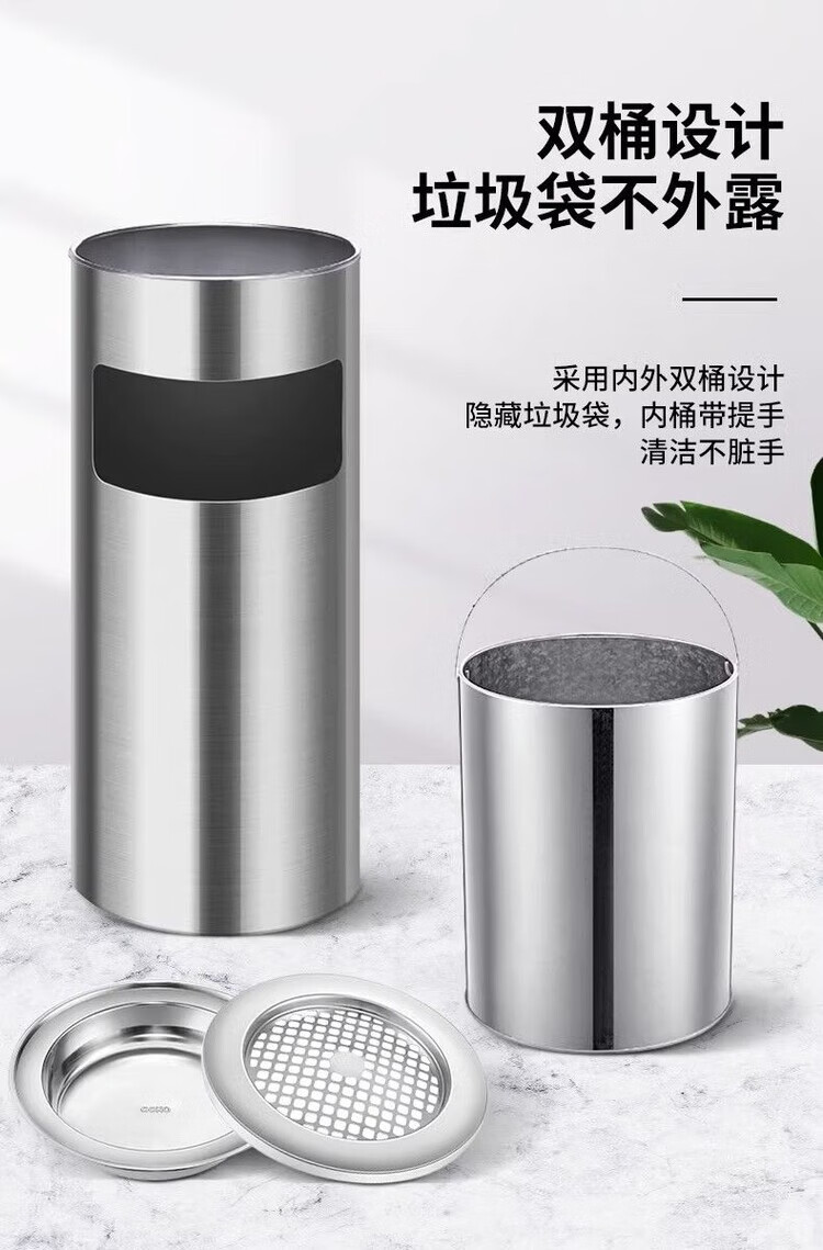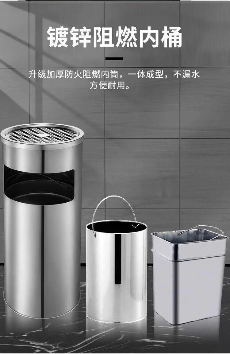 Trash can liner outdoor stainless steel iron inner barrel peel box square round galvanized sheet storage accessories square stainless steel tray + mesh cover