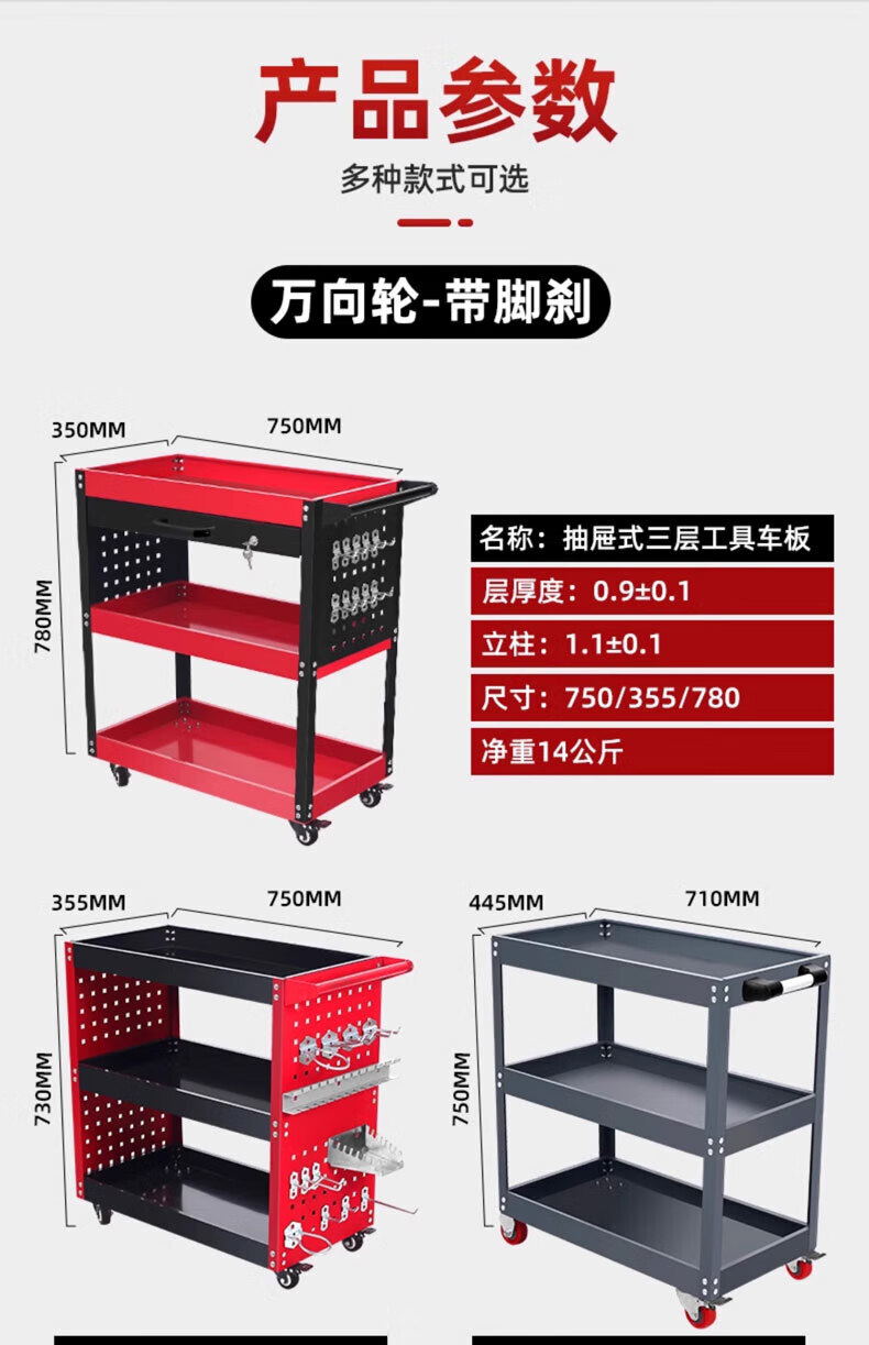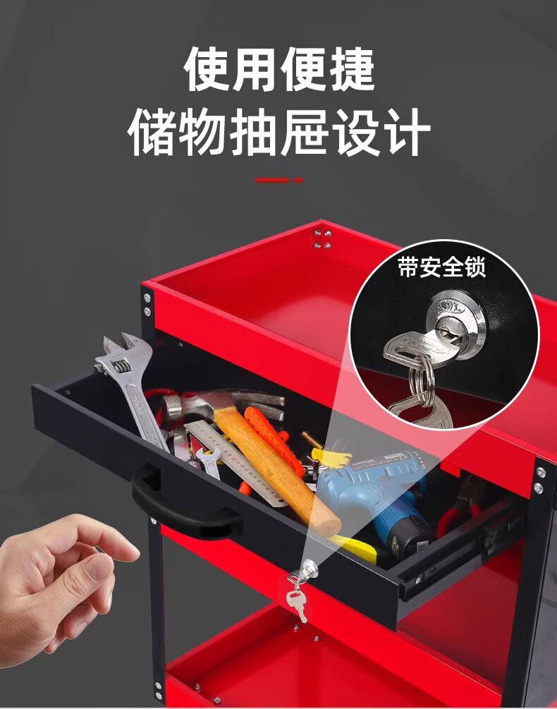 Mi Lan Tool Cart Auto Repair Drawer-Type Multi-Function Workshop Repair Three-Layer Trolley Mobile Repair Car Repair Thickened Storage Gray Thickened Model + Screwdriver Holder