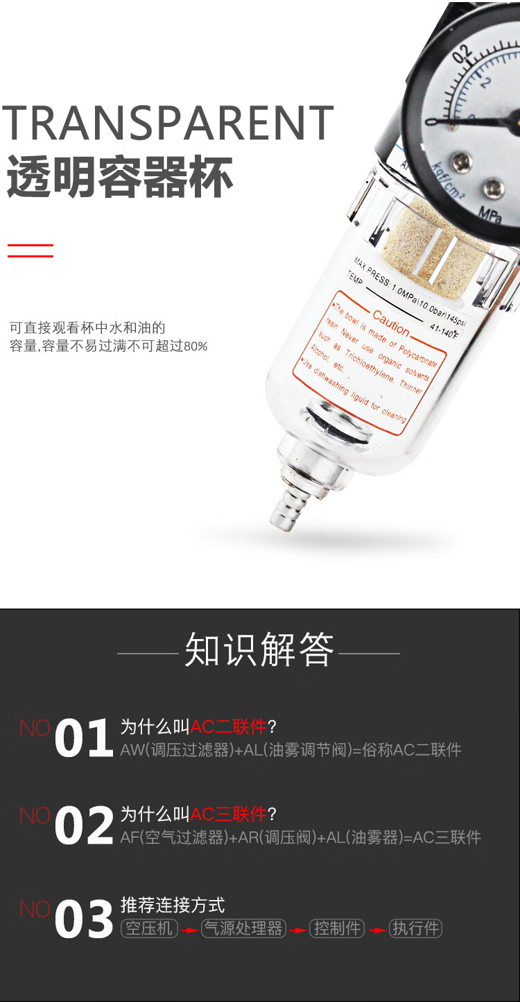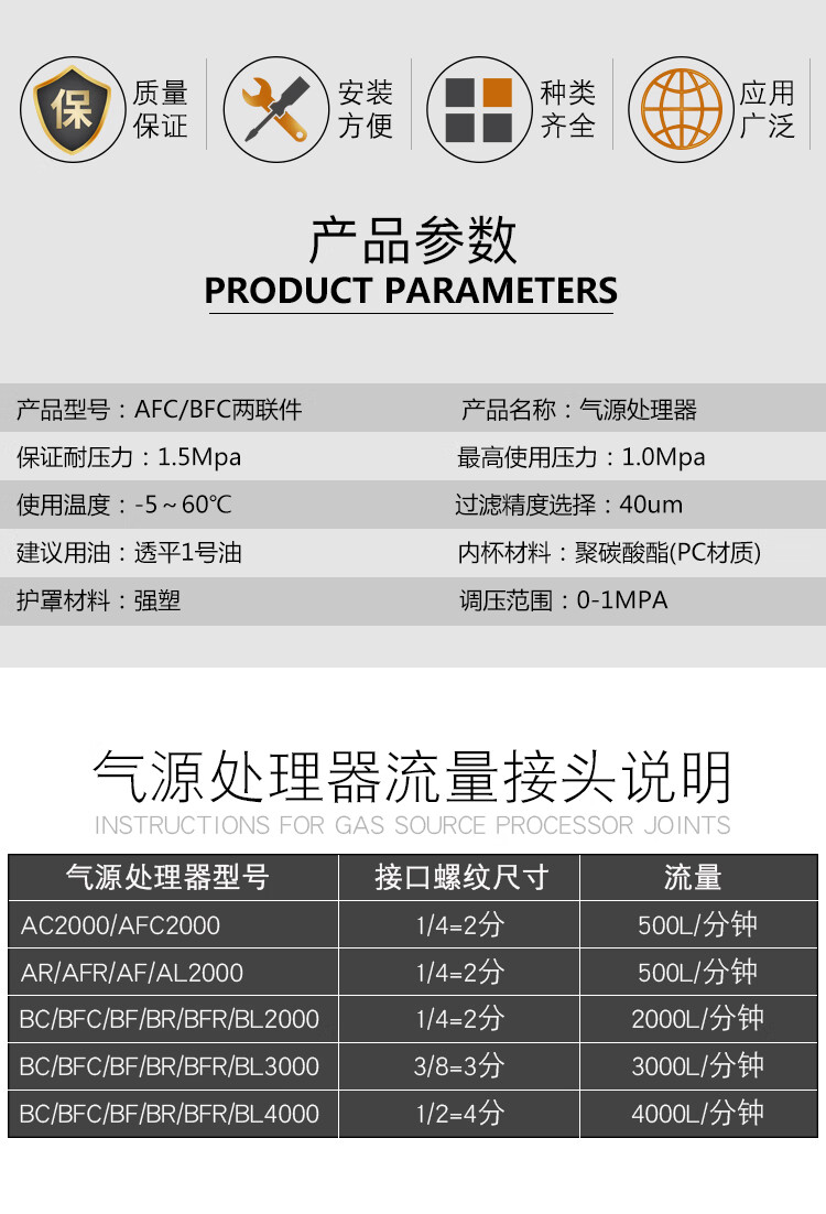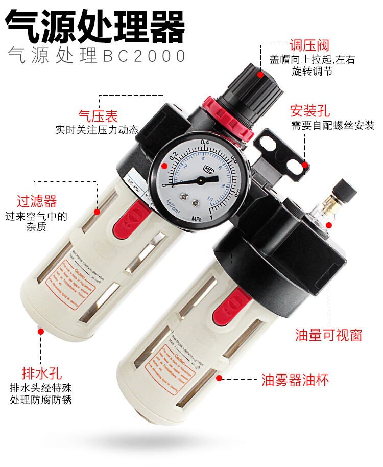 Yuechang air pump air source processor BFC2000/3000/4000 air compressor air oil and water separation and pressure regulation BFC2000 with table 2 points interface
