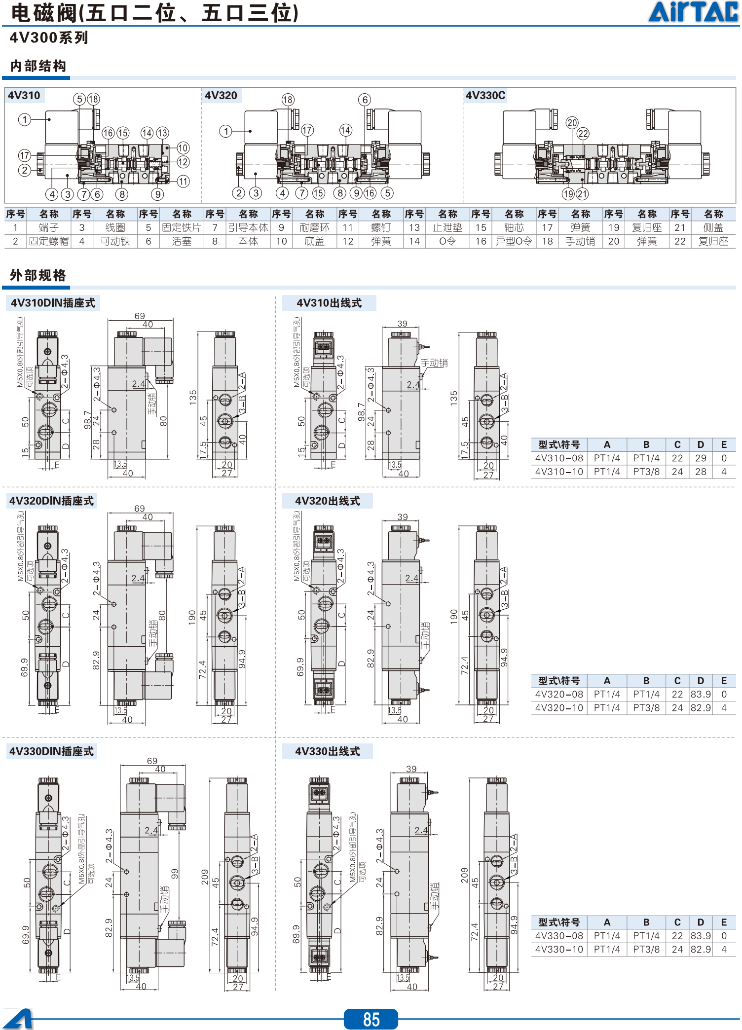 Yue Changsheng Yade passenger pneumatic solenoid valve 4V120-06 4V220-08 4V320-10 double coil cylinder replacement 4V31010A
