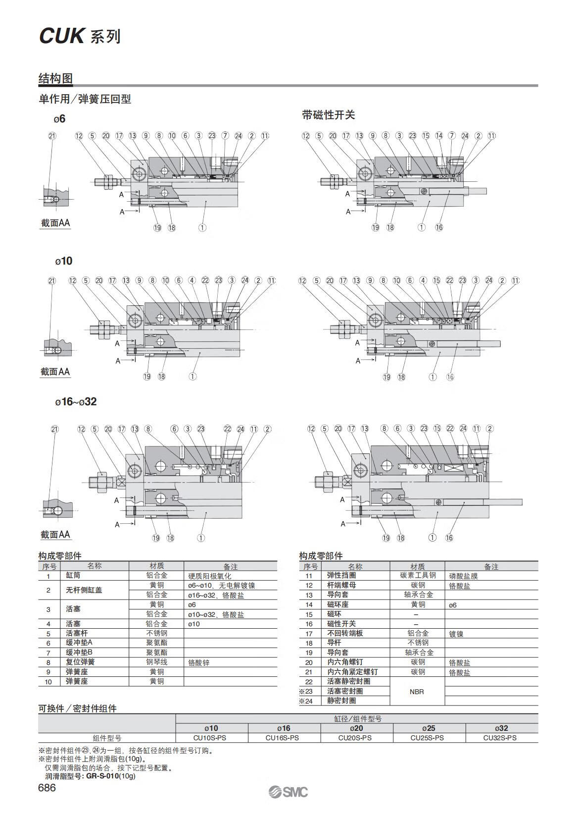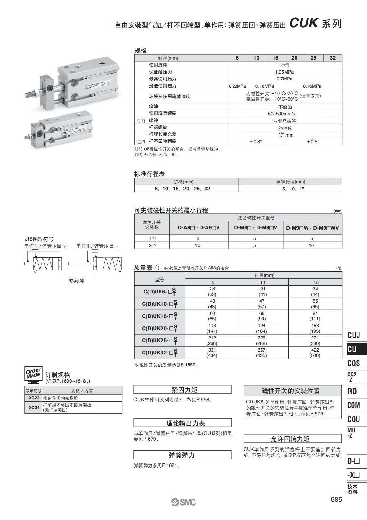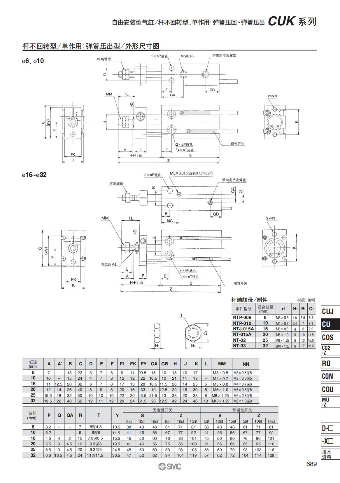 Yue Changsheng SMC rod non-rotating free installation cylinder CUK/CDUK6-5-10-15/16-20-25/32- CDUK16 bore